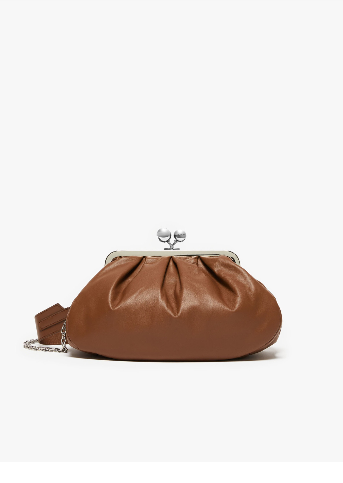 Сумка, выполнена из мягкой глянцевой кожи наппа, внутренняя часть из ткани в полоску. Благодаря съемному двойному кожаному ремню с цепочкой и кожаной отделкой, сумку можно носить через плечо или носить в руке, создавая универсальный и модный образ.