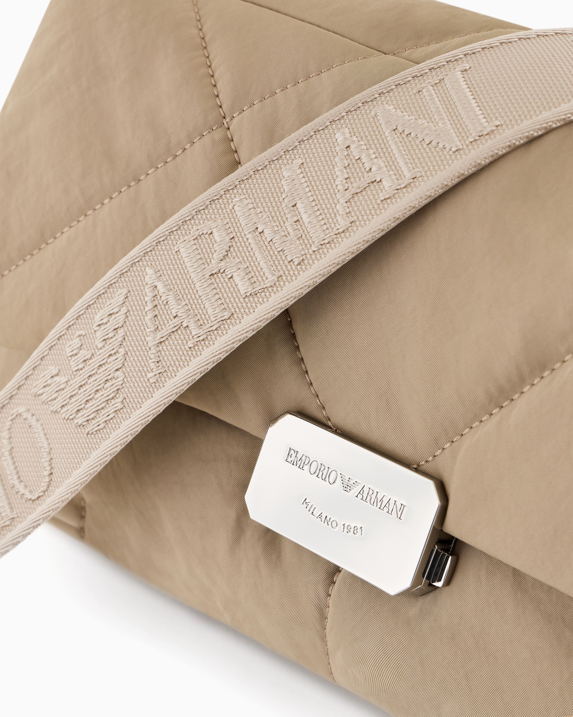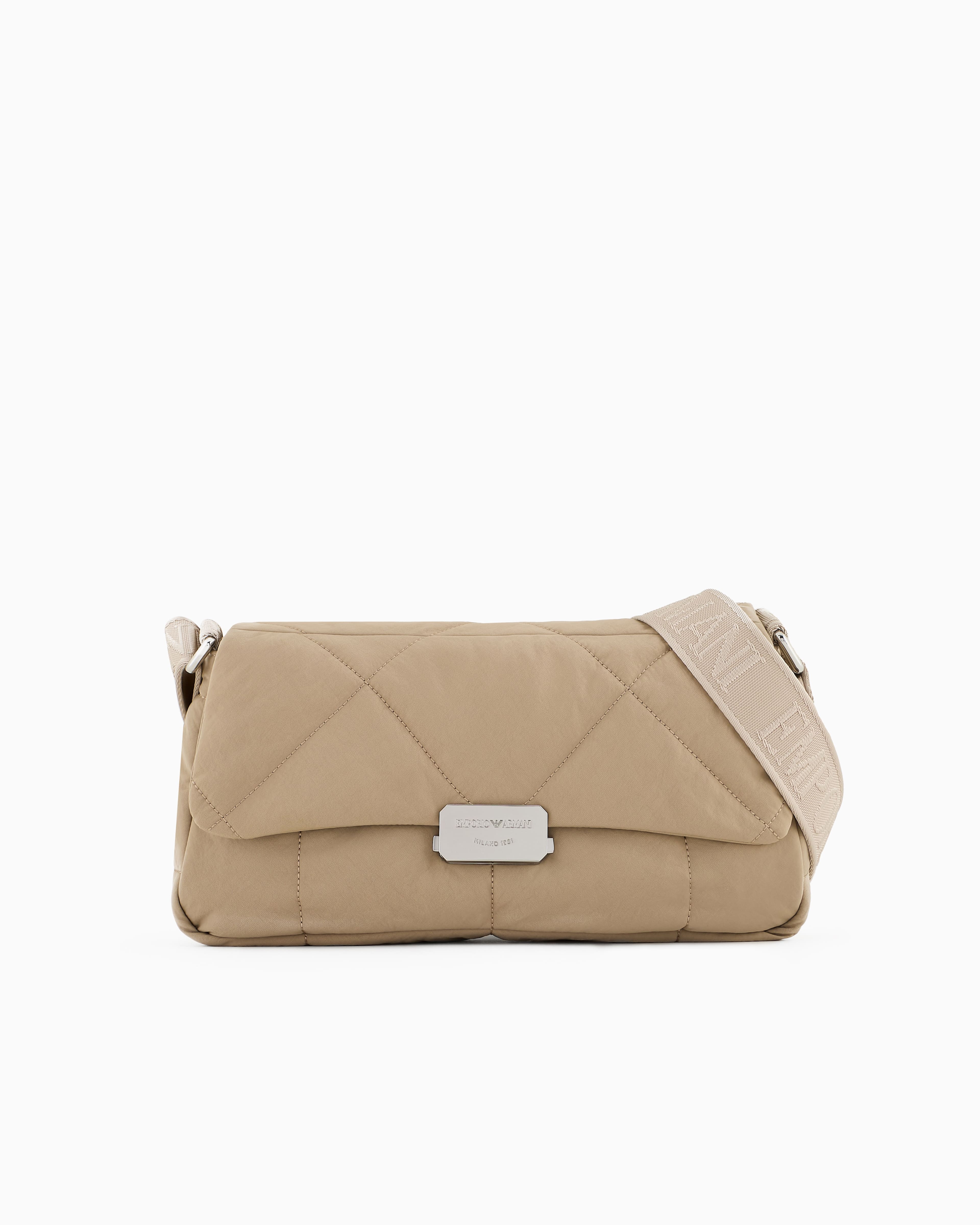 Сумка через плечо в форме багета изготовлена из стеганого нейлона и отличается современным дизайном. Имеет практичный регулируемый плечевой ремень и застежку-кнопку с логотипом. Комфортная сумка через плечо, в которой удобно хранить все необходимое, не жертвуя модным дизайном.