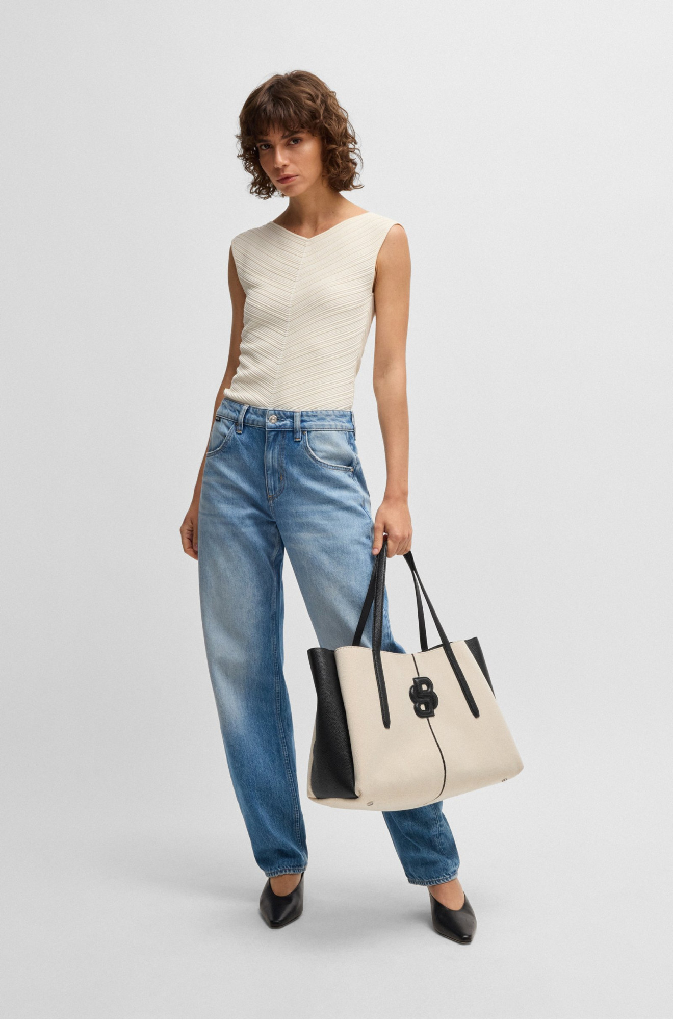 Сумка BOSS светло-бежевого оттенка из искусственной кожи воплощает утонченность и практичность. Гладкая поверхность дополнена тонкой строчкой и металлическими деталями, придающими аксессуару современный вид. Основное отделение закрывается на молнию, внутри расположены карманы для удобного хранения необходимых мелочей. Логотип бренда на передней панели подчёркивает статус изделия. Универсальный оттенок и элегантный дизайн позволяют сочетать сумку с разнообразными образами — от деловых до повседневных, подчёркивая стиль и функциональность.