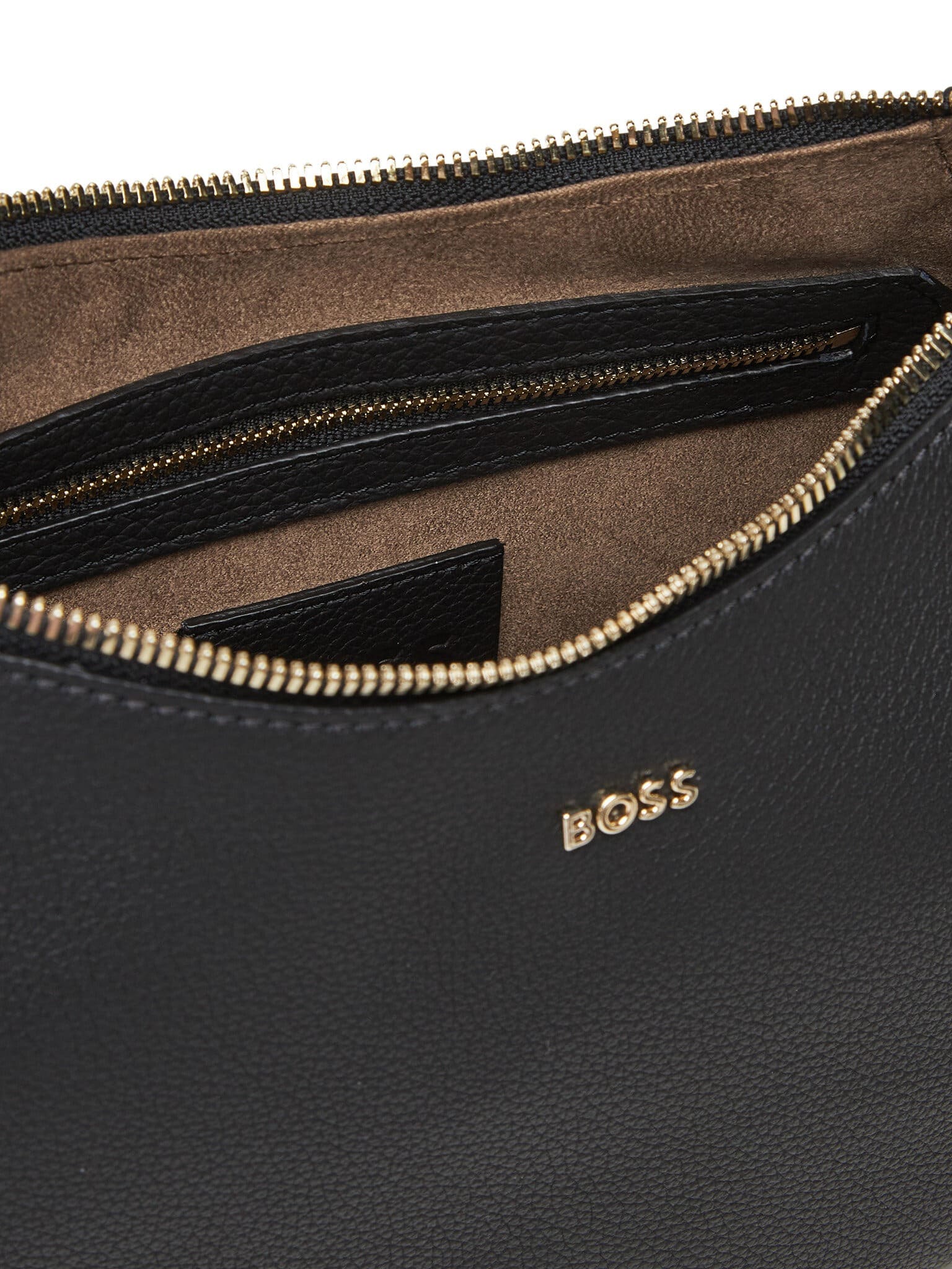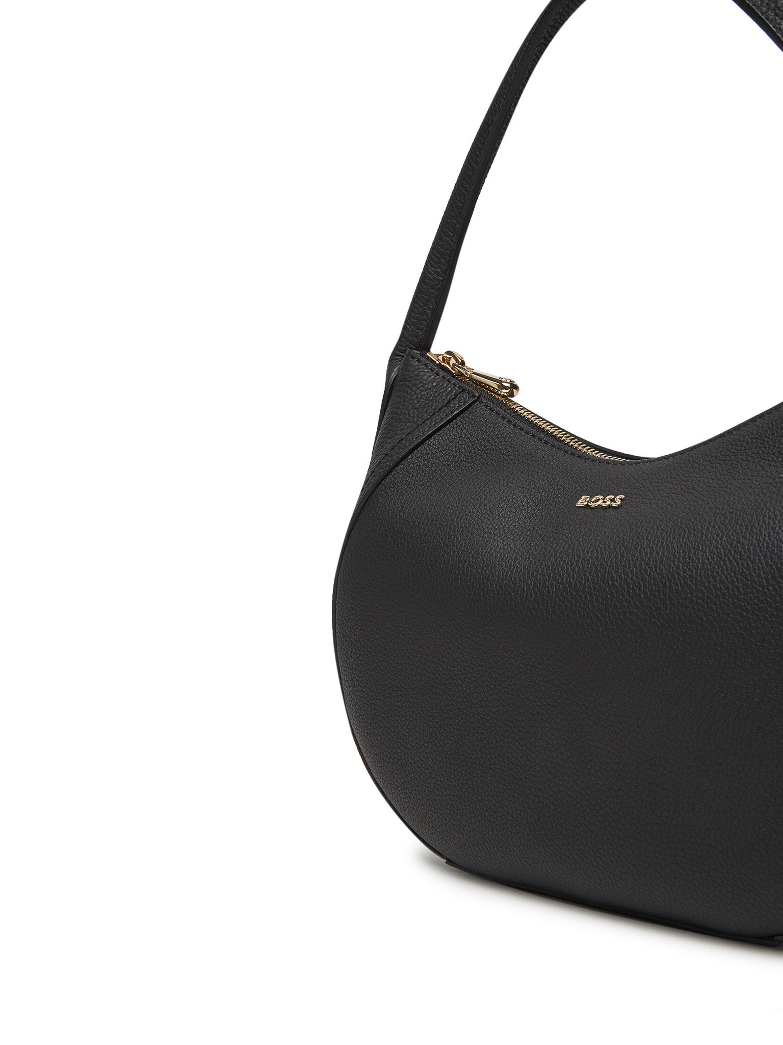 Сумка-хобо BOSS из натуральной кожи с выраженной зернистой текстурой выполнена в классическом черном цвете. Оснащена удобной молнией и внутренним карманом на молнии, что обеспечивает практичность хранения. Комплектуется текстильным мешком для защиты. Гармонично сочетается с повседневными и деловыми образами, добавляя образу утонченную лаконичность. Универсальное решение для тех, кто ценит сочетание стиля и функциональности.