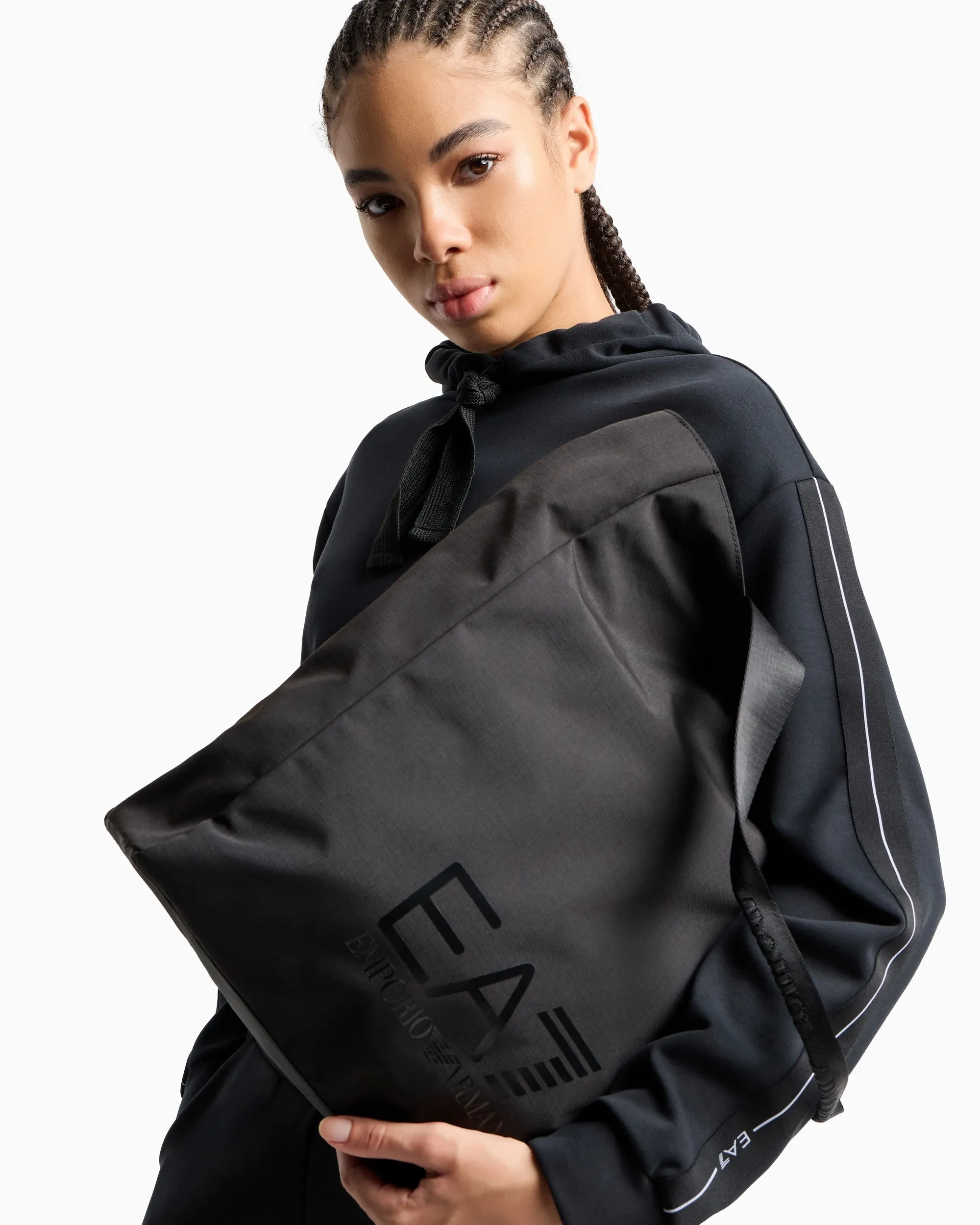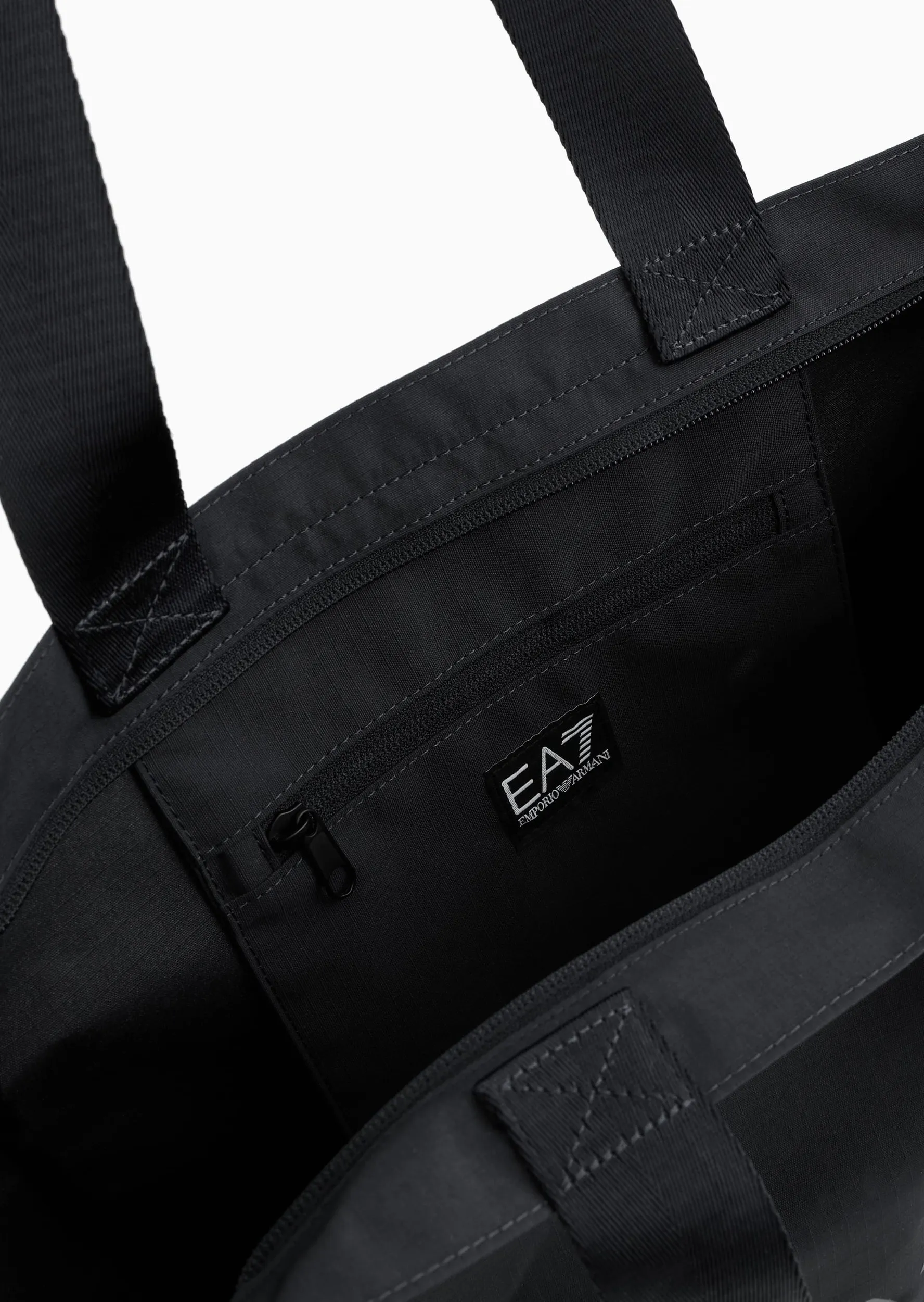 Большая сумка EA7 с замком-молнией. Вместительный аксессуар изготовлен из износостойкой ткани. Стильная сумка, украшенная спереди логотипом, дополнит любой образ.