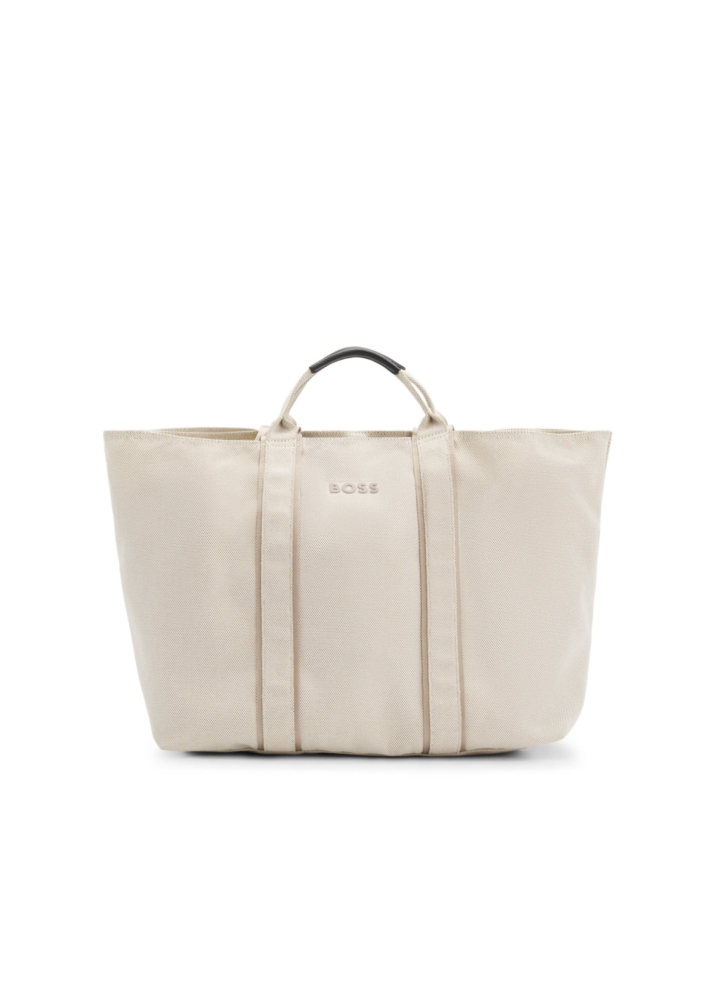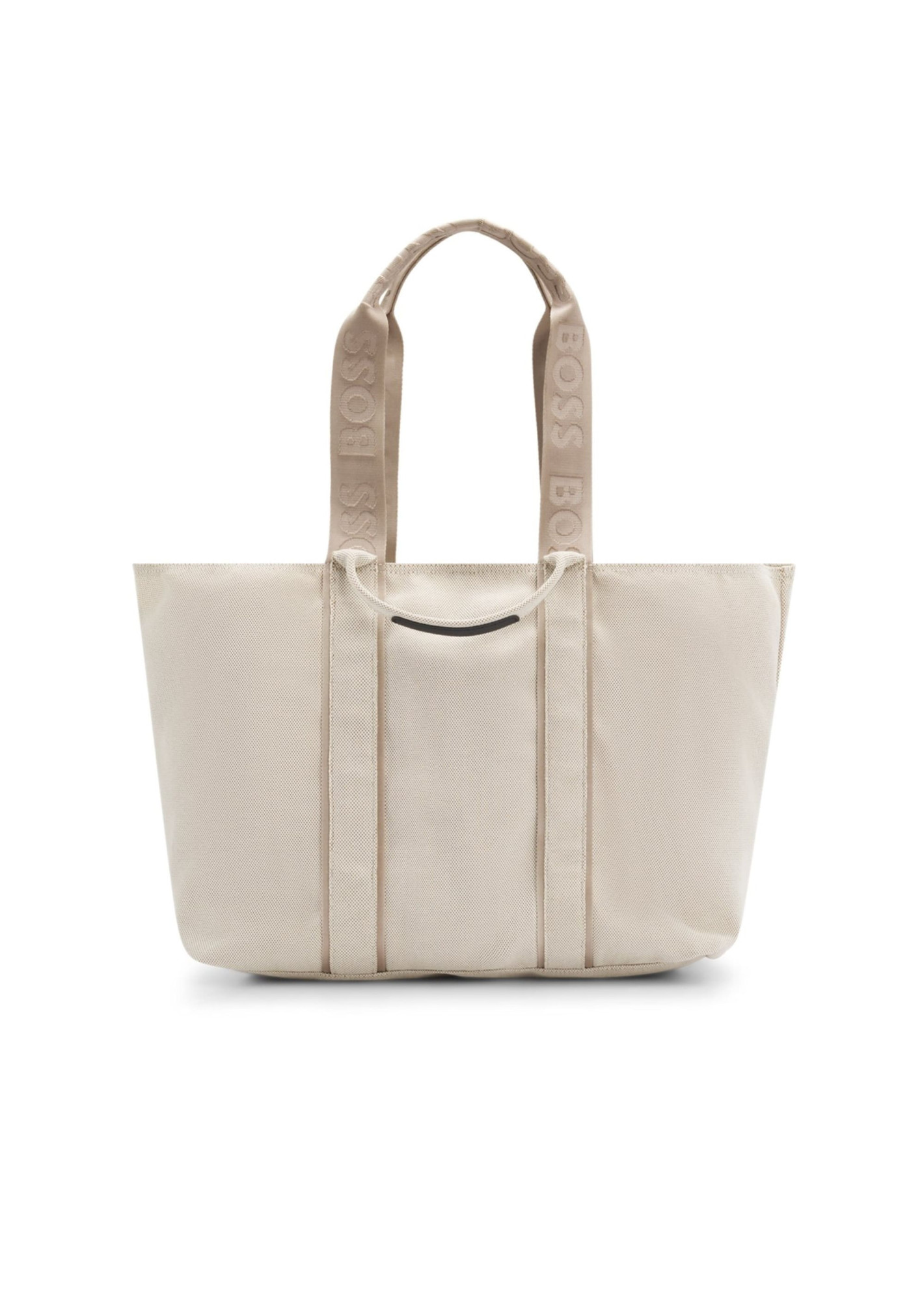 Сумка BOSS белого цвета из искусственной кожи выделяется современным и лаконичным дизайном. Гладкая матовая поверхность украшена тонкой строчкой и металлическими акцентами, подчеркивающими премиальный характер изделия. Основное отделение закрывается на молнию, внутри располагаются удобные карманы для хранения личных вещей. Логотип бренда на передней панели усиливает фирменный стиль аксессуара. Белый оттенок придает сумке универсальность, позволяя сочетать её с разными стилями — от повседневного до делового.