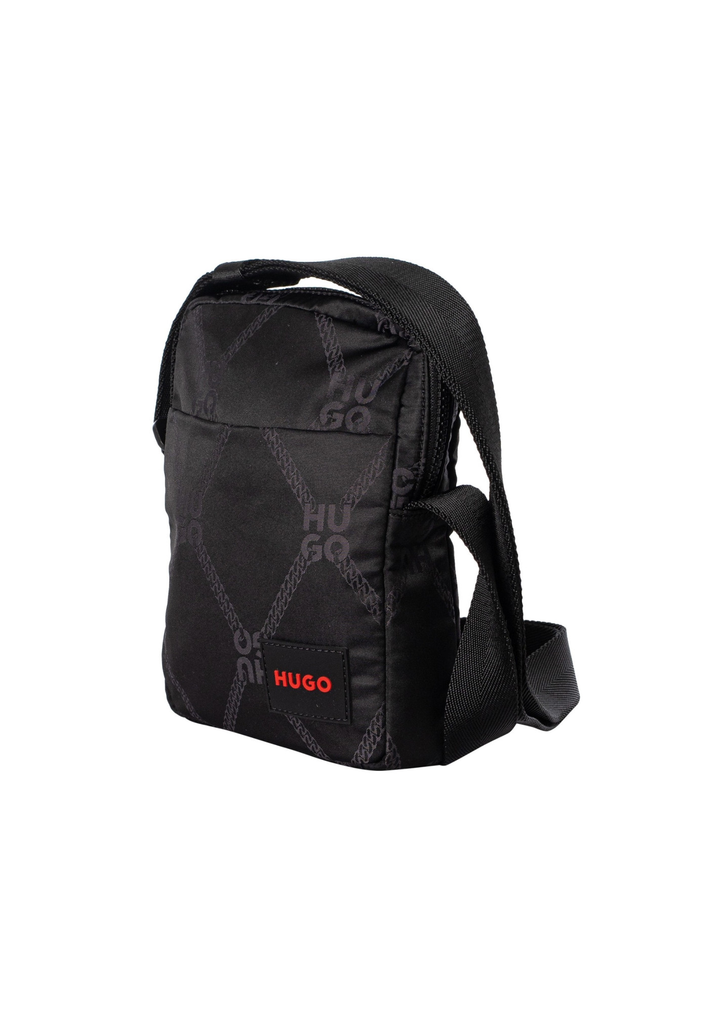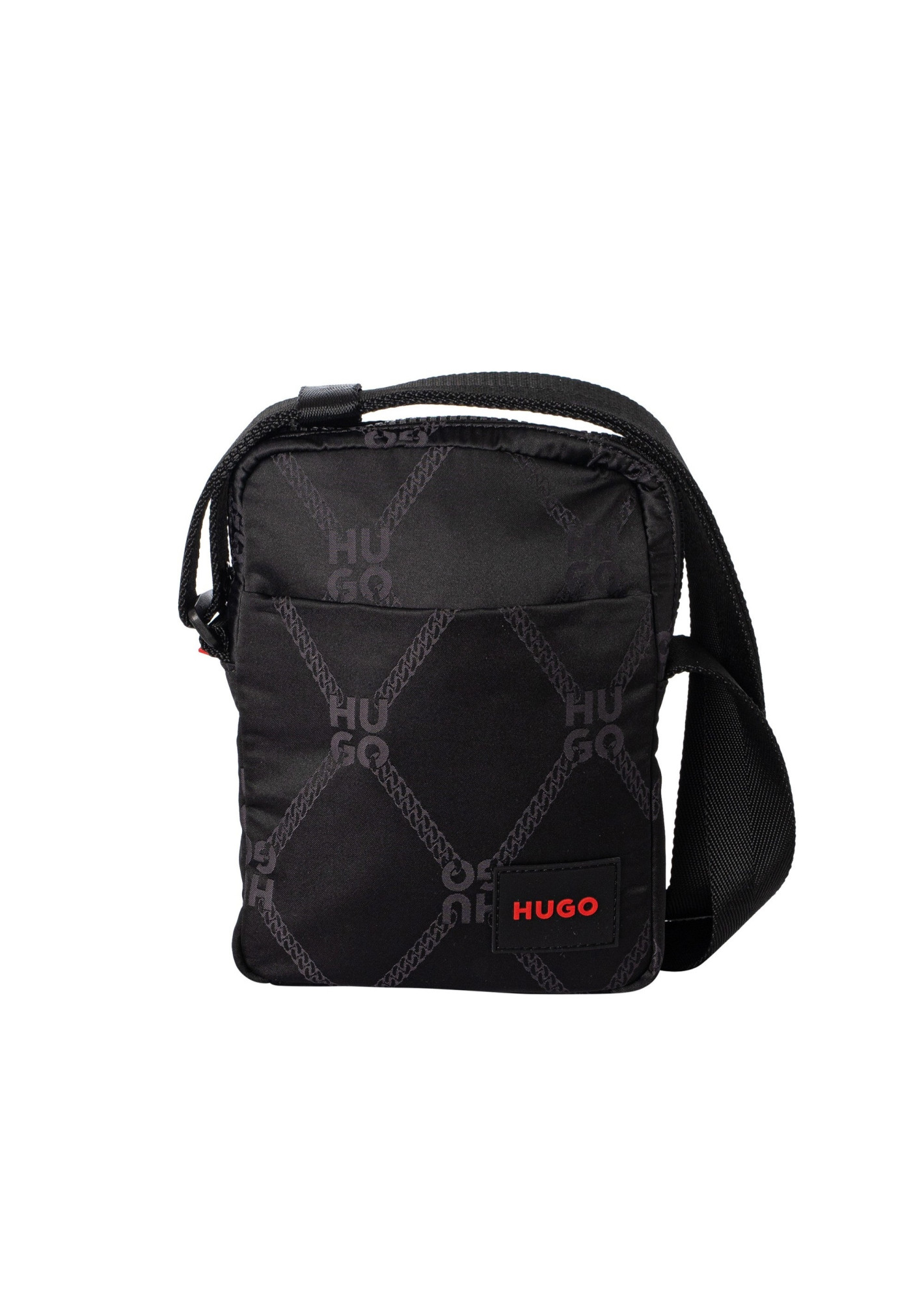 Мужская сумка черного цвета из водоотталкивающего материала. Аксессуар украшен логотипом бренда HUGO. Сумка застегивается на молнию, имеет регулируемый ремешок. Практичный и компактный аксессуар, который позволит иметь всегда при себе иметь самые необходимые вещи.
