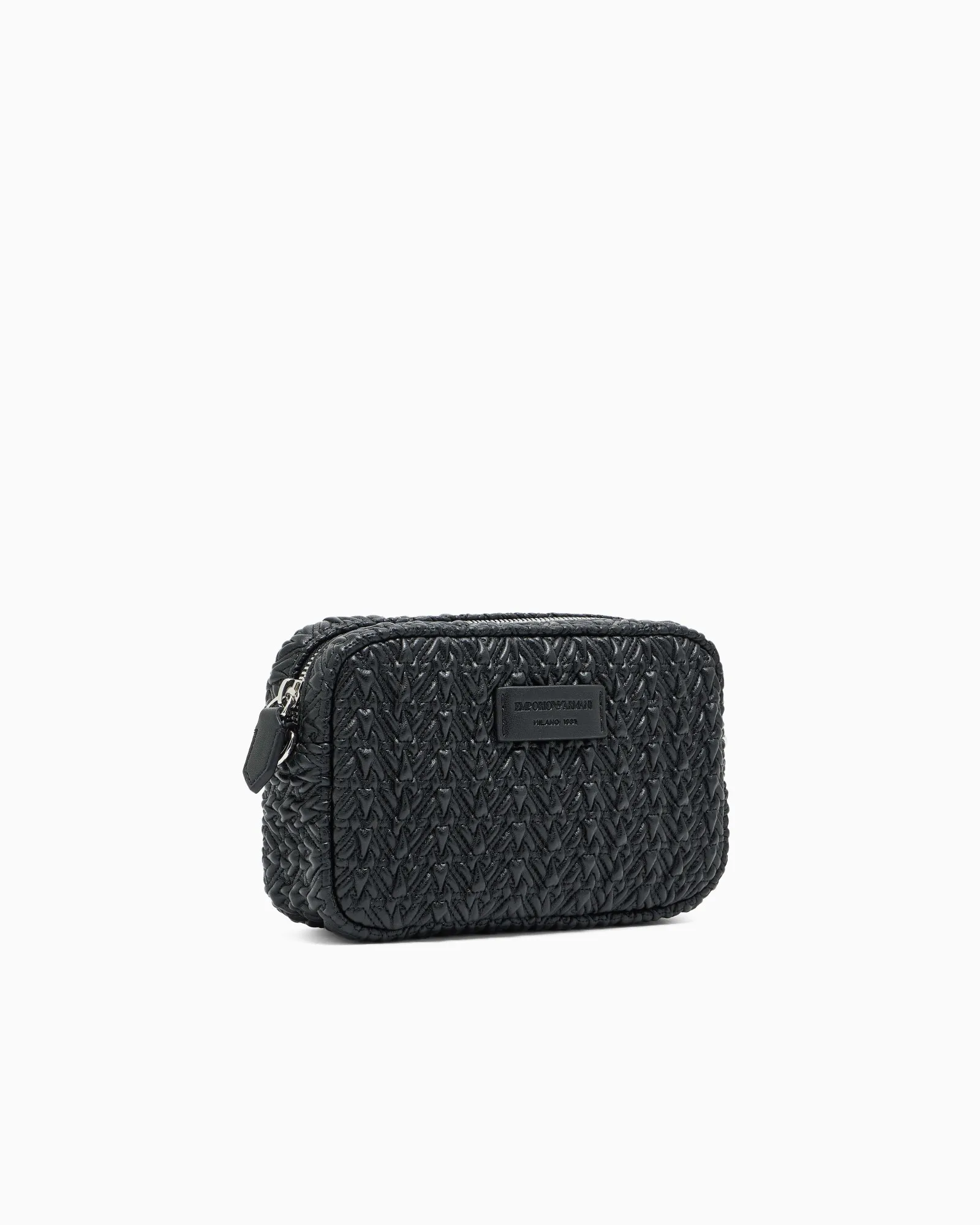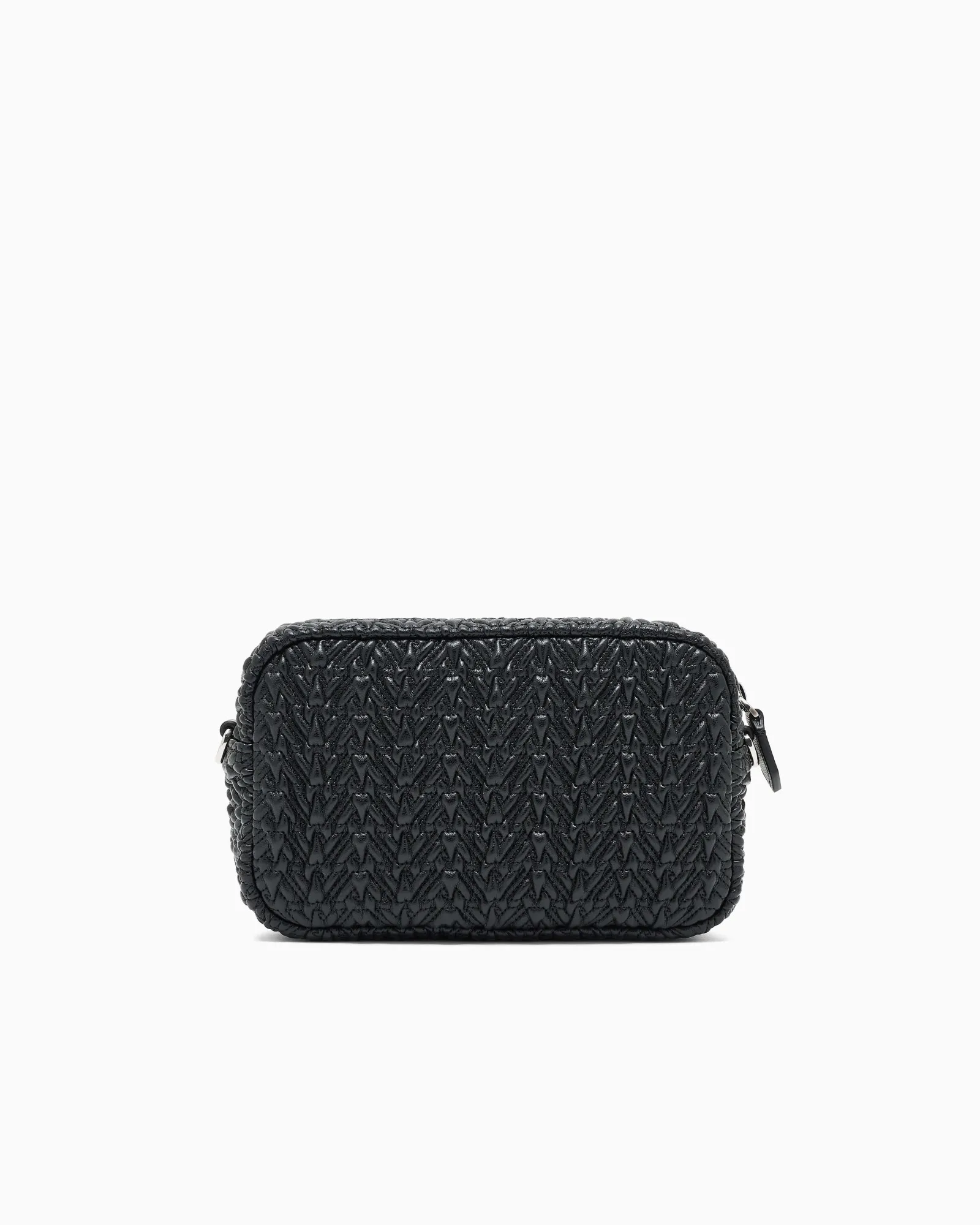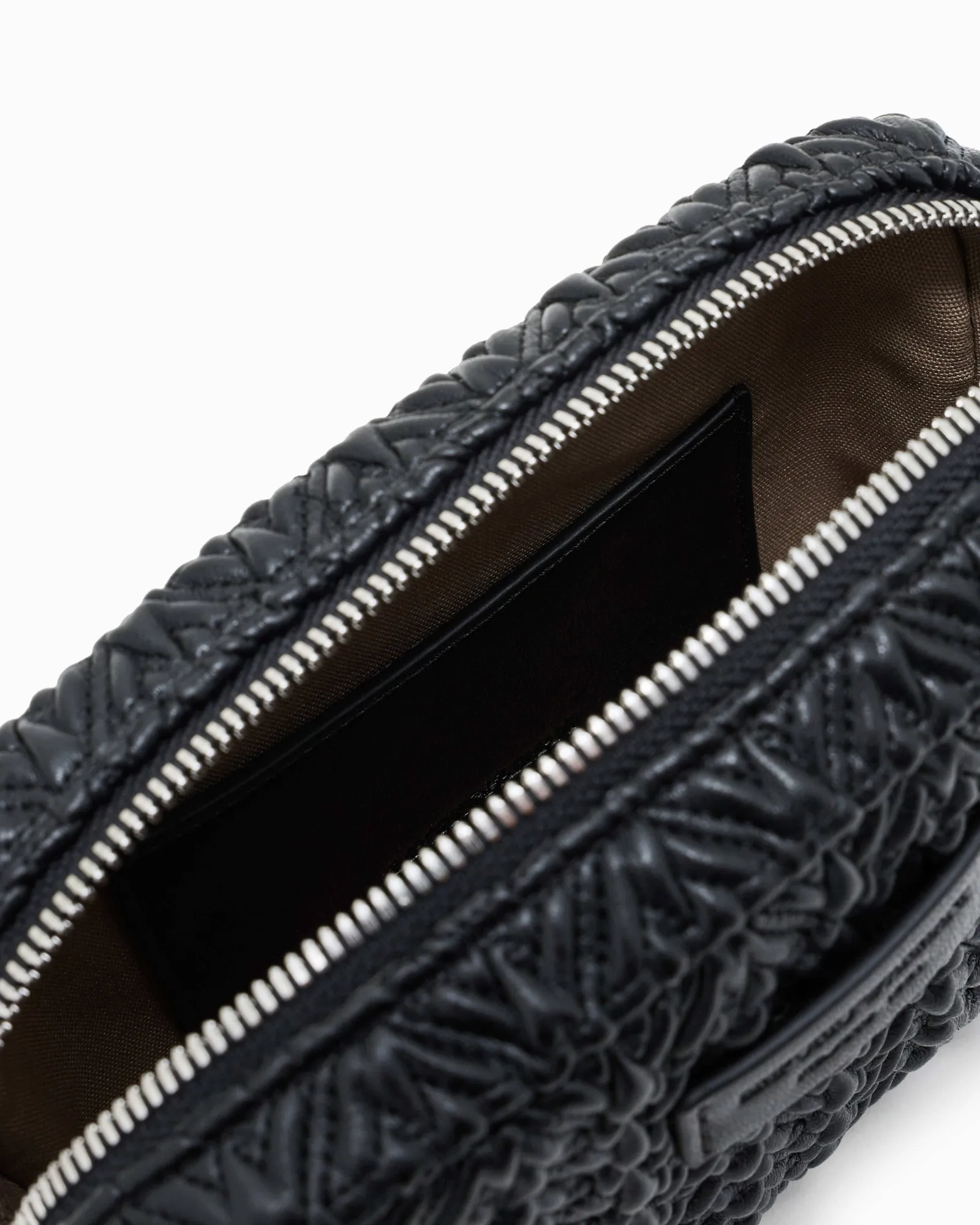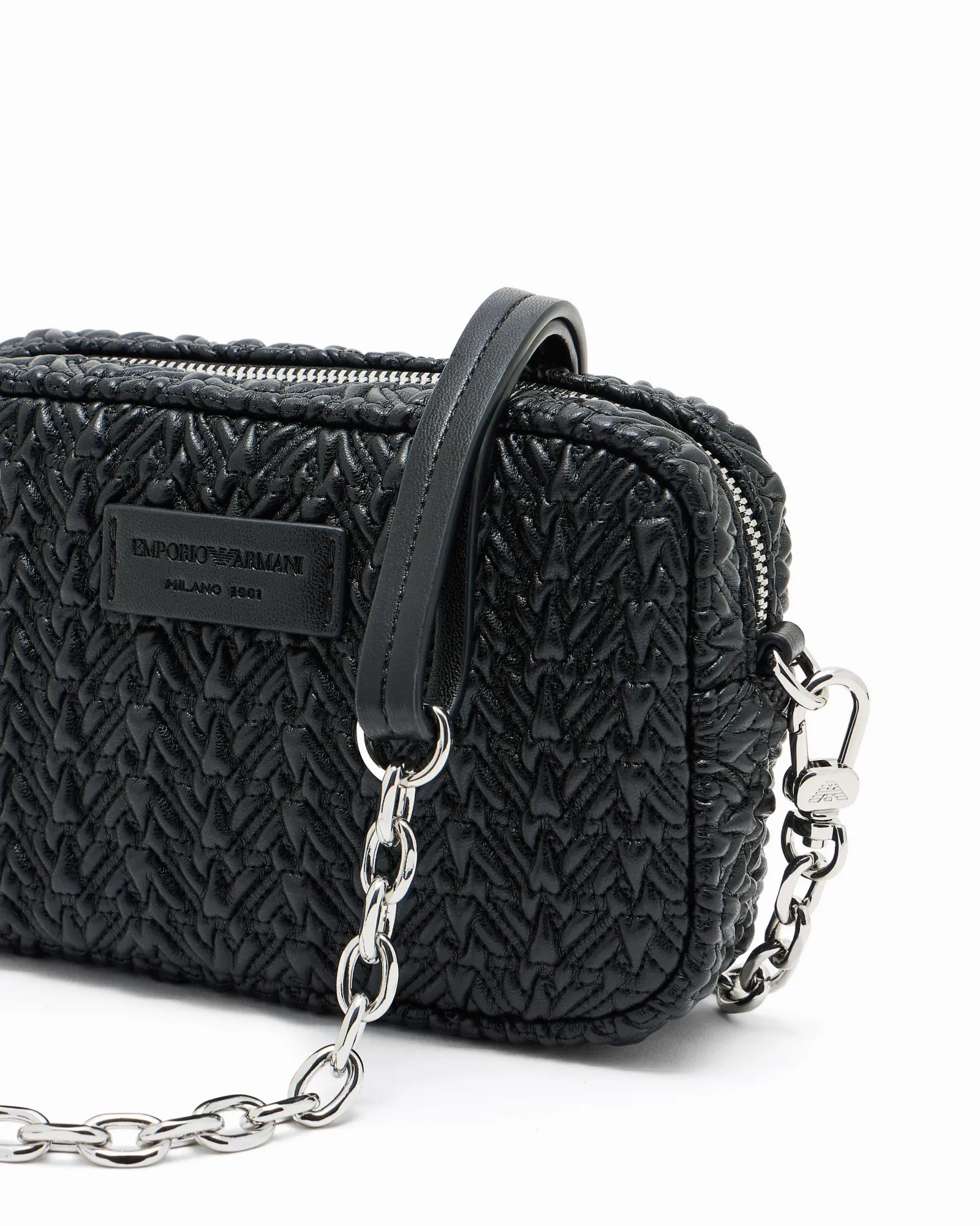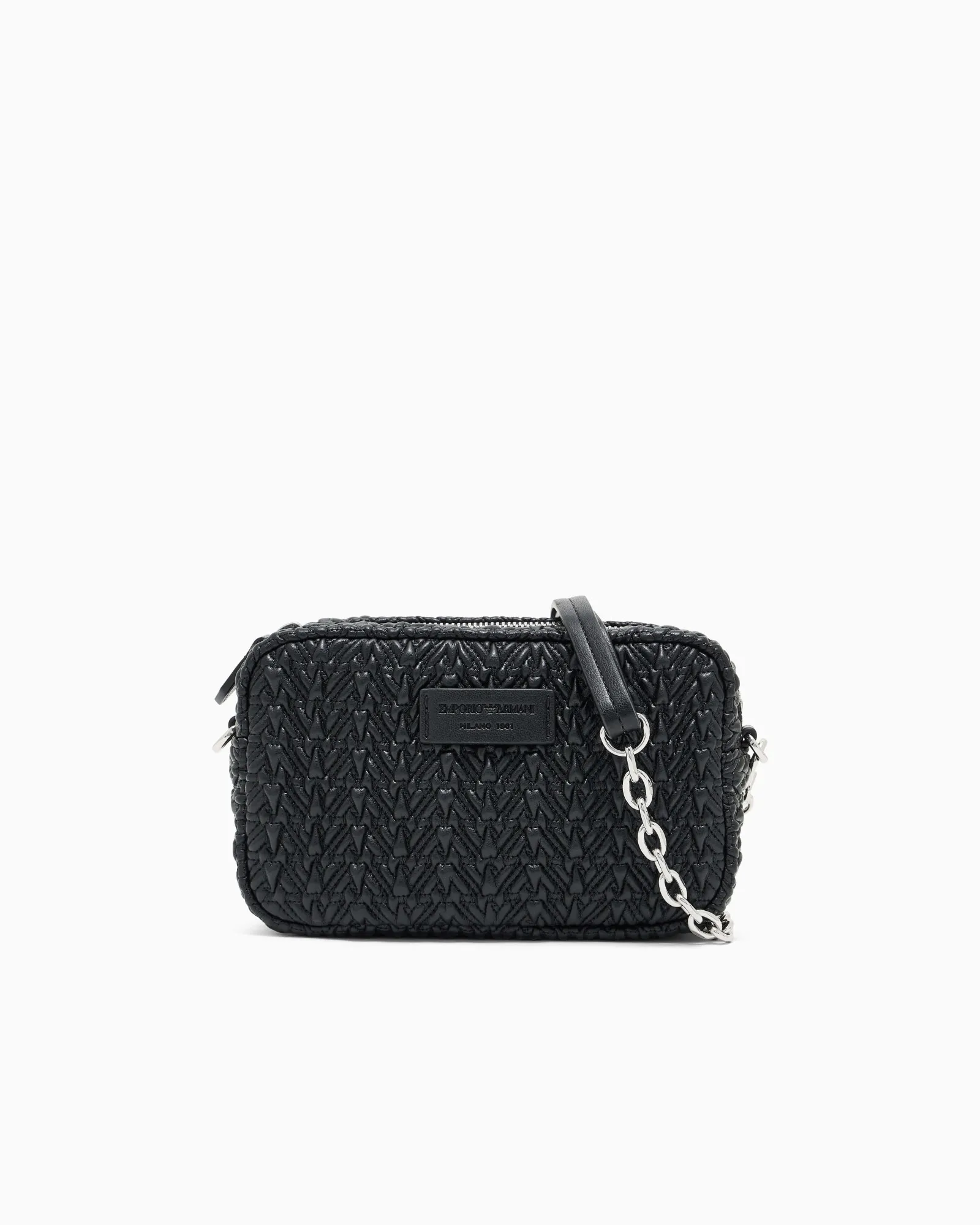 Сумка через плечо Emporio Armani выполнена из тиснёной ткани с полиуретановым покрытием, придающим структуру и износостойкость. Чёрный оттенок и трёхмерный дизайн подчёркивают современный стиль изделия. Съёмный ремешок-цепочка и тональная нашивка с логотипом добавляют элегантности и фирменного акцента. Компактные размеры и внутренний карман обеспечивают удобство для хранения необходимых предметов. Универсальное решение для повседневного образа, где лаконичность сочетается с выразительным фирменным акцентом Emporio Armani.