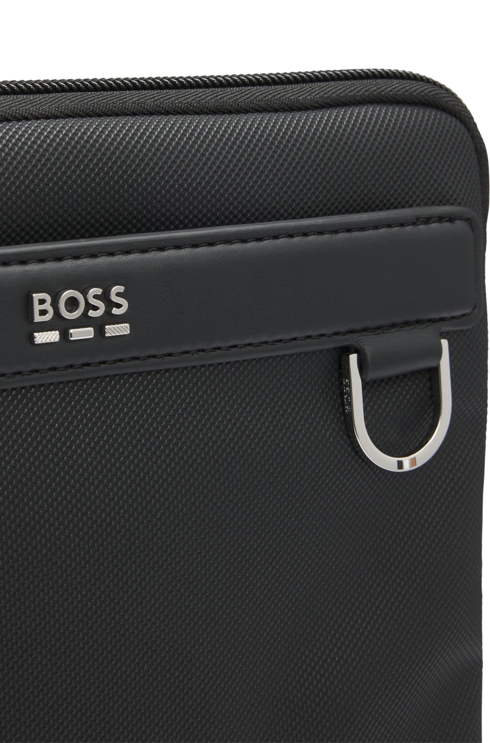 Сумка BOSS Menswear с логотипом и D-образной отделкой — стильное решение для хранения необходимых вещей под рукой. Выполнена из гладкого и структурированного материала на основе полиуретана и полиэстера, она сочетает в себе практичность и изысканность. Этот аксессуар легко впишется в повседневные и деловые образы, дополняя их лаконичностью и утончённым стилем. Сумка станет незаменимым элементом гардероба, предлагая гармонию функциональности и фирменного дизайна.