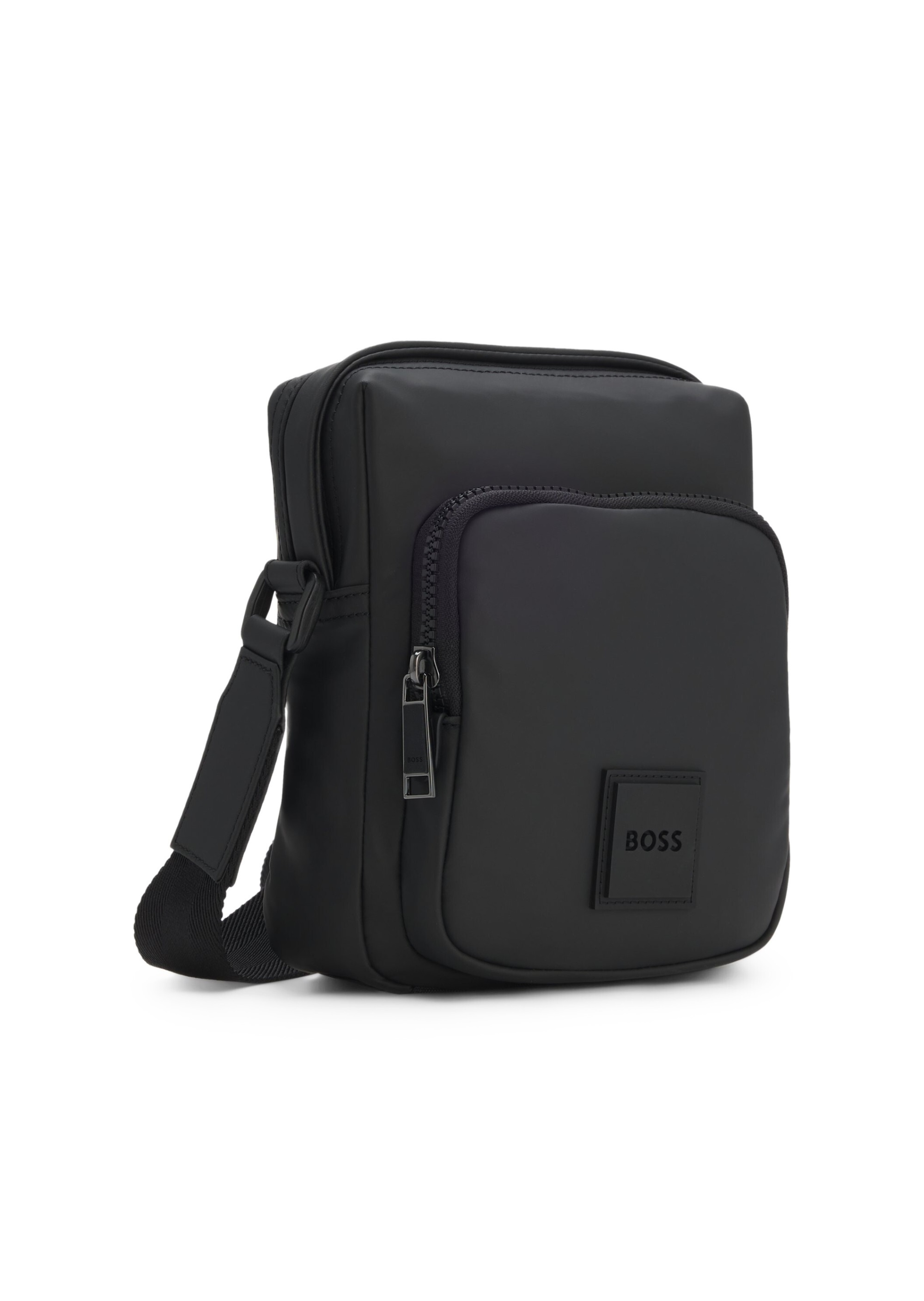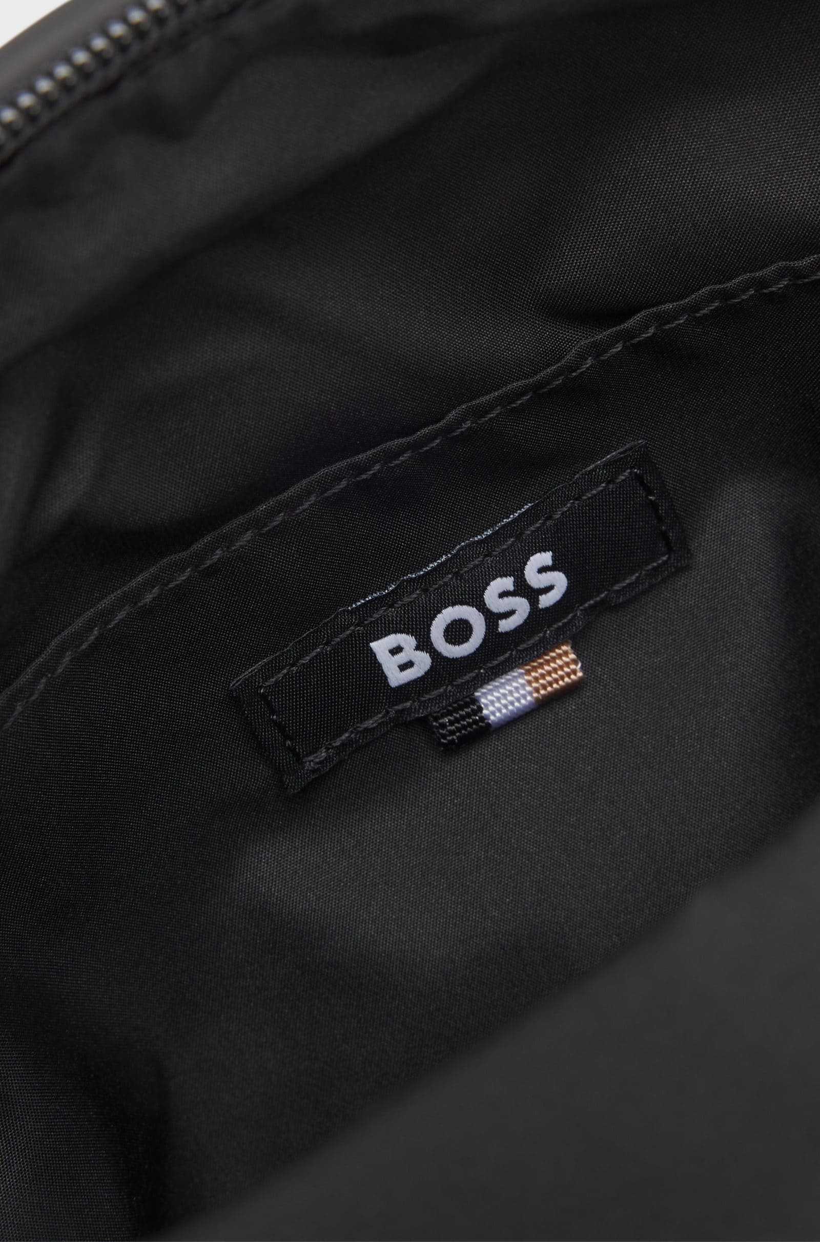 Чёрная сумка BOSS выполнена из мягкой ткани с водоотталкивающим покрытием, обеспечивающим комфорт и практичность в использовании. Аксессуар украшен силиконовой нашивкой с логотипом бренда, придающей изделию современный вид. Вместительный дизайн легко сочетается с различными стилями одежды, от casual до спортивного. Регулируемый ремень гарантирует удобство ношения на плече или через плечо. Идеальное сочетание функциональности и премиального стиля для завершённого образа.