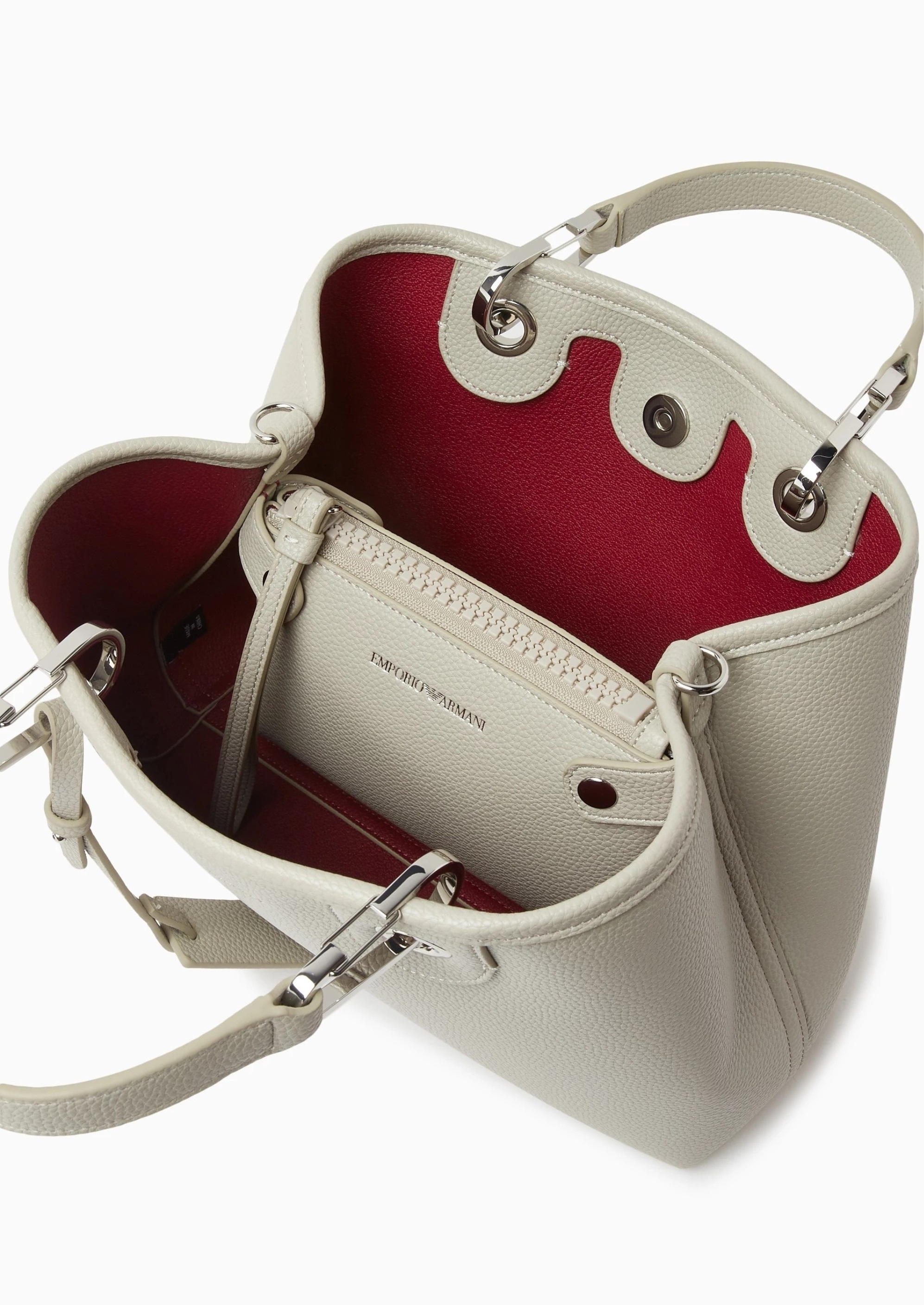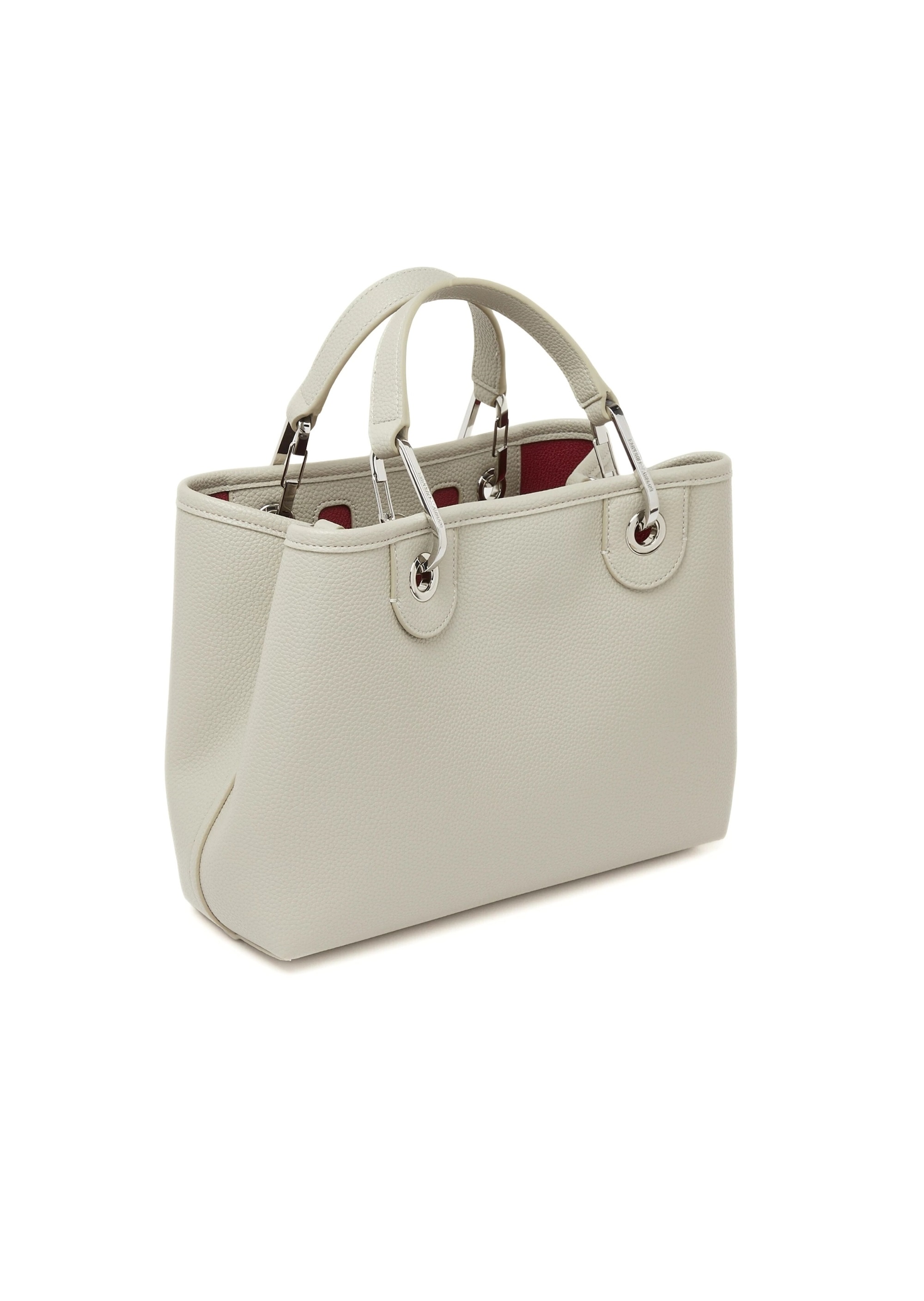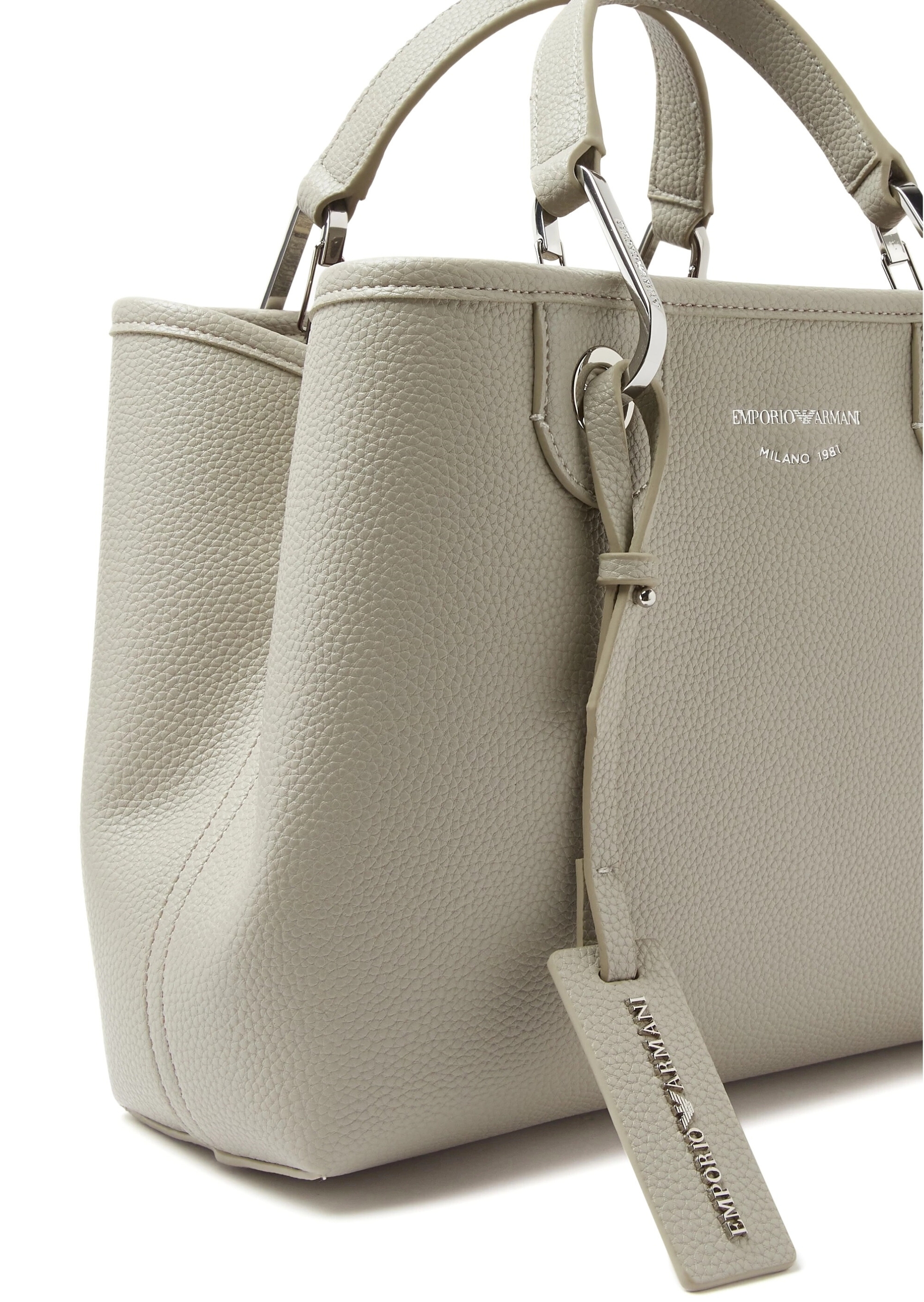 Сумка для покупок с принтом оленя, магнитной застежкой и шелкографией. Изделие украшено съемными золотыми карабинами и тиснеными бирками с логотипом. Имеет соответствующую внутреннюю сумку на молнии и съемный плечевой ремень с логотипом.