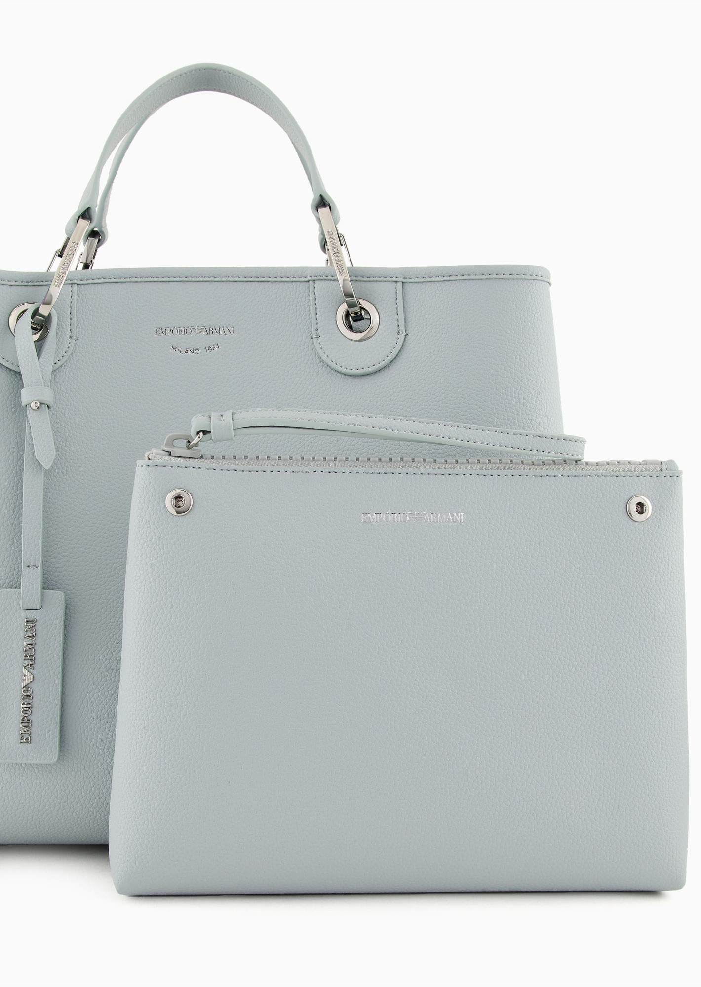 Сумка-шоппер среднего размера , с магнитной застежкой и логотипом Emporio Armani , нанесенным шелкографией. Изделие украшено съемными карабинами золотистого тона и бирками с тисненым логотипом, которые соответствуют сумке. Имеет соответствующий внутренний карман на молнии и съемный плечевой ремень с логотипом Emporio Armani. Принадлежит к линейке MyEA, подборке культовых и эксклюзивных сумок Emporio Armani, которые наиболее характеризуют этот лейбл. Выберите изделие и дополните его аксессуарами из линейки, которые соответствуют вашему стилю.