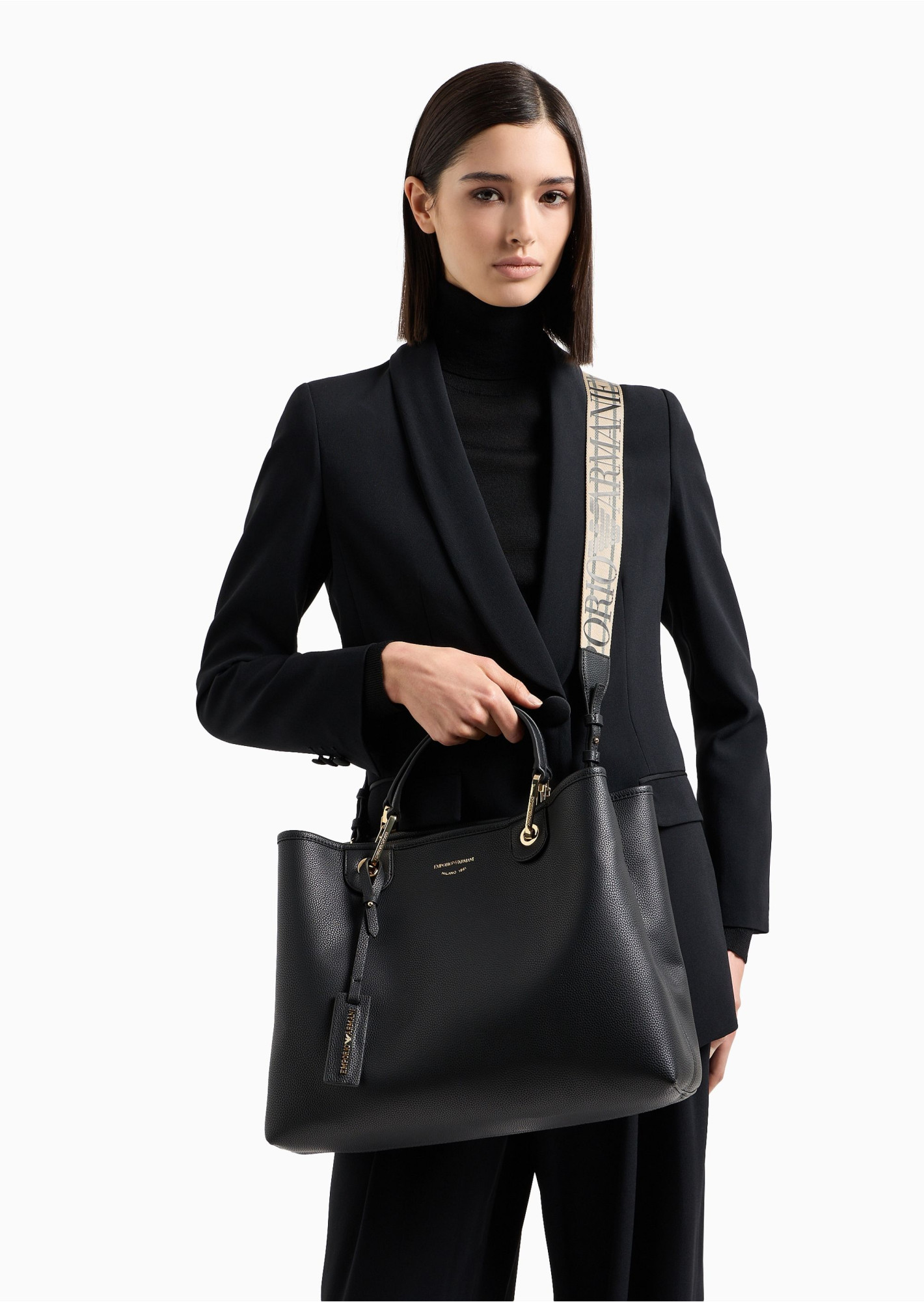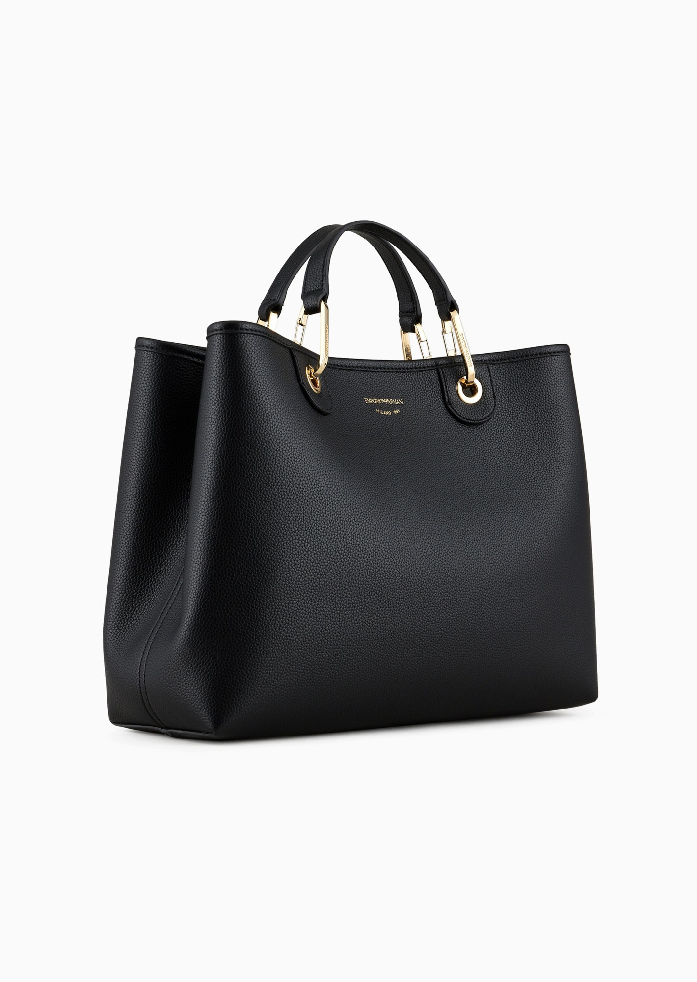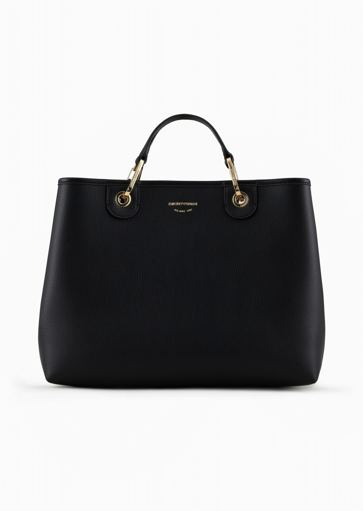 Коллекция Essentials -элегантная и практичная. MyEA Bag — это культовая сумка Emporio Armani: выберите свой стиль и украсьте ее аксессуарами, которые отражают вашу индивидуальность. Сумка среднего размера, с магнитной застежкой, со съемным ремешком и логотипом Emporio Armani, напечатанным методом шелкографии. Изделие украшено съемными золотистыми карабинами и бирками с тисненым логотипом Emporio Armani.