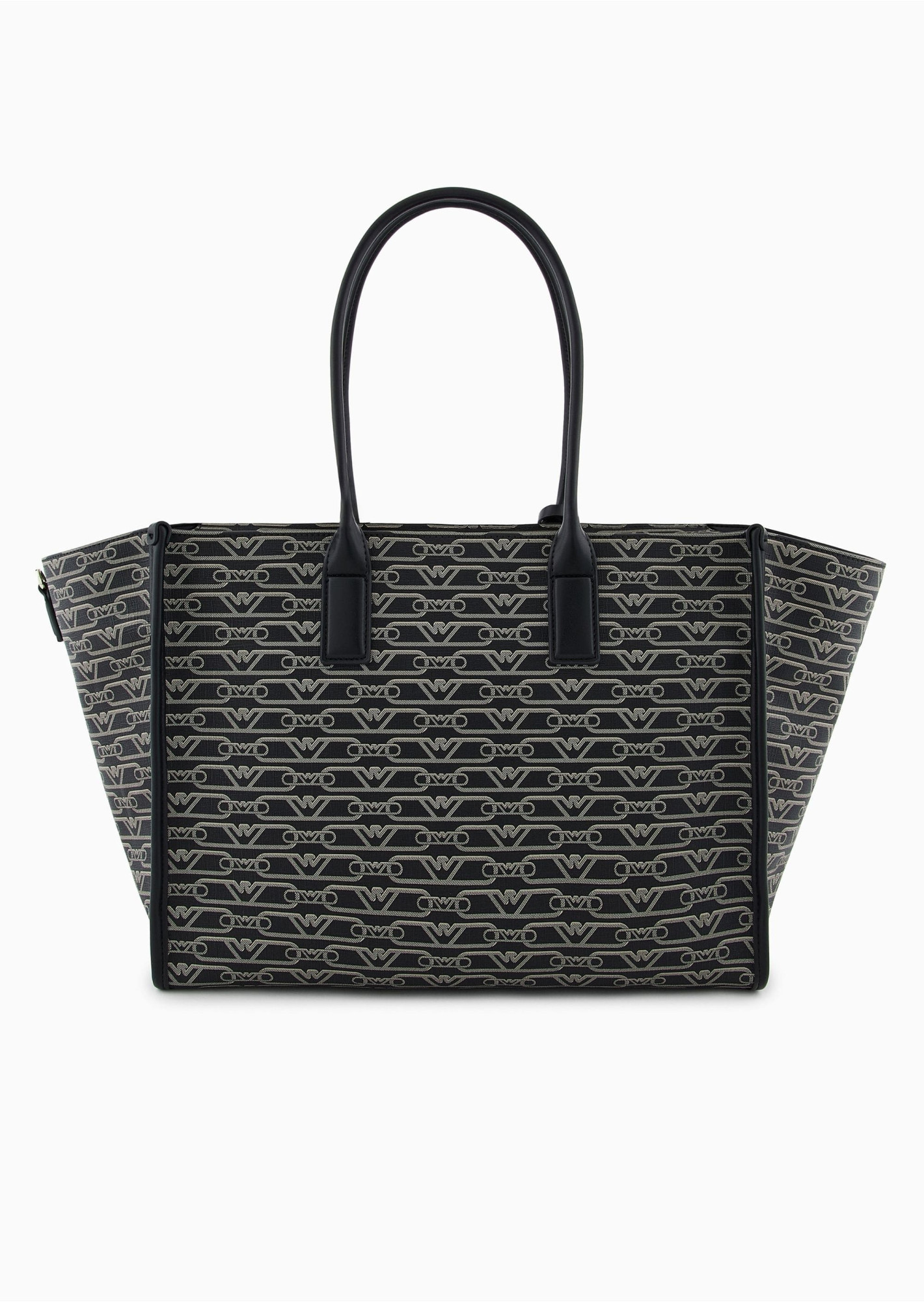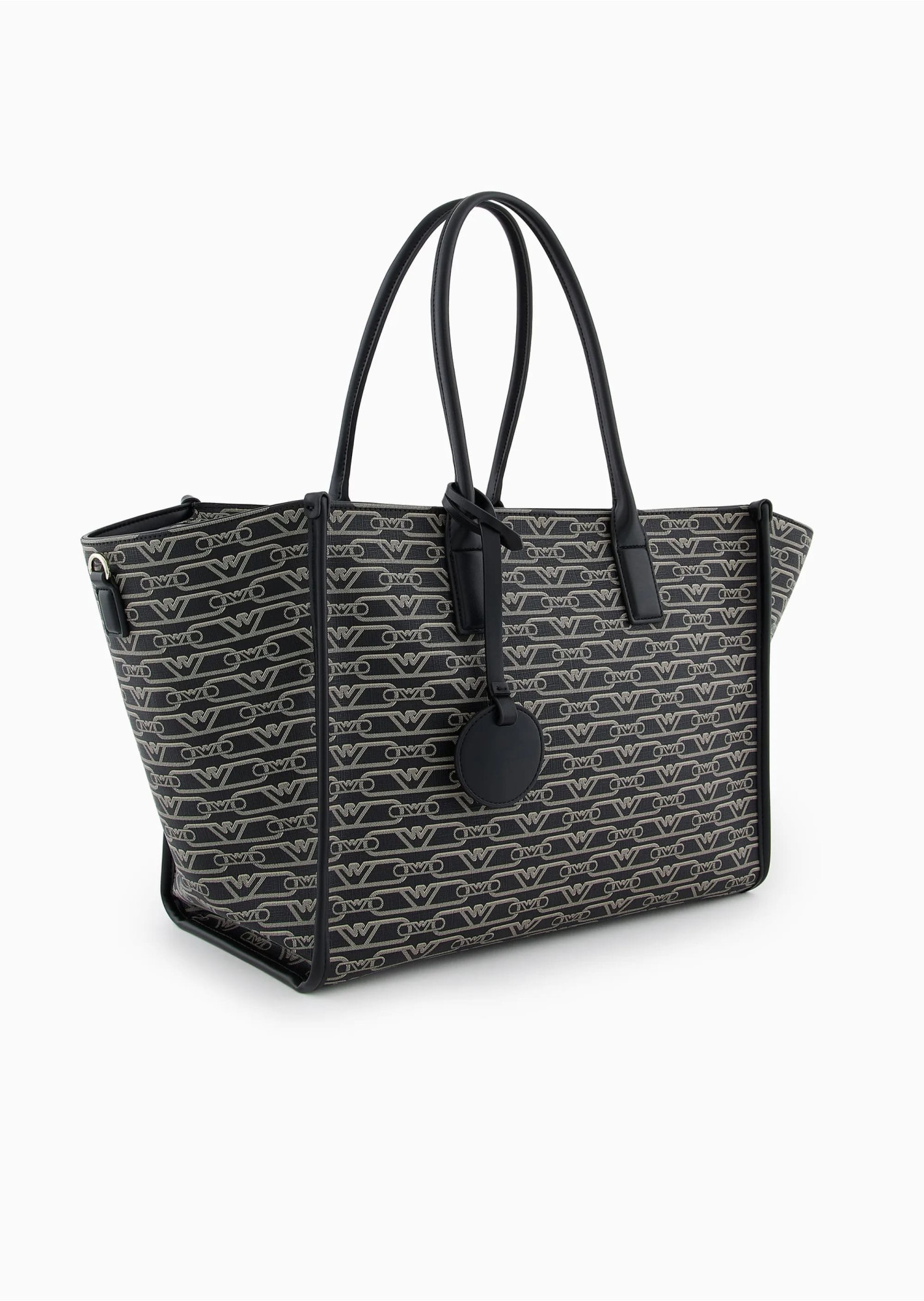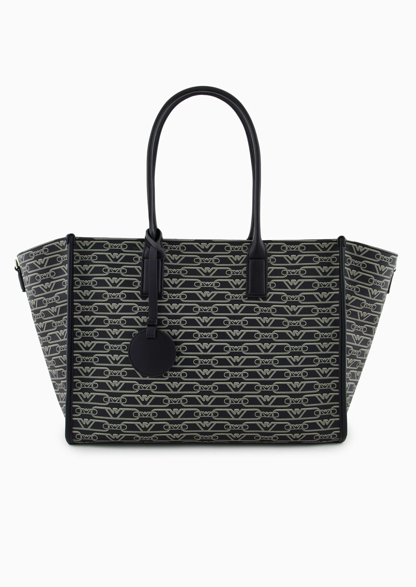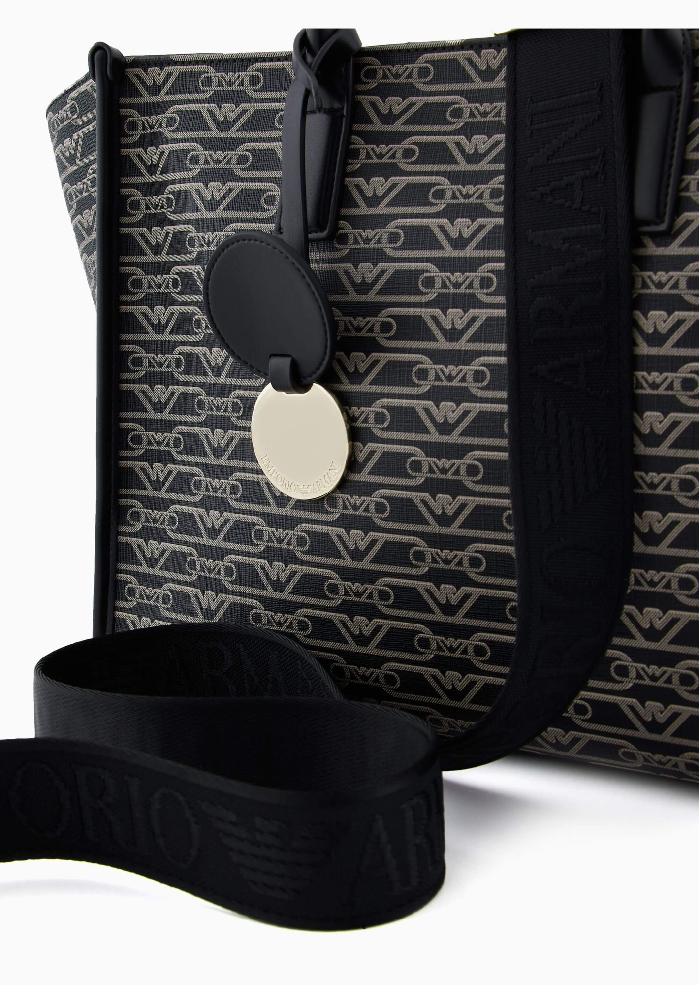 Сумка-шоппер с двойной ручкой, практичным регулируемым плечевым ремнем с логотипом и подвеской-логотипом. Серия аксессуаров с плотным монограммным принтом по всей поверхности, доступная в функциональных стилях, разработанных для женщины Emporio Armani, которая всегда в движении.