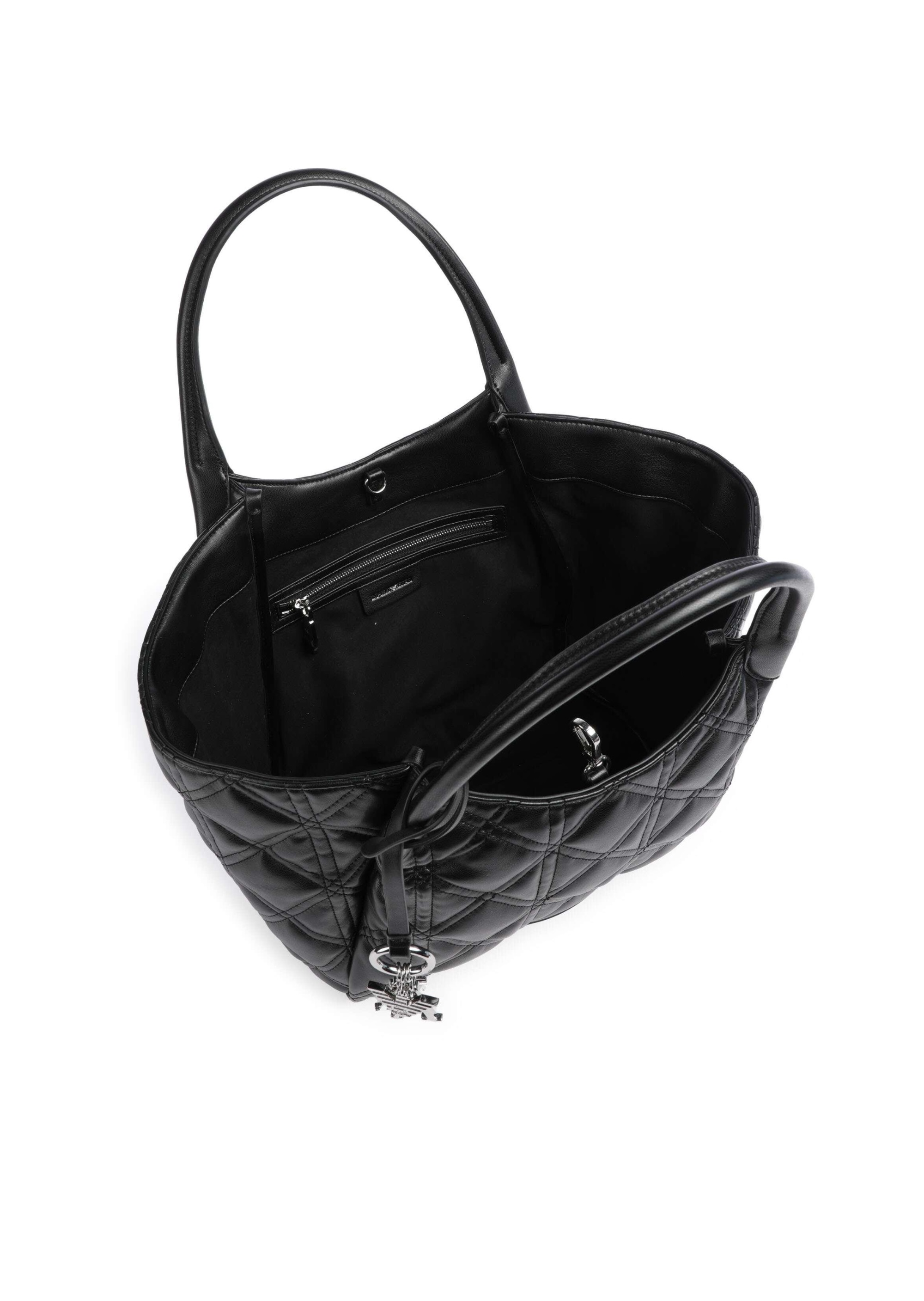 Макси-шопер с двойной ручкой из материала с эффектом наппы и стеганой отделкой. Новая модель sac du jour, отражающая элегантный, утонченный, функциональный и шикарный стиль женщины Emporio Armani. Дизайн черпает вдохновение из архивной модели, взятой и переработанной в пропорциях, адаптированной к более современному контексту. В сумке имеется удобный, съемный и скоординированный внутренний карман, который можно закрепить с помощью карабина или снять с корпуса сумки по вашему желанию.
