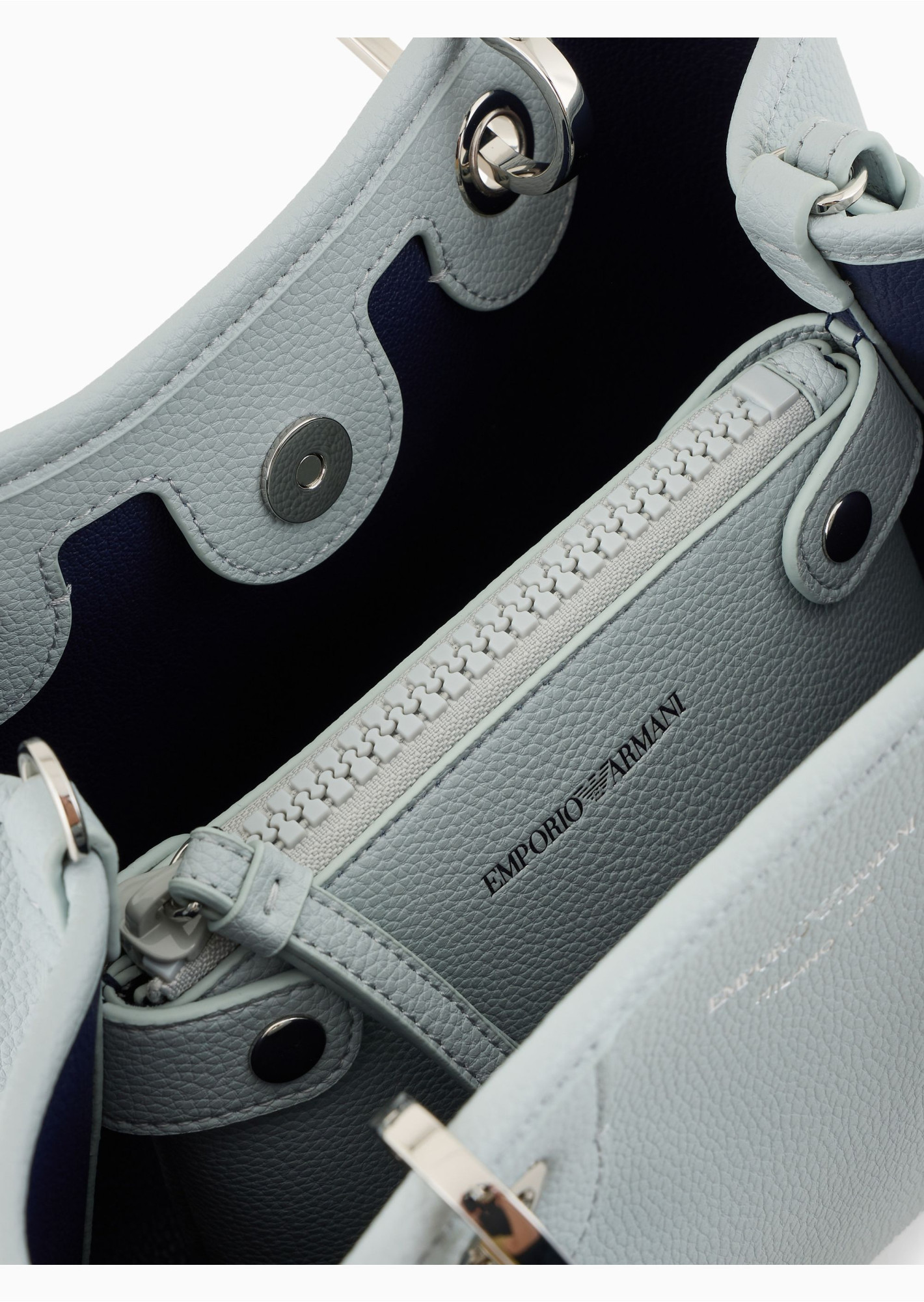 Маленькая сумка-шоппер с магнитной застежкой и логотипом Emporio Armani, нанесенным шелкографией. Изделие украшено съемными золотистыми карабинами и бирками с тисненым логотипом, которые соответствуют сумке. Имеет соответствующий внутренний карман на молнии и съемный плечевой ремень с логотипом Emporio Armani. Принадлежит к линейке MyEA, подборке культовых и эксклюзивных сумок Emporio Armani, которые наиболее характеризуют этот лейбл. Выберите изделие и дополните его аксессуарами из линейки, которые соответствуют вашему стилю.