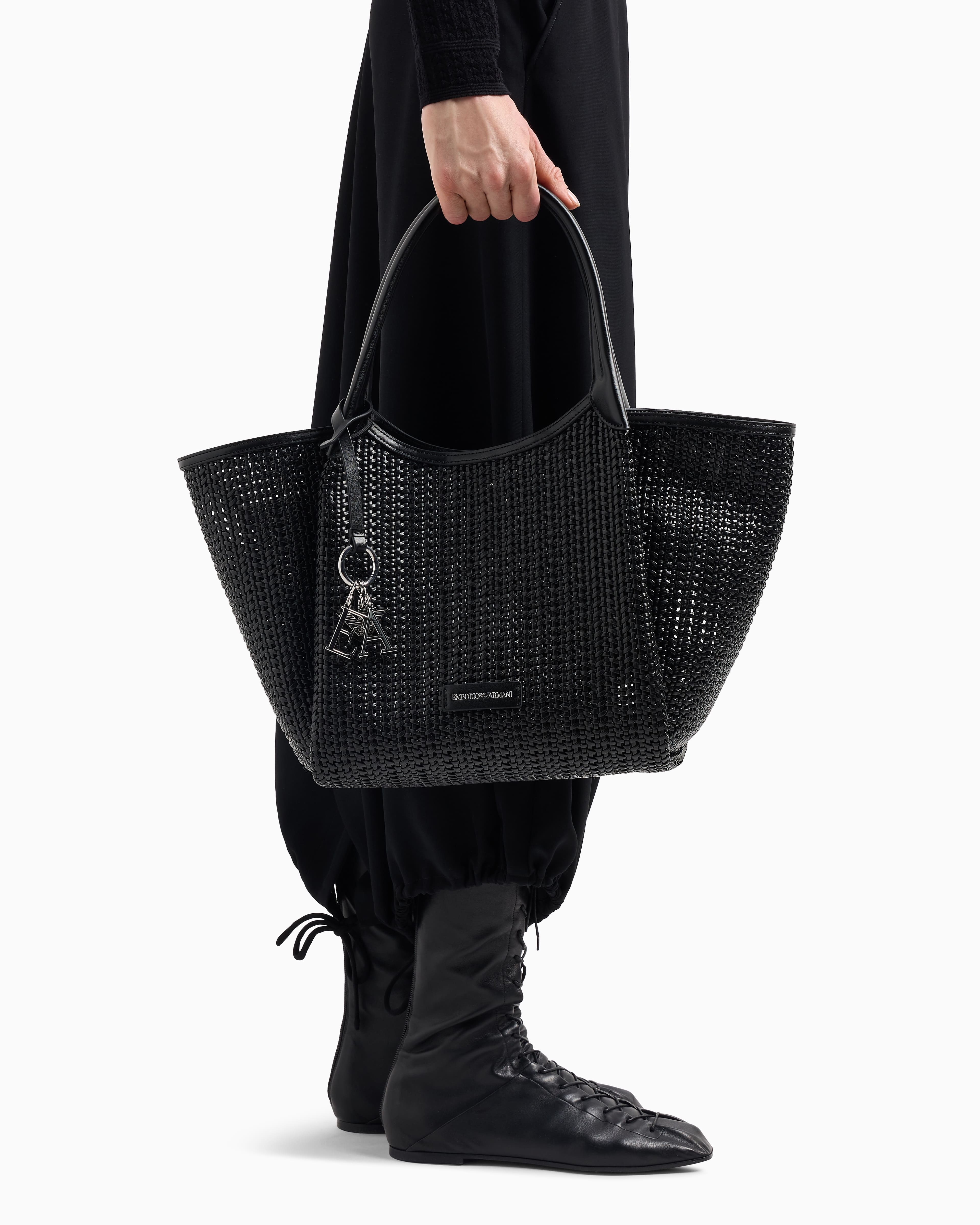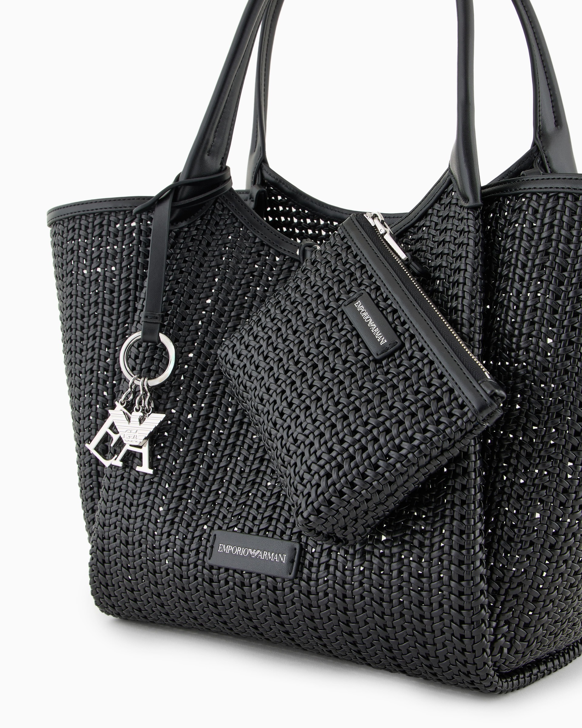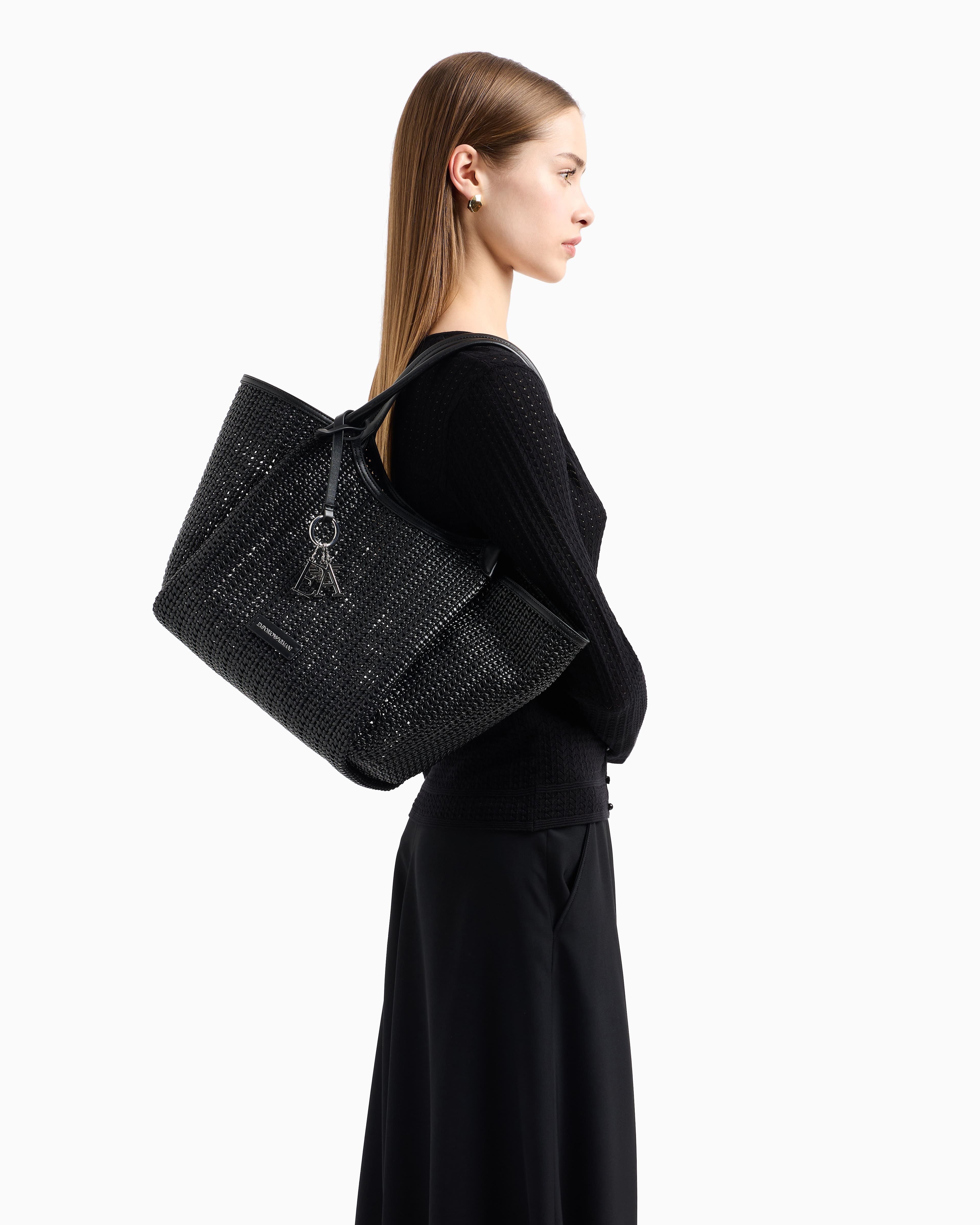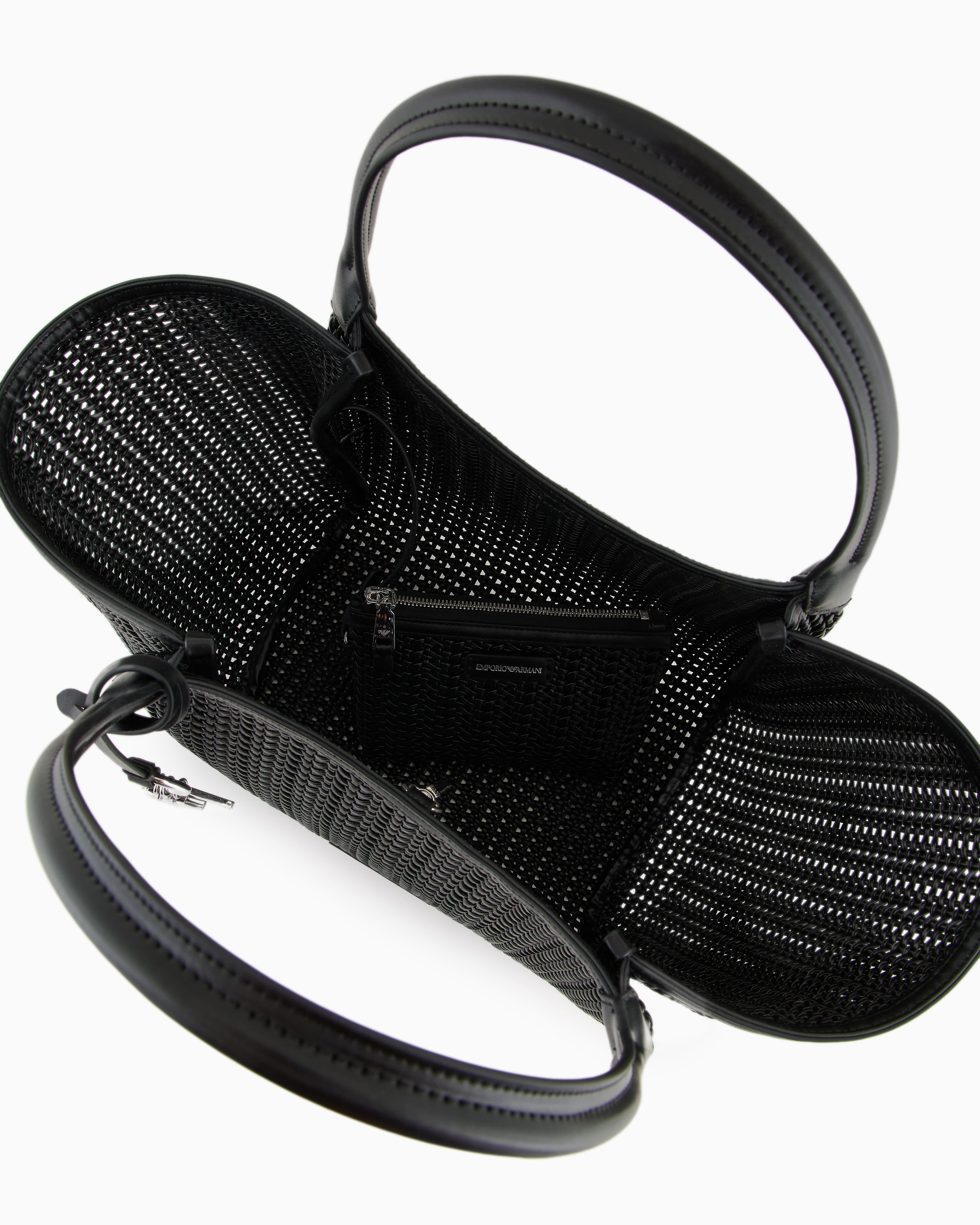 Большая переплетенная сумка с двойной ручкой и металлическим украшением в форме букв EA. Изделие выполнено в стиле sac de jour, отражающее элегантный, изысканный, функциональный и шикарный стиль женщины Emporio Armani. Дизайн черпает вдохновение из архивного стиля, адаптированного к современному контексту. Сумка имеет логотип и содержит удобный внутренний съемный чехол.
