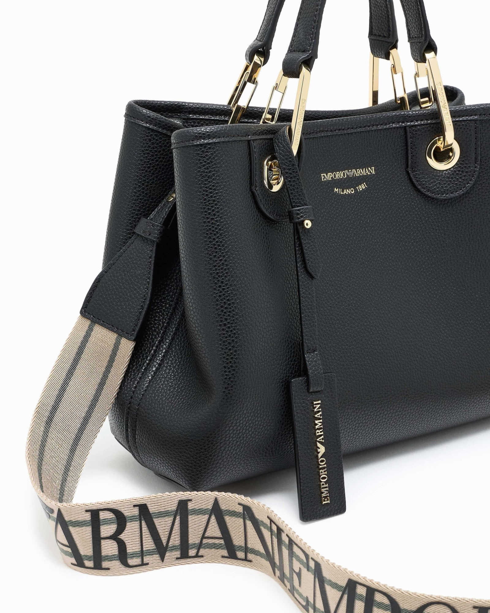 Черная сумка-шоппер Emporio Armani выполнена из полиуретана с полиэстеровой основой, которая придает изделию структурированную форму и современный вид. Магнитная застежка и тисненый логотип дополняются золотистыми карабинами с фирменной гравировкой, а съемный ремень обеспечивает комфортное ношение на плече. В комплект входит подходящий внутренний карман на молнии для удобного хранения мелочей. Благодаря сочетанию элегантности и функциональности эта сумка Emporio Armani легко вписывается в любой повседневный или вечерний образ, дополняя стиль утонченной практичностью.