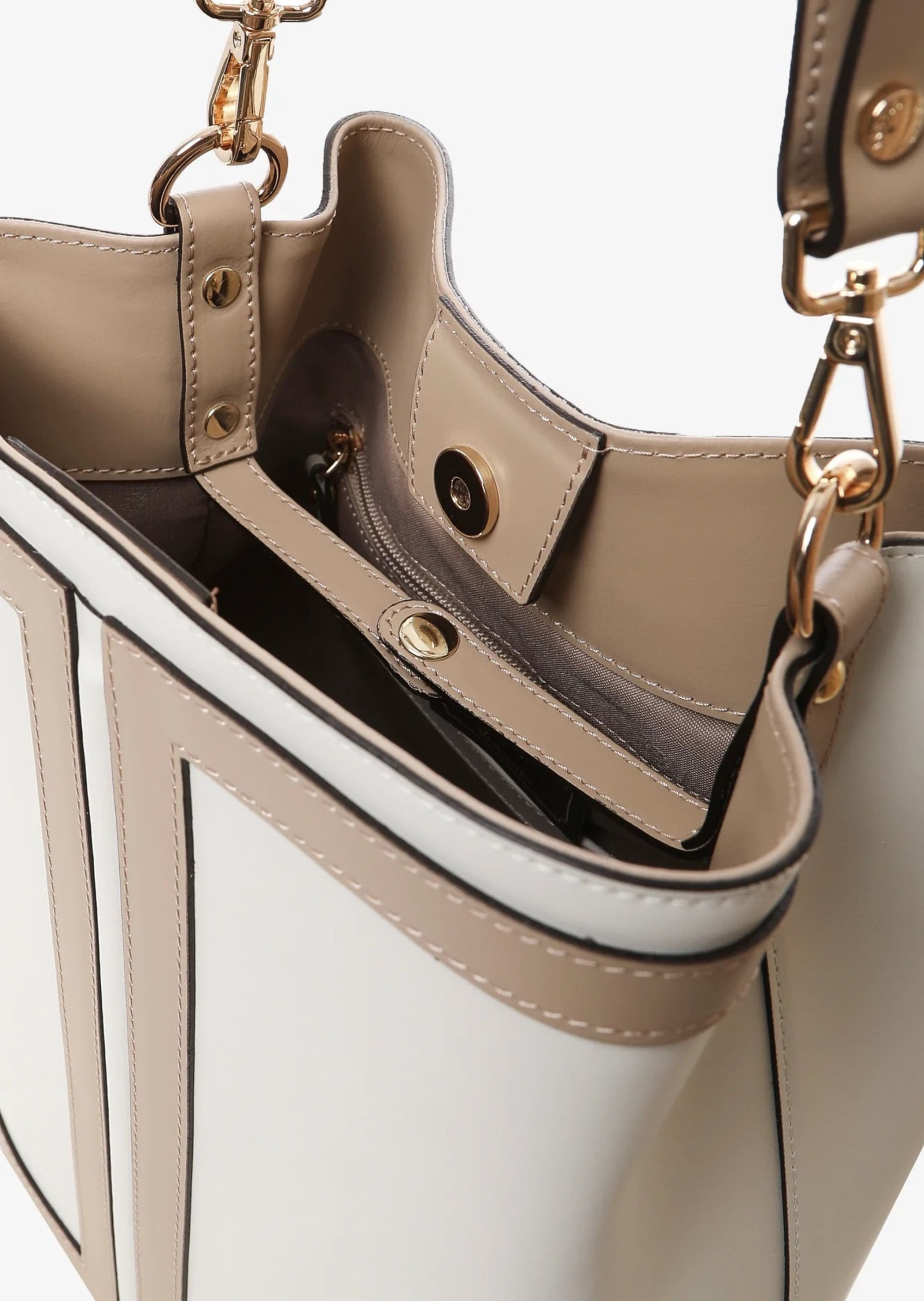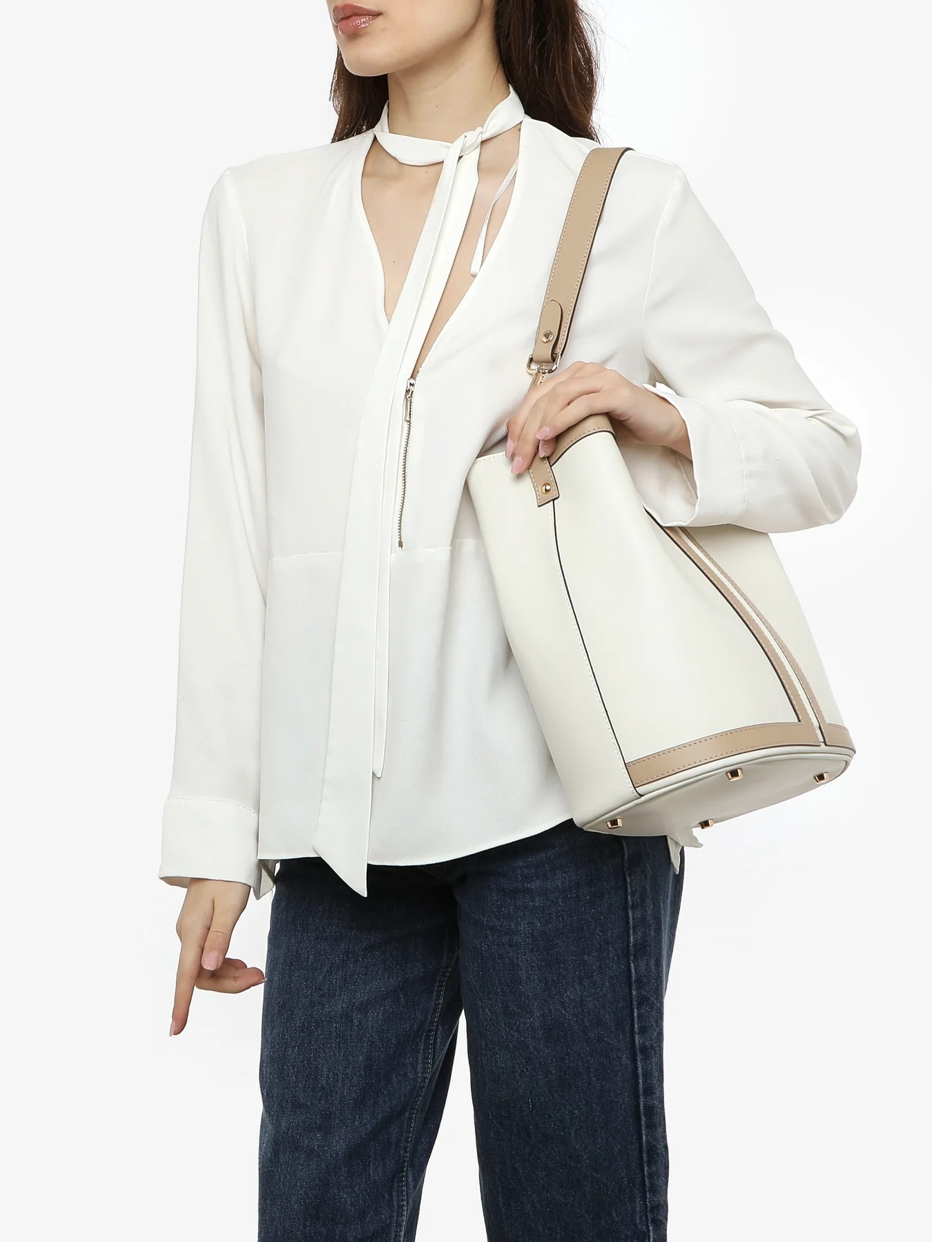 Стильная сумка Camilla от Gianni Notaro, сочетающая элегантность и практичность. Выполнена из высококачественной натуральной кожи с подкладкой из нейлона с логотипом, что обеспечивает износостойкость и комфорт в использовании. Функциональный формат с внутренним карманом на молнии позволяет удобно разместить все необходимые вещи. Золотистая фурнитура подчёркивает премиальный характер модели. Кремово-экрю оттенок универсален и легко сочетается с повседневной и деловой одеждой. Эта сумка станет изысканным дополнением к вашему образу, предлагая баланс стиля, качества и удобства.