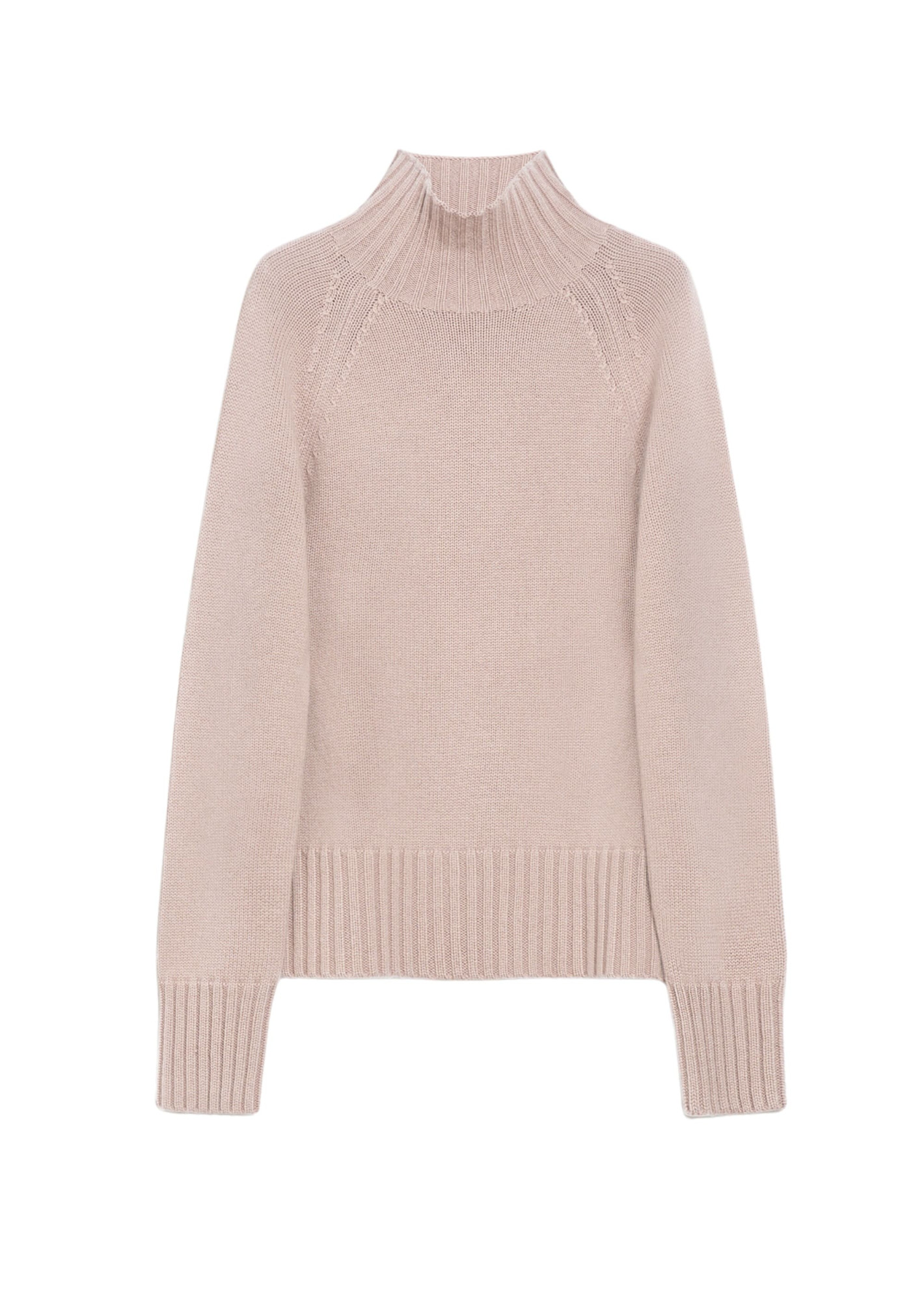 Водолазка из роскошной пряжи из шерсти и кашемира. Минималистский дизайн дополнен ребристыми краями, воротником и манжетами с контрастной каймой, а также длинными рукавами реглан.
