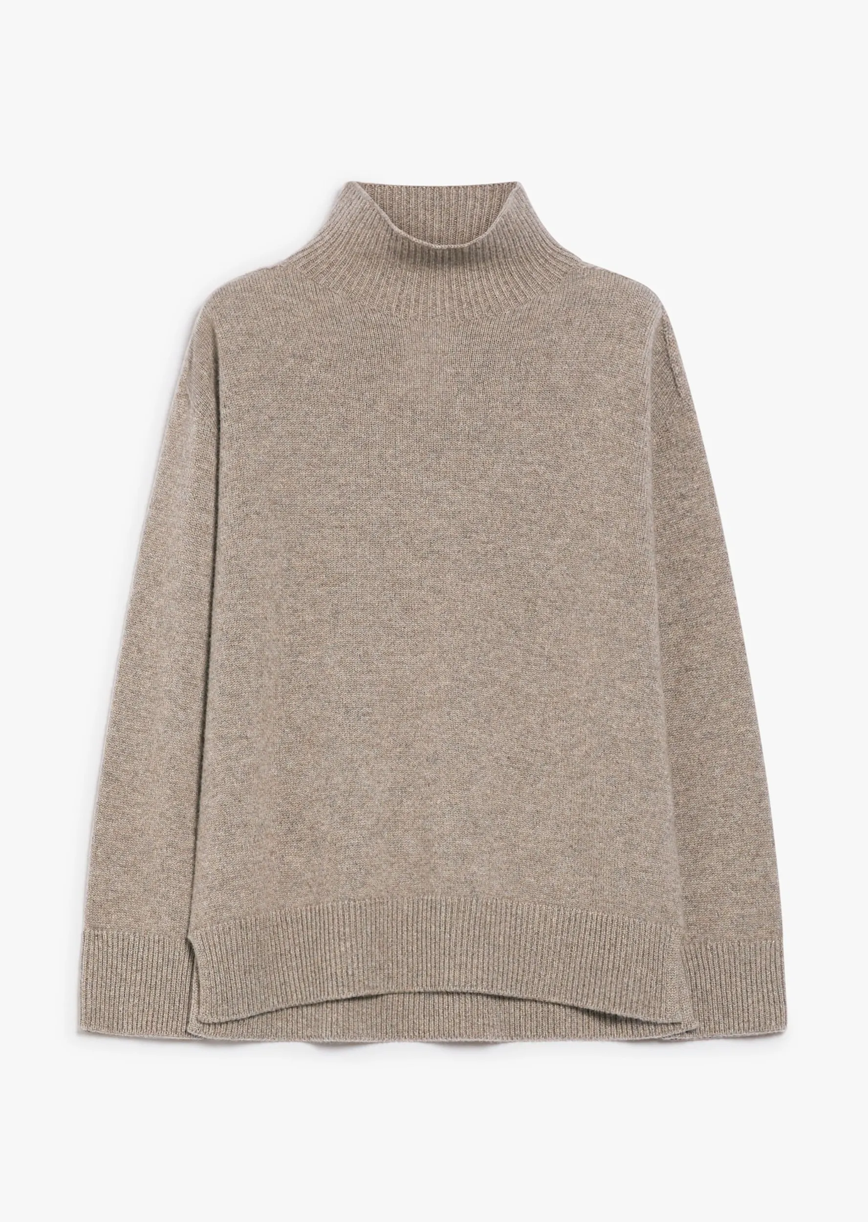 Водолазка из роскошной пряжи из шерсти и кашемира. Минималистский дизайн дополнен ребристыми краями, воротником и манжетами с контрастной каймой, а также длинными рукавами реглан.