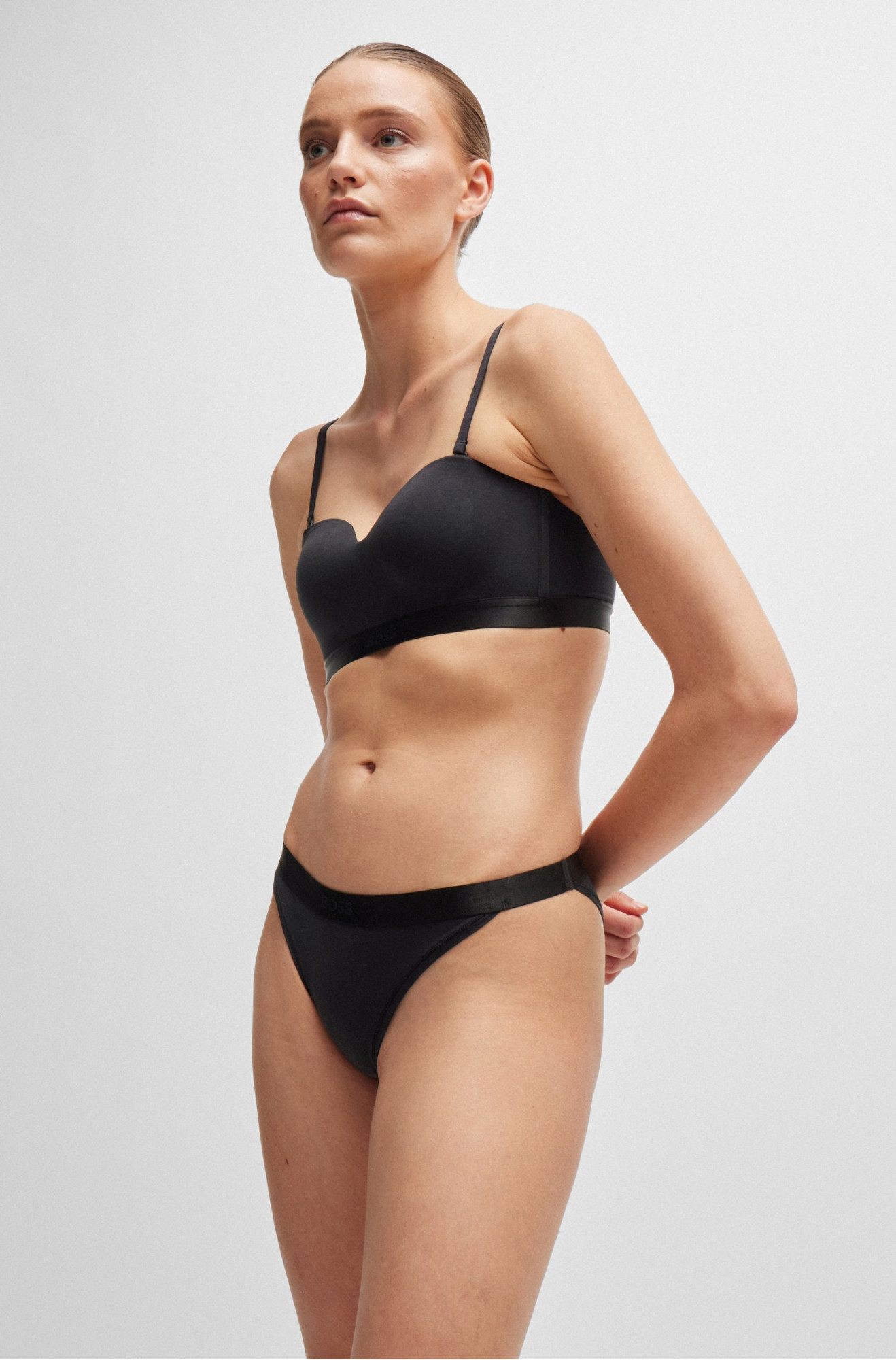 Фирменные трусы от BOSS для женщин. Модель выполнена из хлопка и стрейча. Белье приятное на ощупь, имеет стандартную посадку и украшено логотипом бренда.