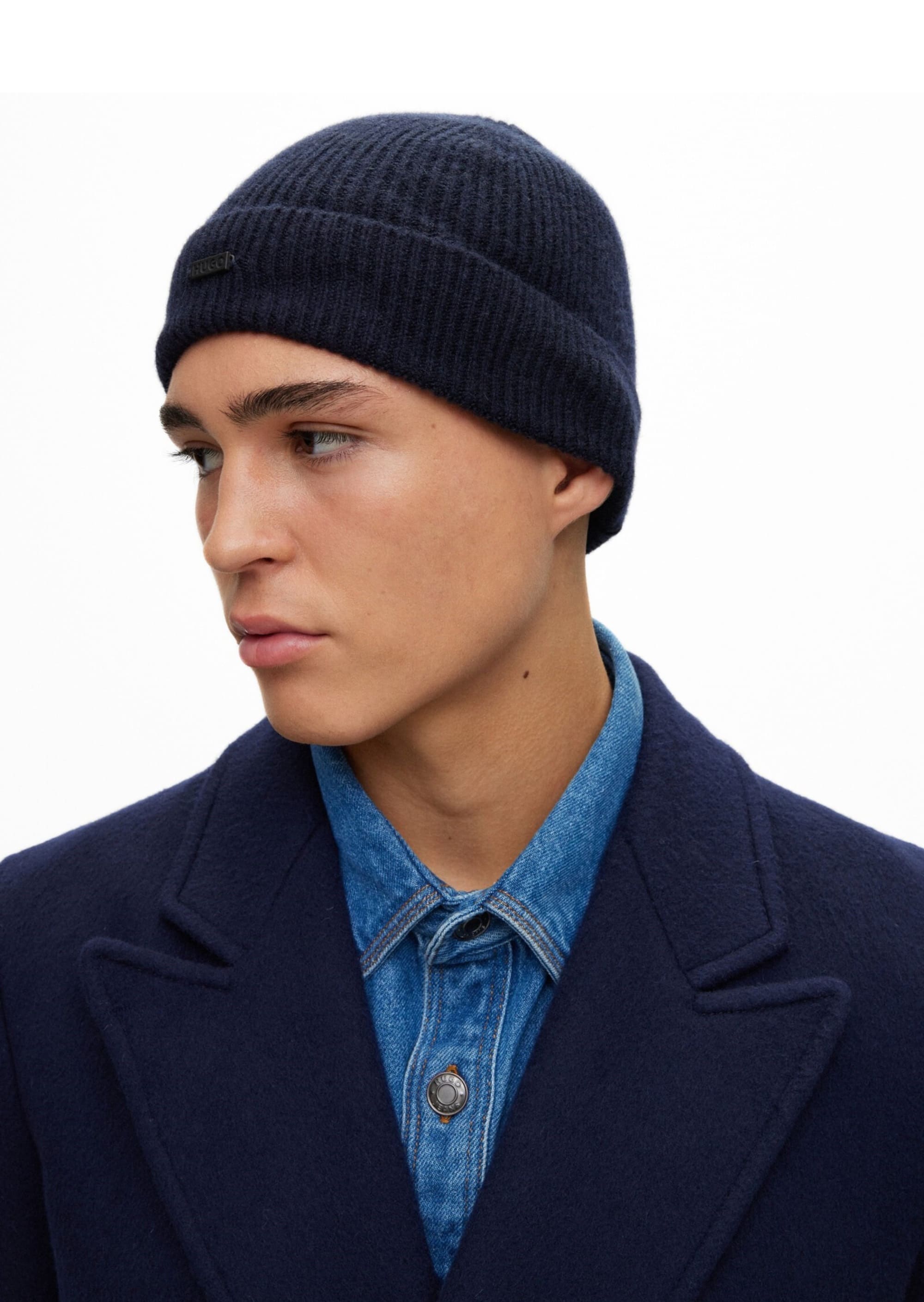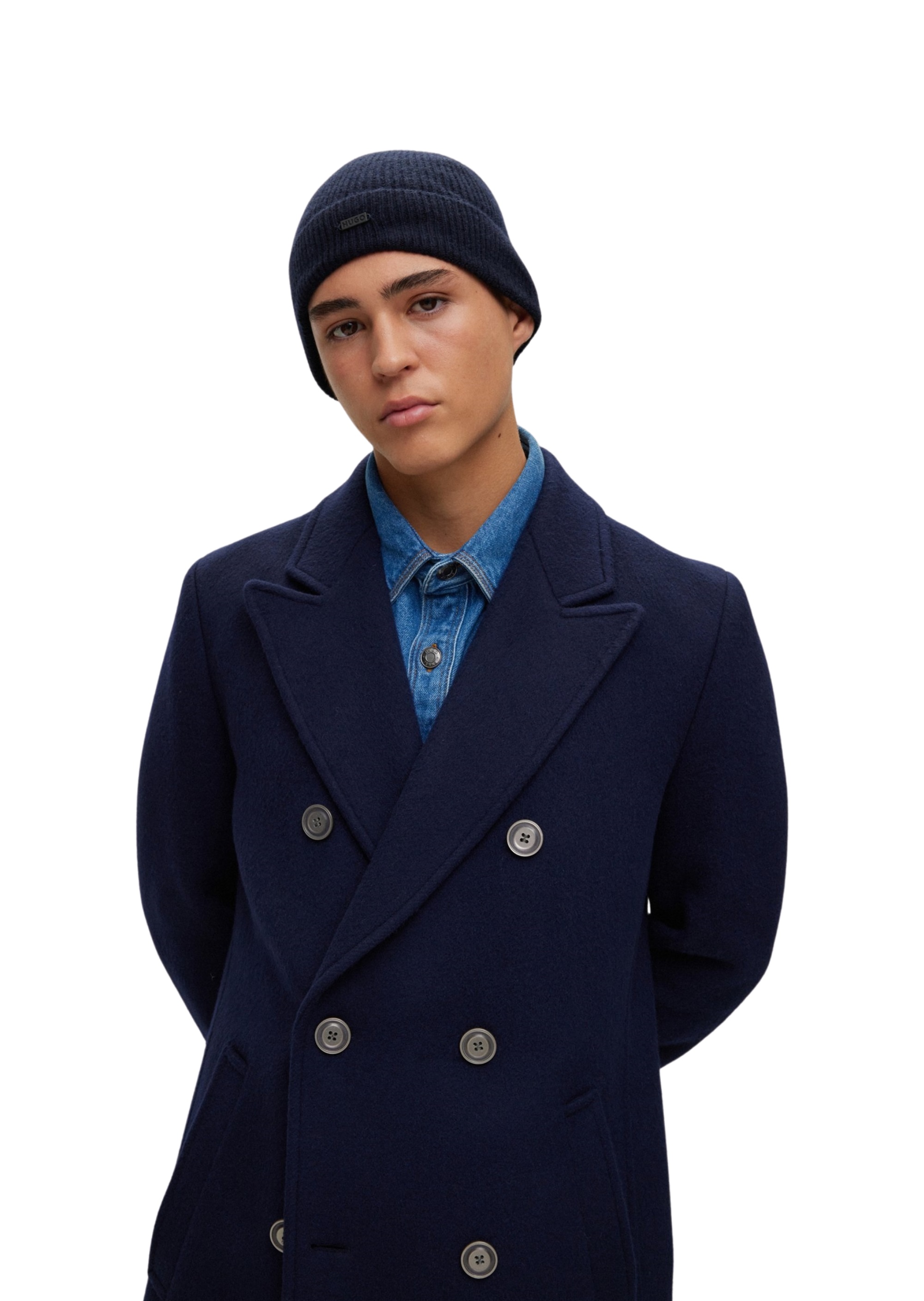 Шапка від HUGO, в рубчик із металевою бляшкою-логотипом.