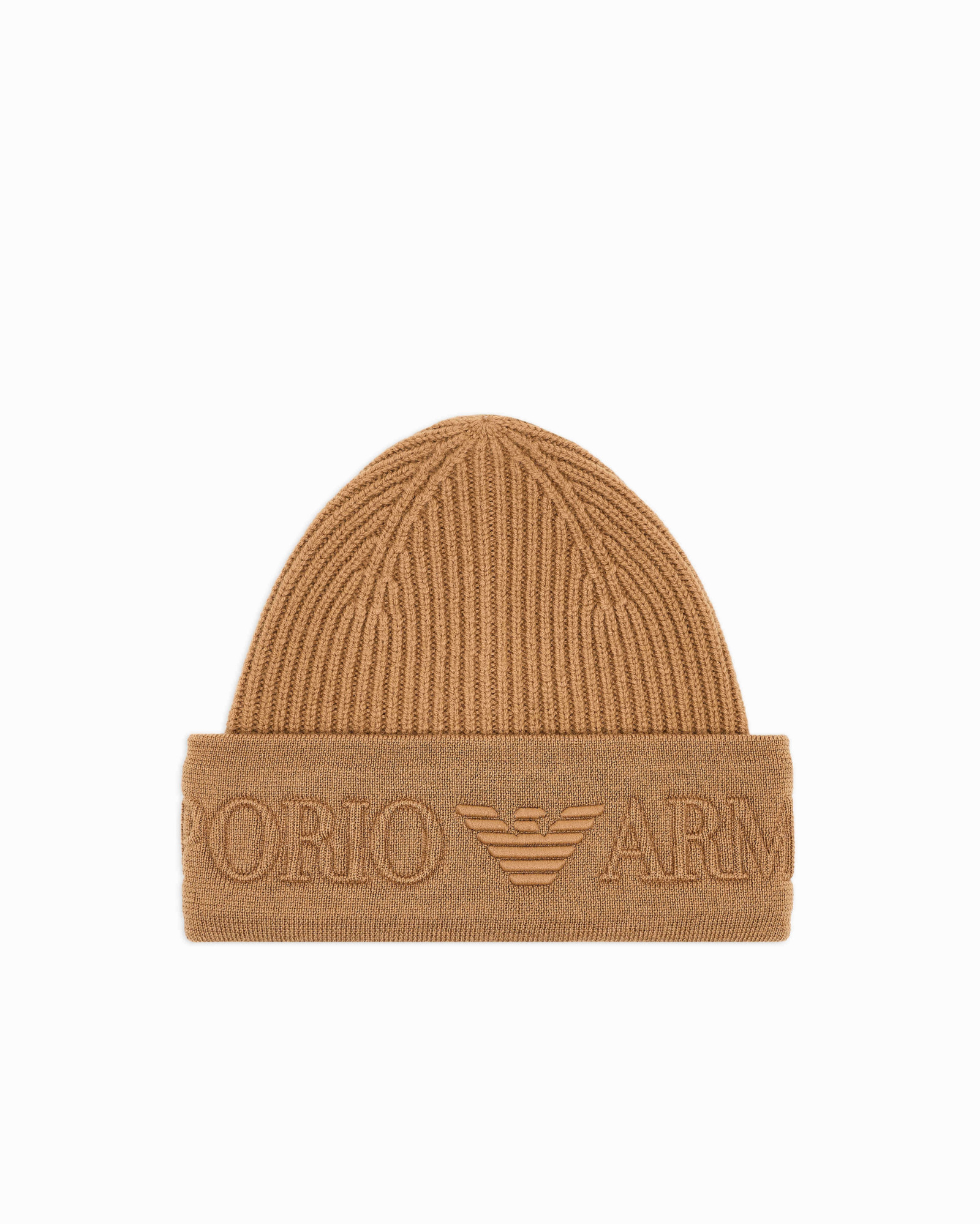 В’язана вовняна шапка Emporio Armani бежевого кольору з виразним тисненим логотипом та вишитим орлом на відвороті створює затишок і завершеність зимовому образу. М’яка натуральна шерсть забезпечує тепло і комфорт навіть у холодні дні. Чудово поєднується з теплими пальтами та шерстяними светрами, додаючи вишуканої ноти повсякденному стилю.
