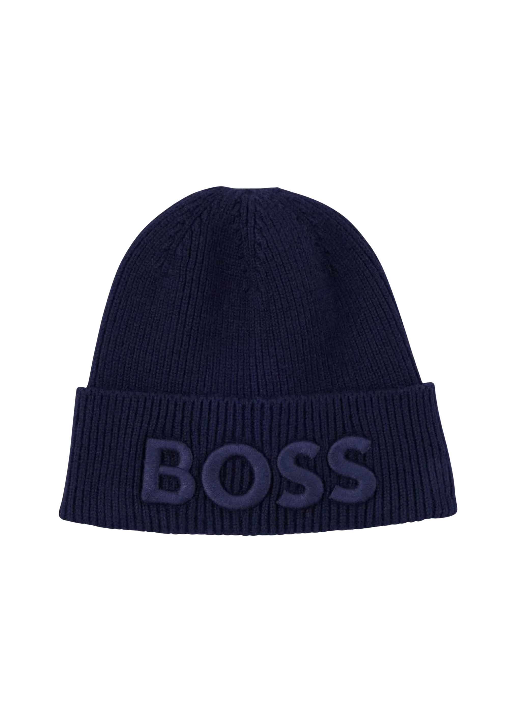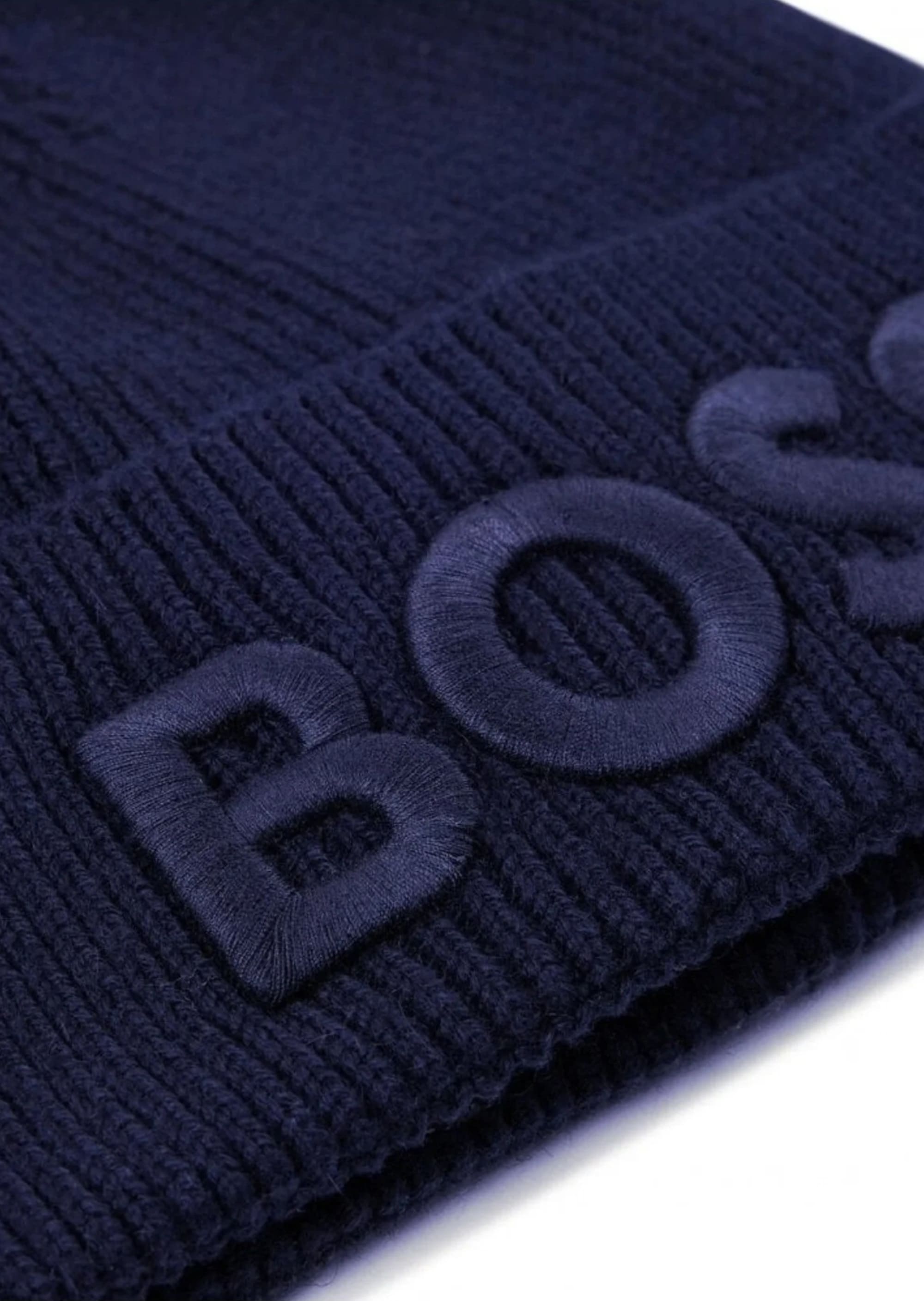 Шапка-beanie BOSS насиченого темно-синього відтінку повязана з міцної суміші вовни та поліакрилу, що створює виразну фактуру та мякість. Елегантне вишивання логотипу підкреслює преміальну увагу до деталей. Комбінація матеріалів надійно зберігає тепло та комфорт за низьких температур. Універсальний дизайн легко поєднується із пальто або курткою BOSS. Шапка надає образу завершену, сучасну витонченість.