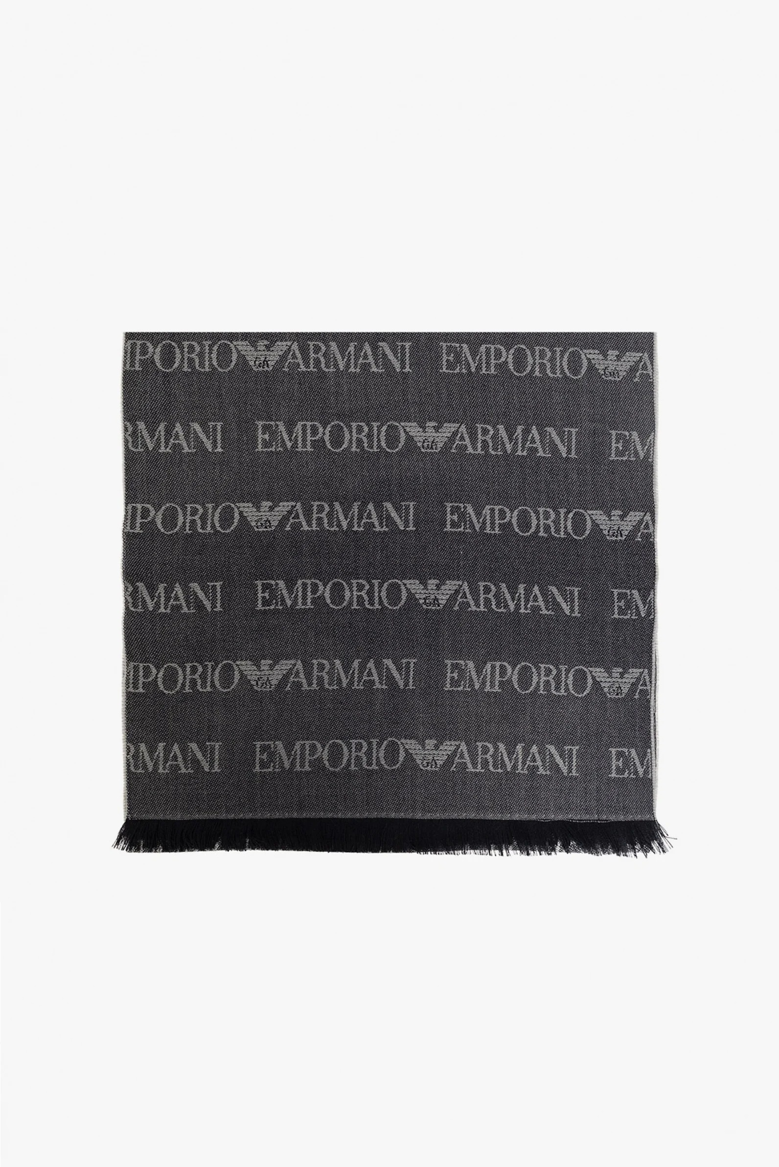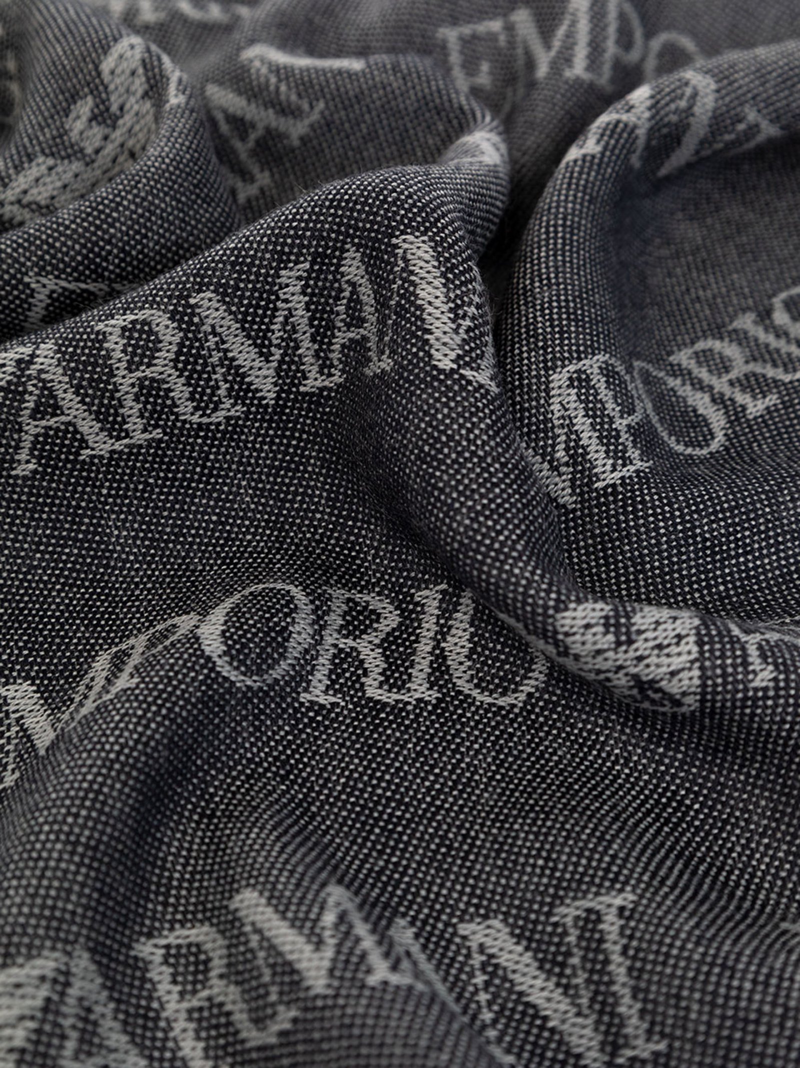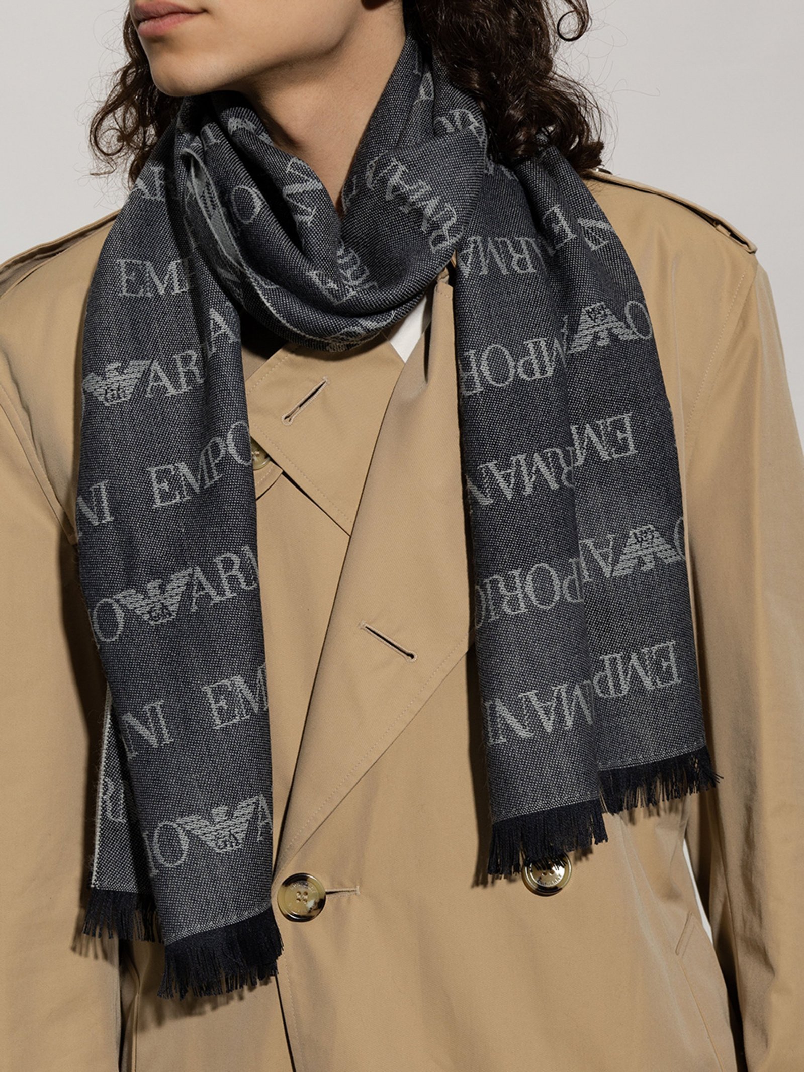 Шарф, виготовлений із натуральної вовни, має характерний контрастний жаккардовий логотип. Бахрома підкреслює класичний стиль аксесуара.
