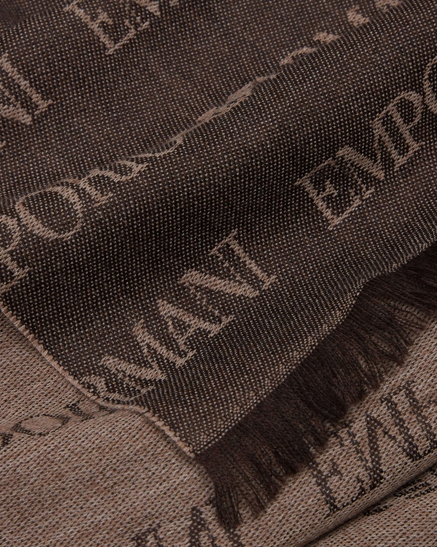 Шарф Emporio Armani у шоколадному відтінку виготовлений зі суміші акрилу та вовни, що надає матеріалу м’якість, тепло й легкість у догляді. Текстура вирізняється приємністю на дотик і стійкістю до зношування, зберігаючи форму під час тривалого використання. Універсальна довжина дозволяє носити виріб у різний спосіб, створюючи багатошарові образи. Глибокий коричневий колір органічно поєднується з пальтом у нейтральній гамі, кашеміровими джемперами та шкіряними аксесуарами. Шарф Emporio Armani стає продуманим акцентом зимового гардероба, поєднуючи практичність і сучасний стиль.