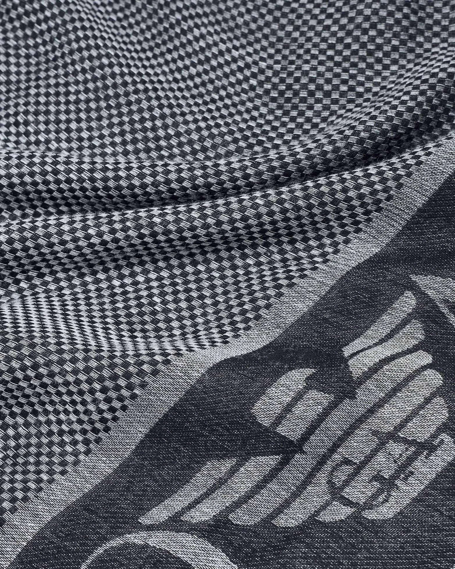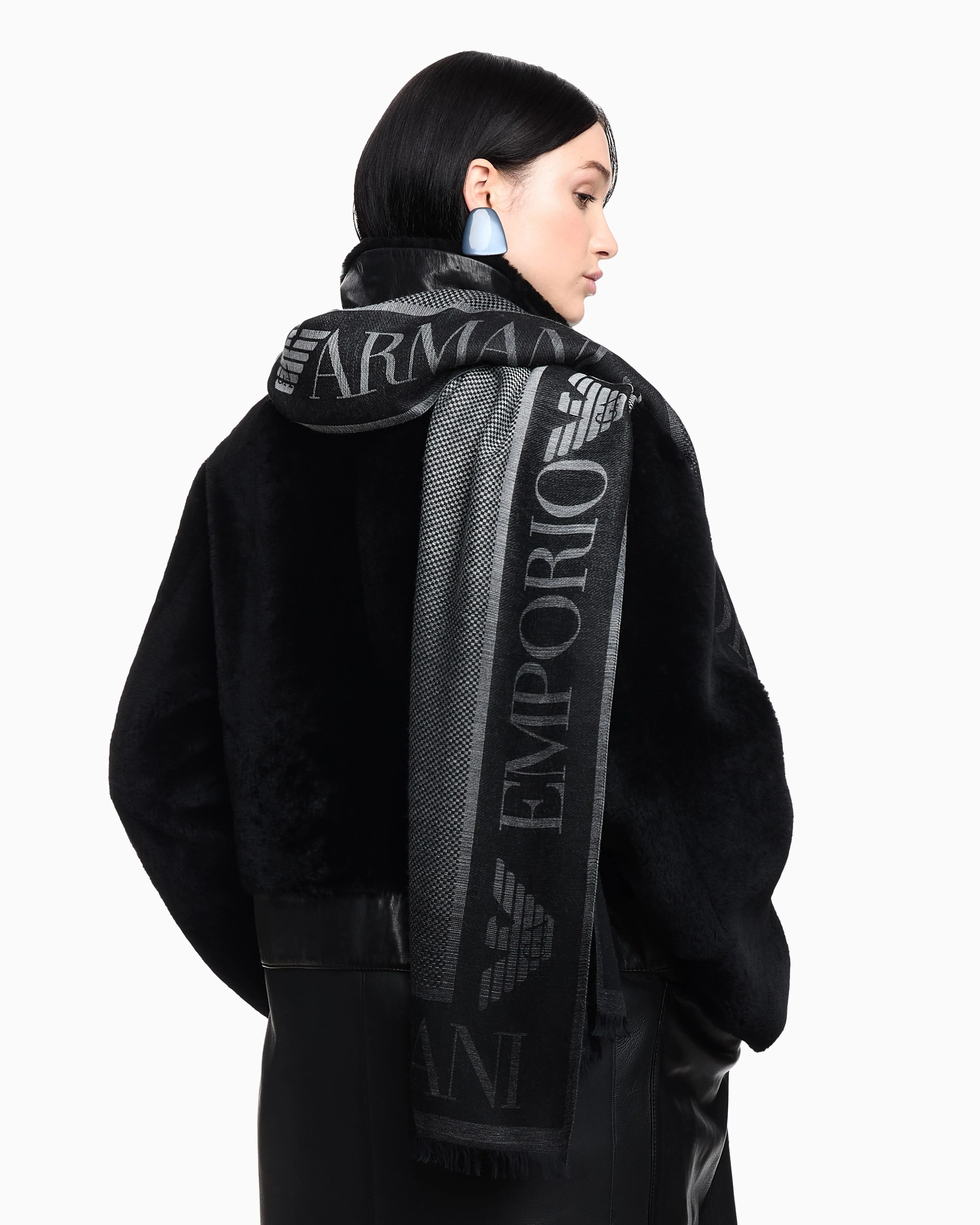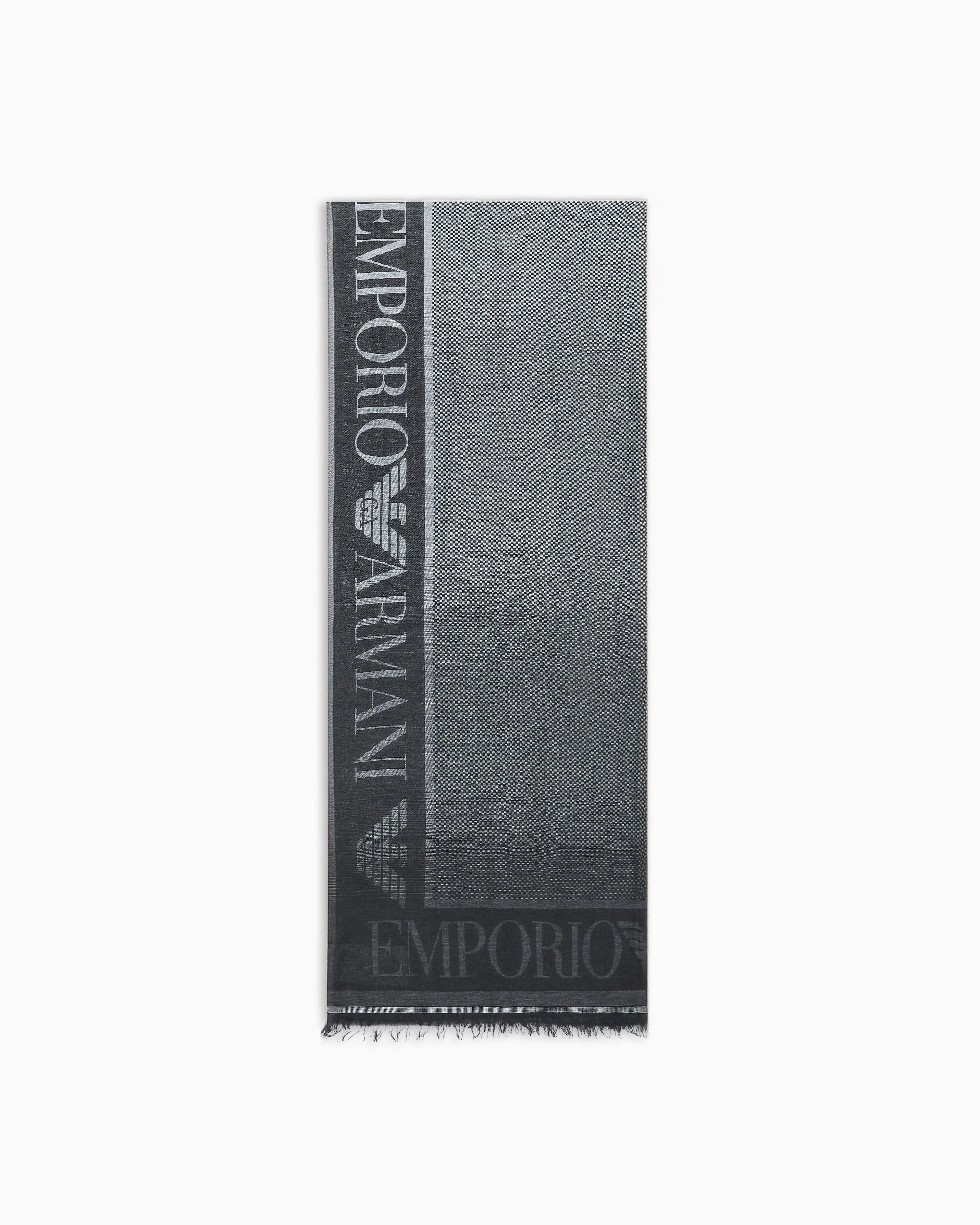 Чорний шарф Emporio Armani з градієнтним мікроклітинним візерунком — виразний аксесуар з інтелігентною геометрією. М’яке італійське полотно з віскози та модалу забезпечує легкість і комфорт, а контрастний логотип уздовж країв завершує образ впізнаваним акцентом. Розмір 180 × 73 см забезпечує універсальність — пасує як до класичного пальта, так і до тренча чи шкіряної куртки. Сучасне переосмислення ділового стилю, де строгість лінії поєднується з плавністю тканини.