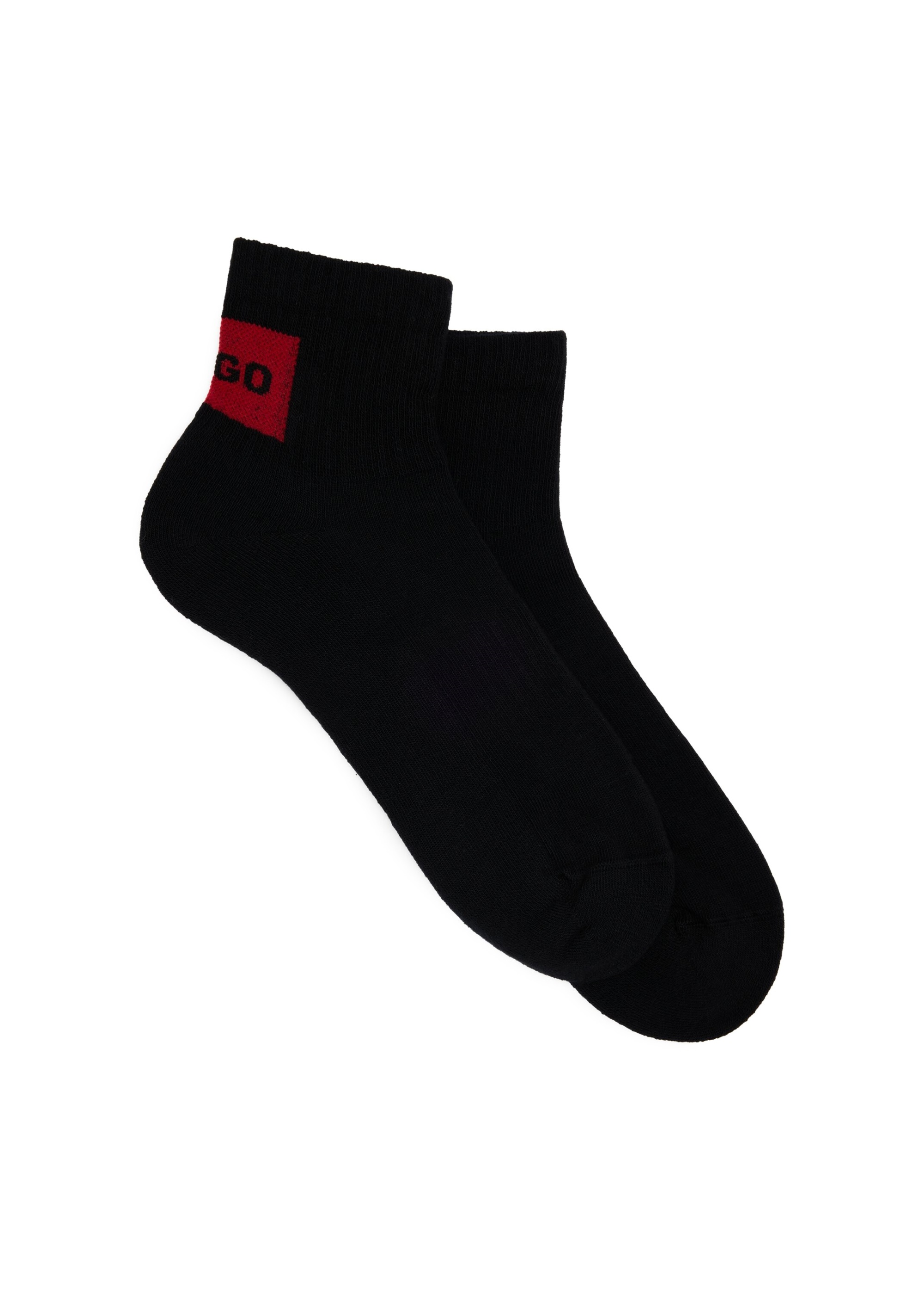 Шкарпетки в рубчик від HUGO. Кожна пара має плюшеву підошву та червону етикетку з логотипом. Модель виконана з бавовни.