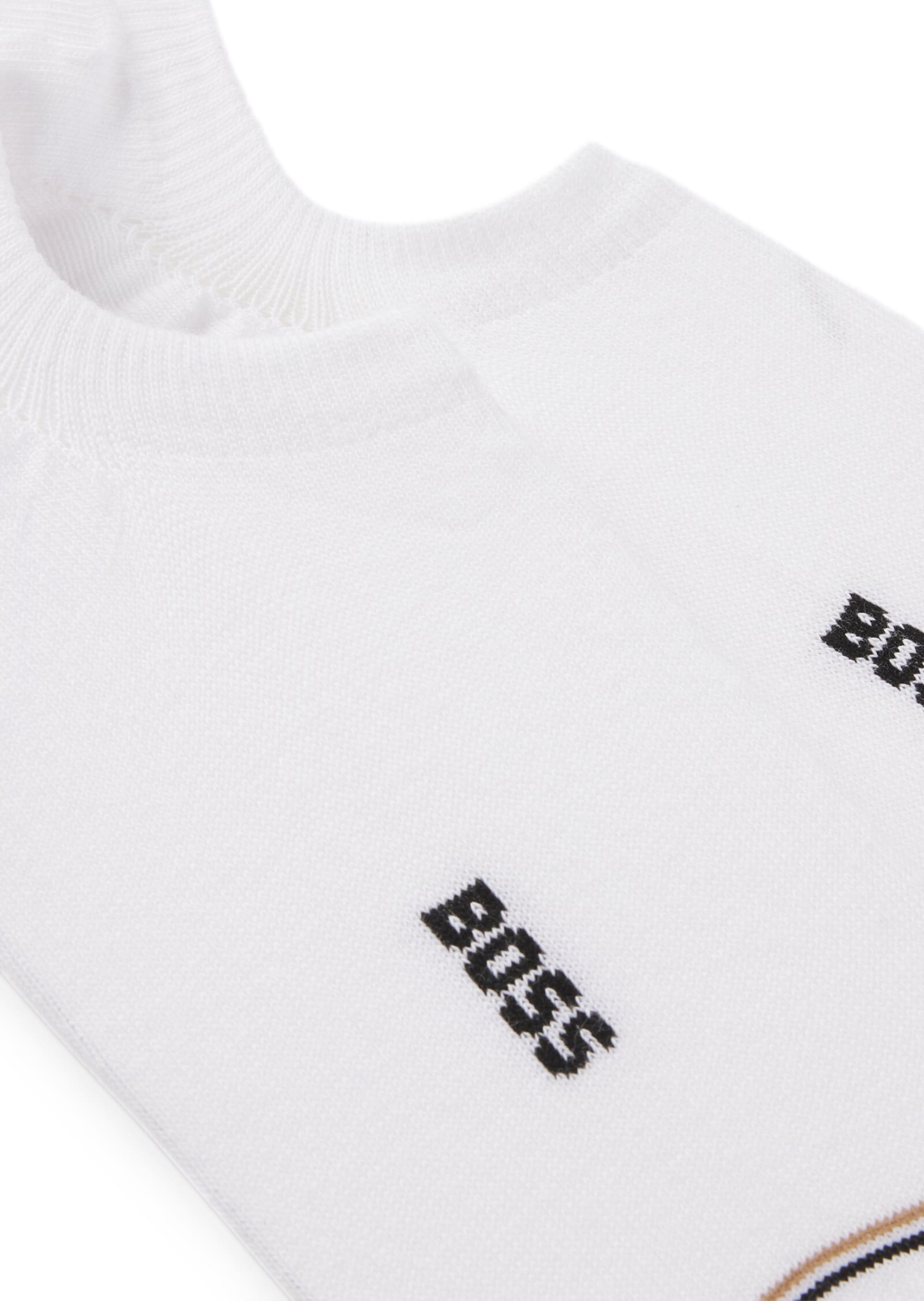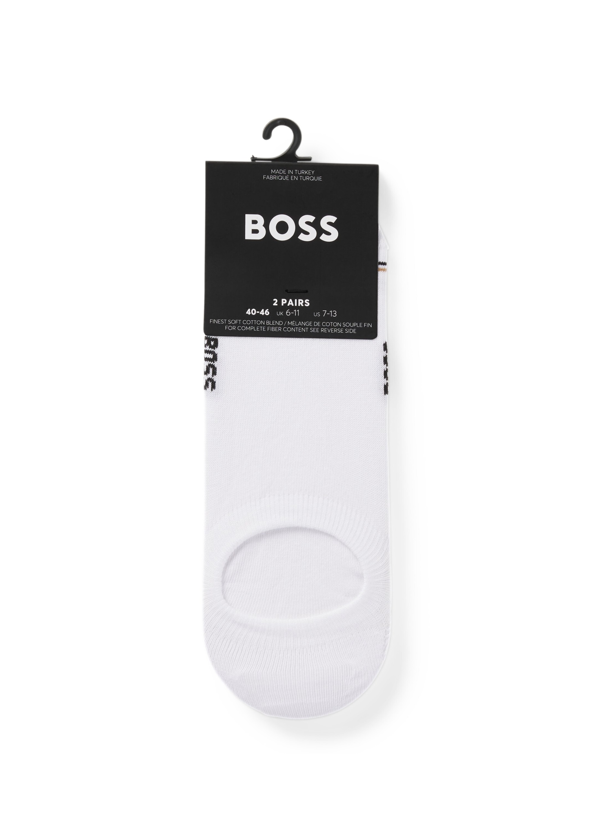 Набір із двох пар білих шкарпеток BOSS поєднує комфорт і стиль. Кожна пара виготовлена з високоякісної суміші з високим вмістом бавовни та додаванням еластичних волокон, що забезпечує ідеальну посадку та довговічність. Фірмовий логотип і характерна смужка додають аксесуару впізнаваності та сучасного акценту. Універсальний білий колір робить шкарпетки ідеальним доповненням до будь-якого повсякденного образу. Шкарпетки BOSS — це поєднання функціональності та вишуканого дизайну, які забезпечують комфорт і підкреслюють ваш бездоганний смак у кожній деталі.