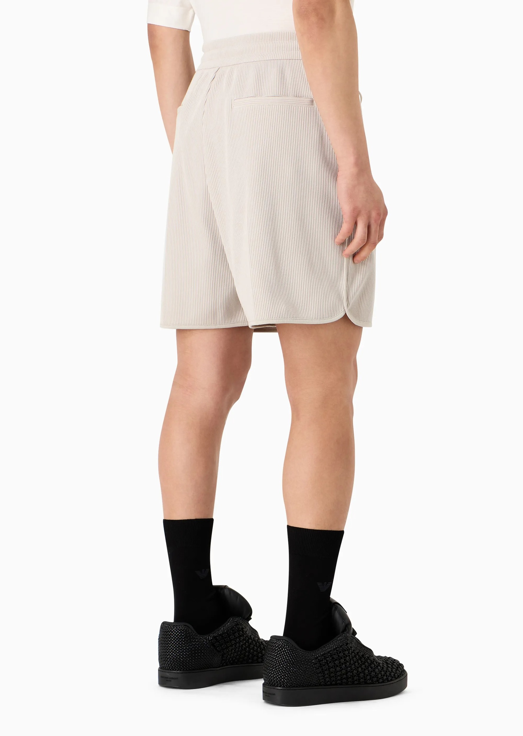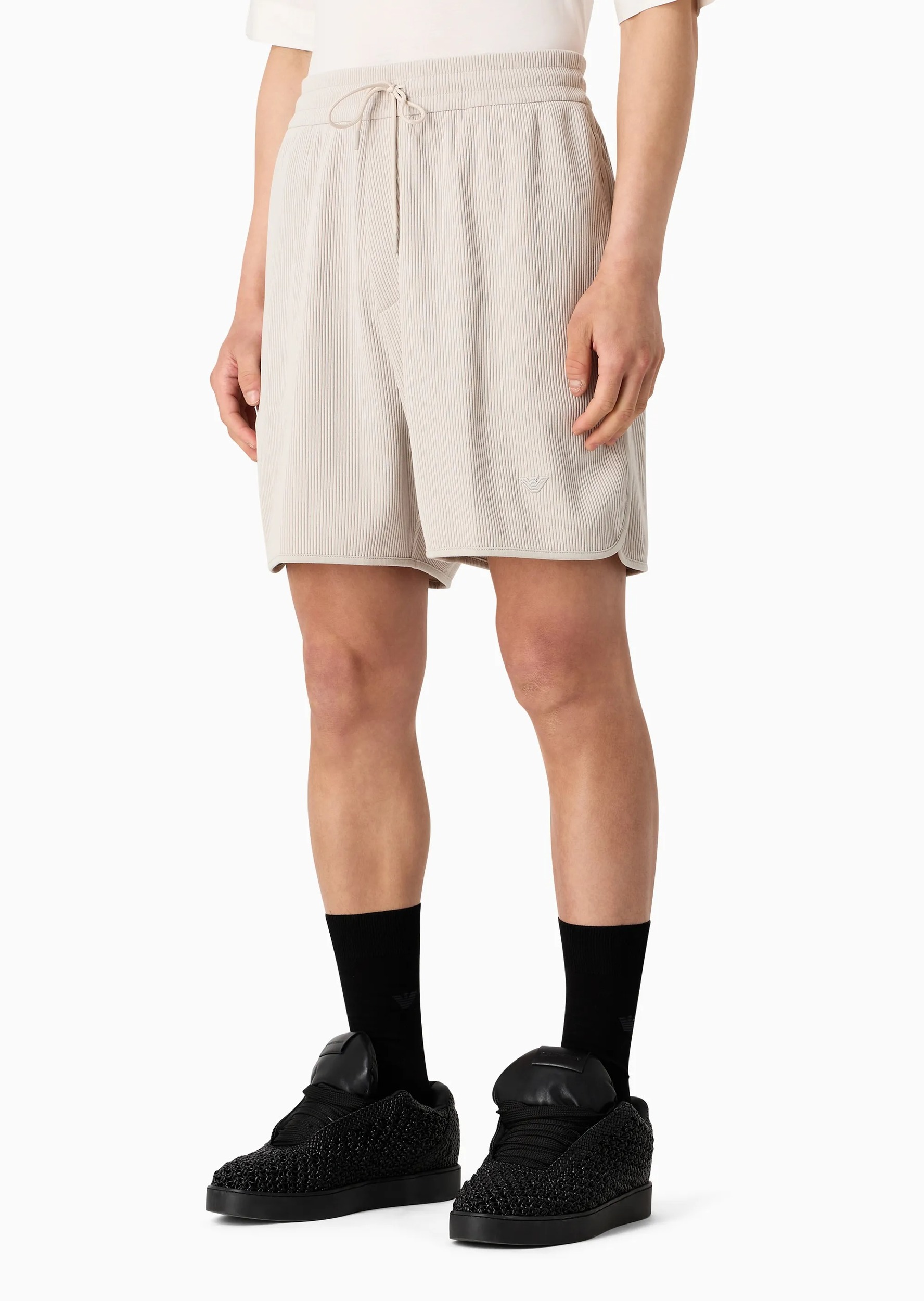 Комфортні шорти-бермуди зі шнурком на талії. Вони виготовлені із суміші бавовни, а текстура має рельєфне ребристе переплетення, характерне для каннетної тканини.