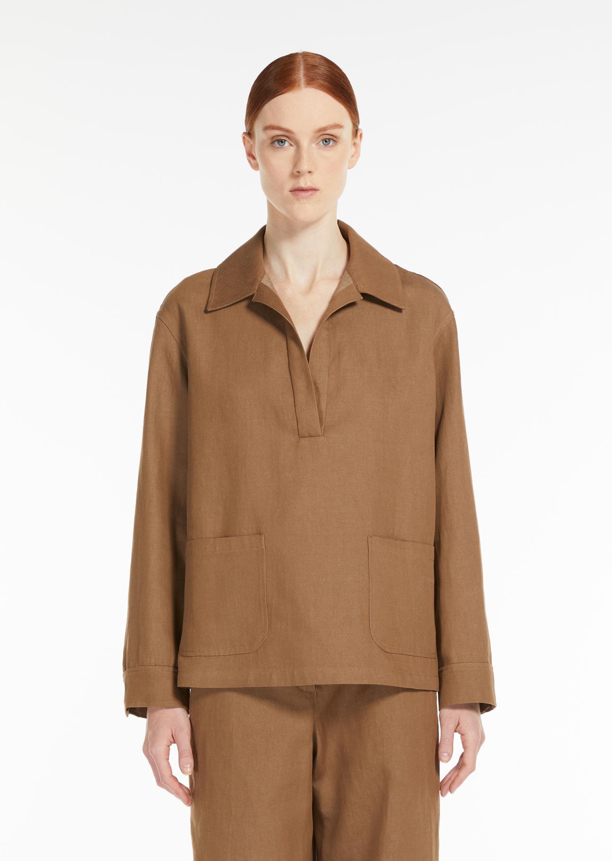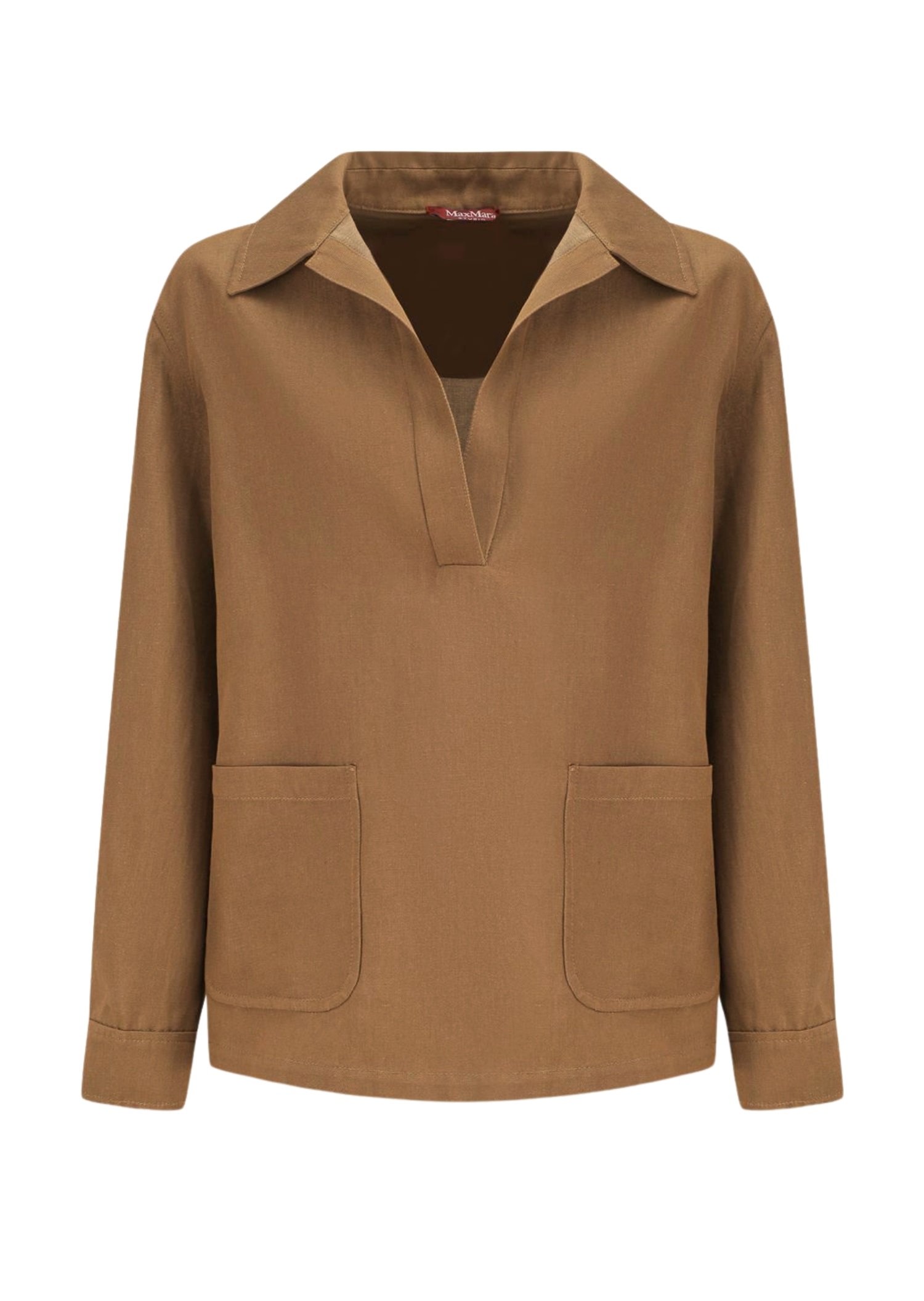 Жіноча блуза Max Mara вільного крою – поєднання елегантності та комфорту. Модель доповнена двома накладними кишенями з боків, що додають стилю та функціональності. Гострий сорочковий комір надає образу вишуканості, а довгі рукави підкреслюють витонченість силуету. Ідеальний вибір для створення як ділових, так і повсякденних образів.