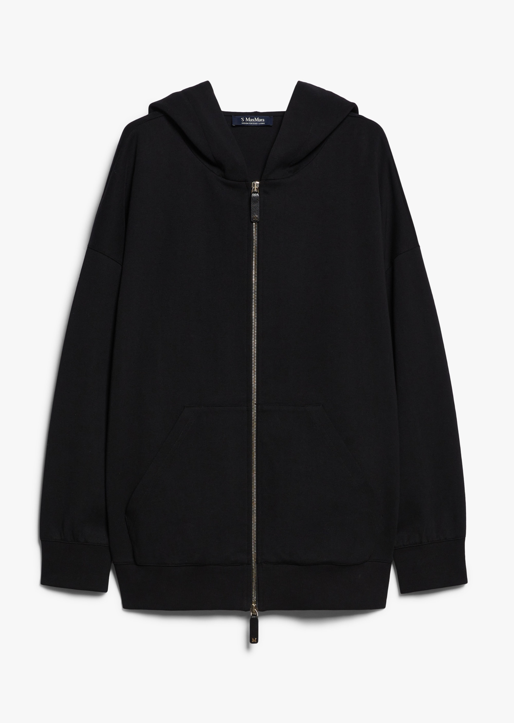 Кофта, виготовлена з мякого бавовняного трикотажу. Накладні кишені спереду та ребристі краї. З логотипом Max Mara, вишитим по всьому внутрішньому краю. Застібка спереду на блискавку з подвійним бігунком.
