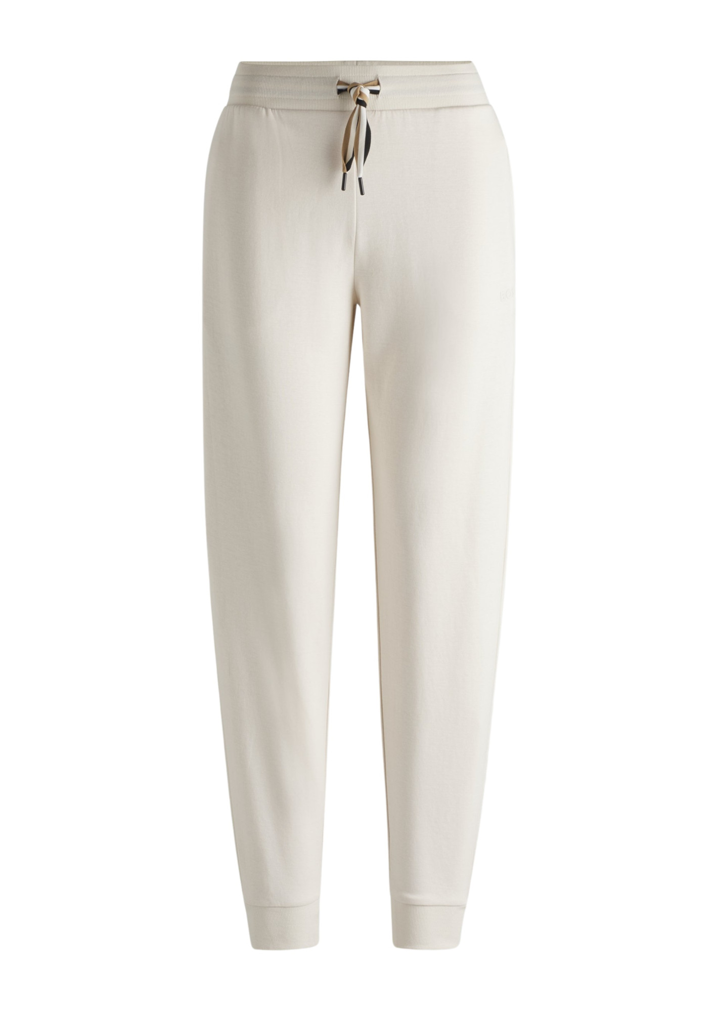Зручні спортивні штани від BOSS виконані із якісної тканини із високим вмістом бавовни. Модель з манжетами, має фірмовий шнурок із смужками. Комфортний домашній одяг.