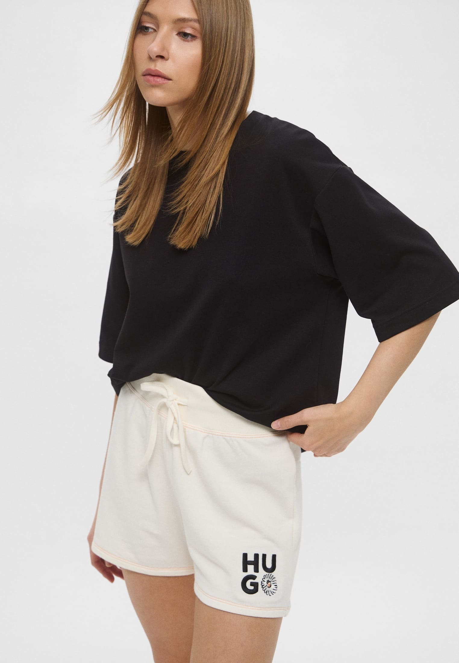 Жіночі шорти Hugo забезпечать комфорт та стиль для ваших щоденних тренувань. Висока талія наголошує на фігурі, а високоякісні матеріали забезпечують свободу рухів. Ідеально підходить для занять спортом чи створення повсякденних образів.