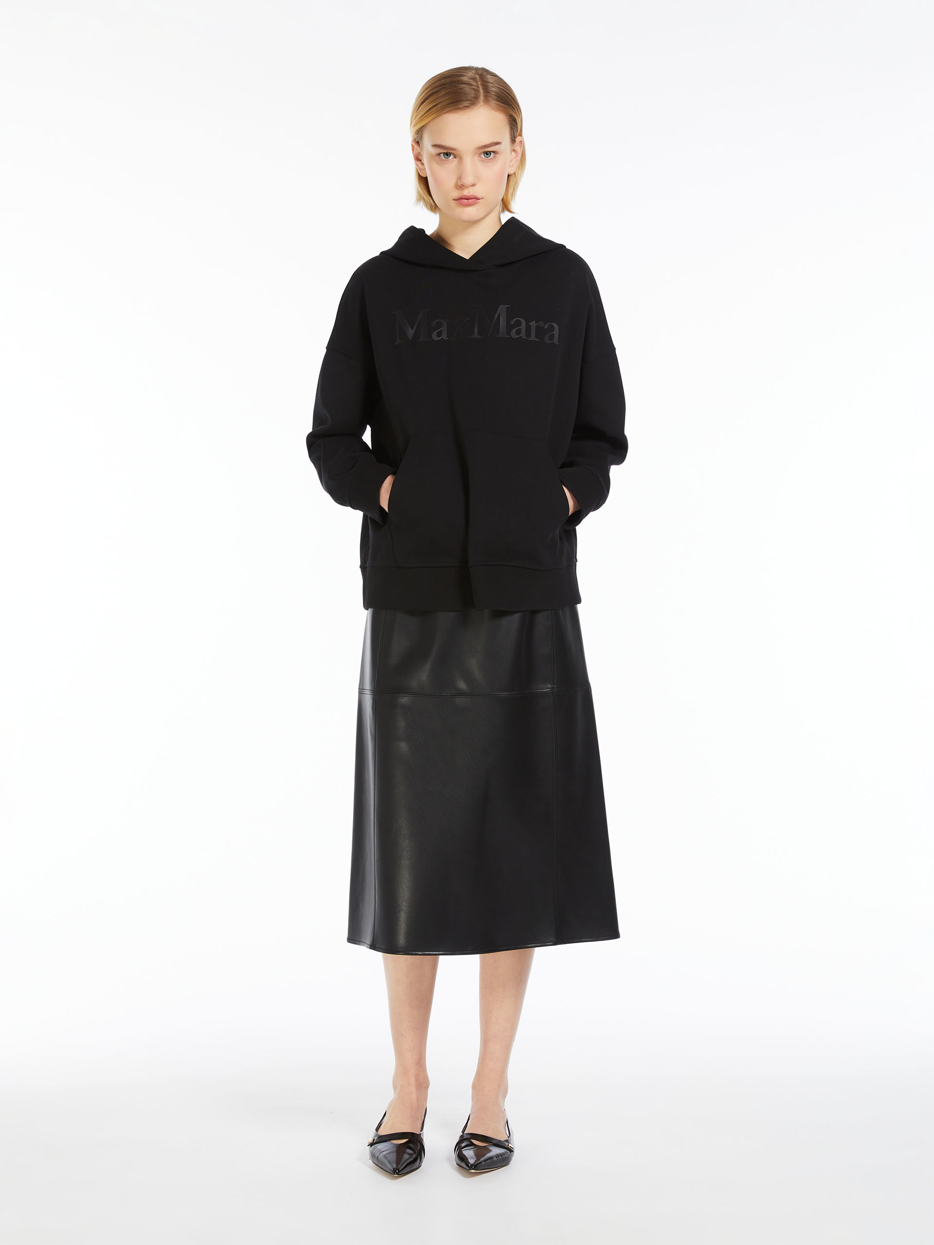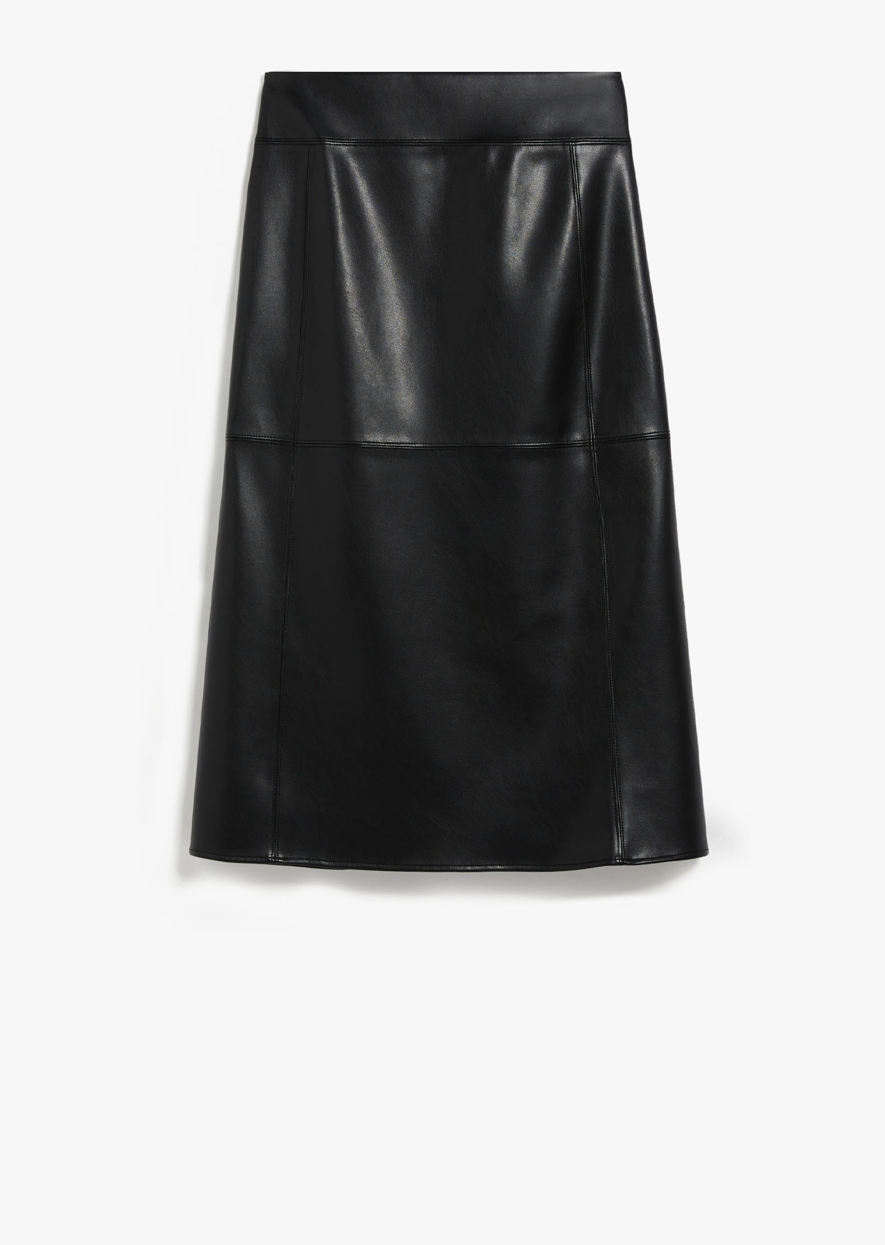 Спідниця міді з прямою та злегка розкльошеною лінією, виготовлена з м’якої тканини з покриттям, гладкої та приємної на дотик. Без підкладки та швами для виробів зі шкіри. Невидима застібка ззаду.