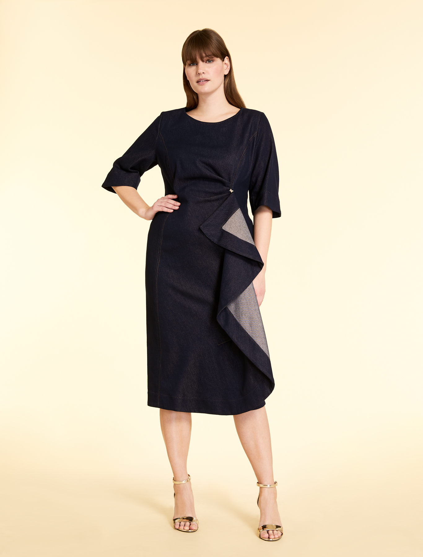 Сукня від Marina Rinaldi, стандартного крою, яка підкреслить вашу жіночність та елегантність.