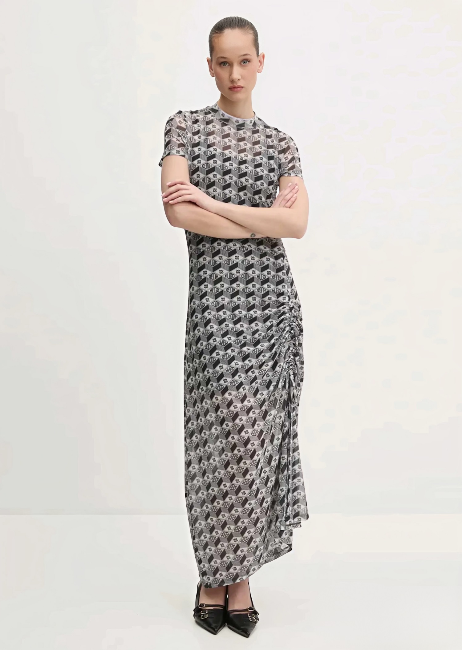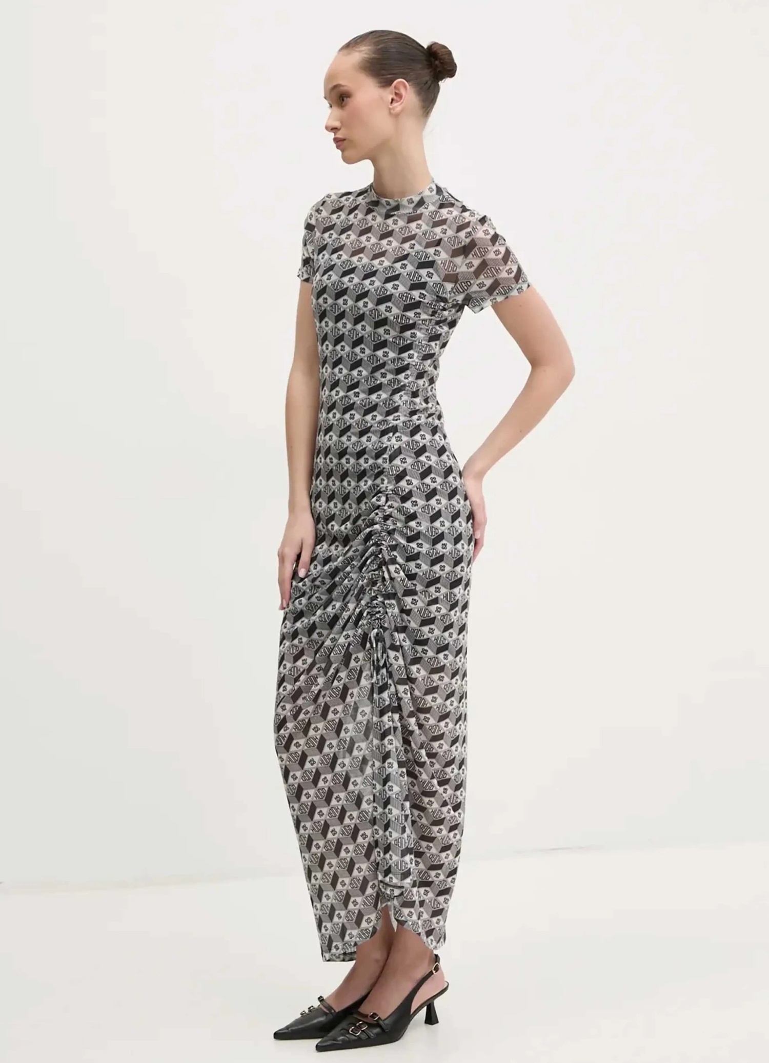 Сукня максі HUGO – витончений баланс стилю та комфорту. Жакардовий малюнок по всій довжині додає елегантності та підкреслює фірмовий характер бренду. Короткі рукави роблять модель легкою та універсальною для різних образів. Ідеальний вибір для стильних повсякденних і вечірніх виходів.