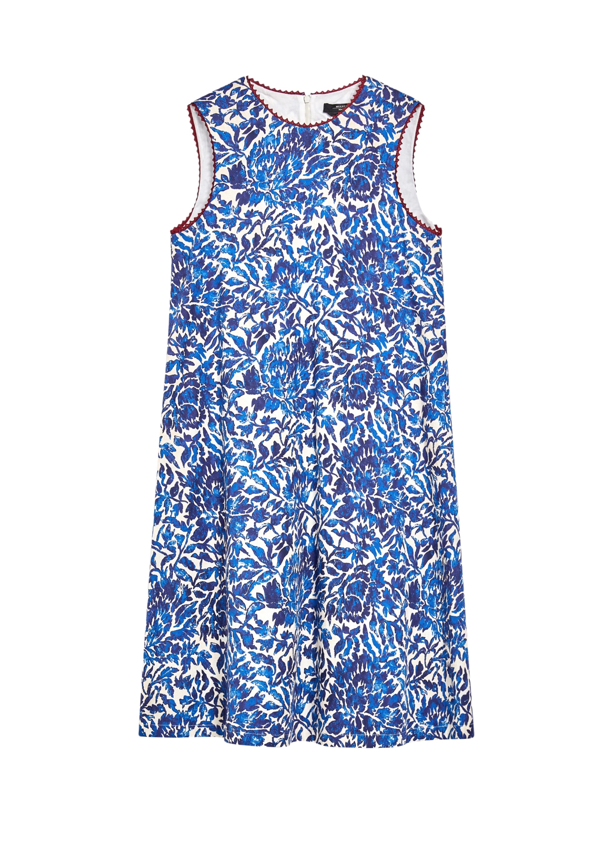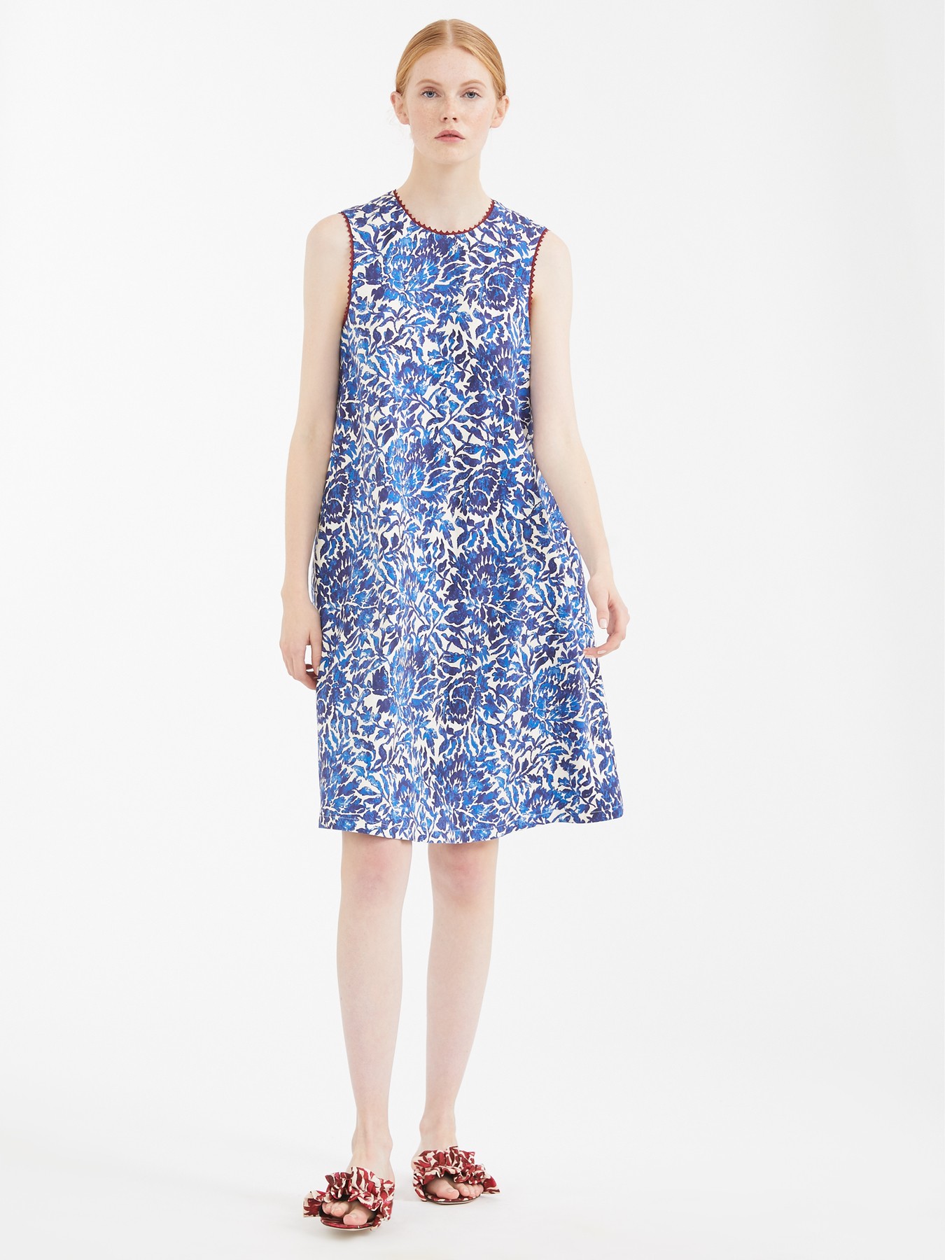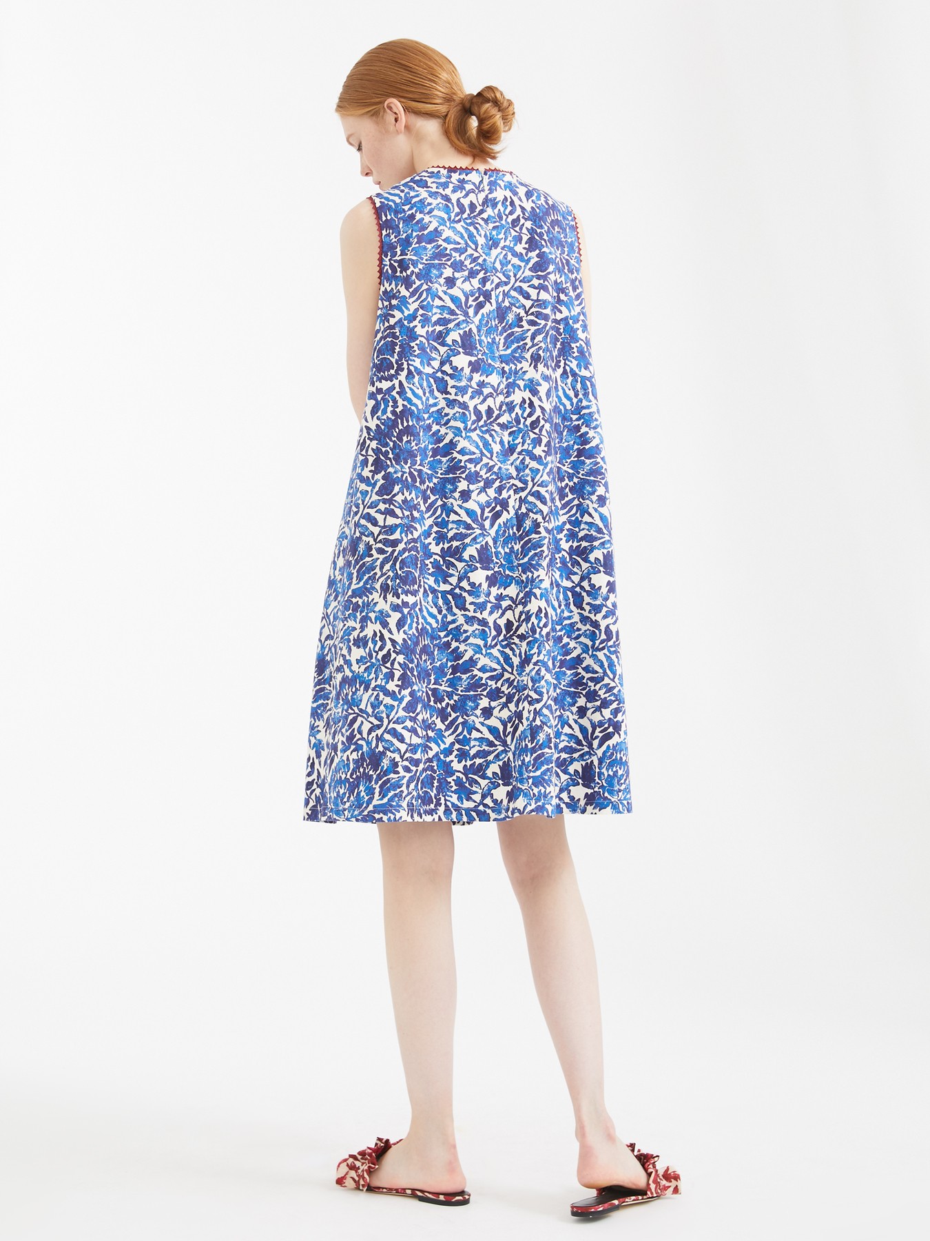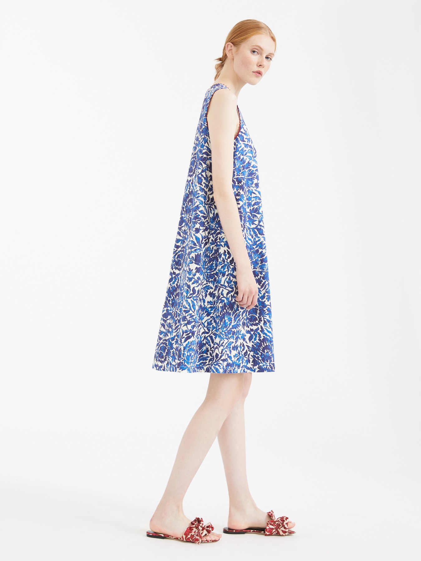 Сукня А-силуету, виготовлена з бавовняного піке, без рукавів, з принтом, з бічними кишенями. Модель з підкладкою, прихована застібка на блискавці ззаду.
