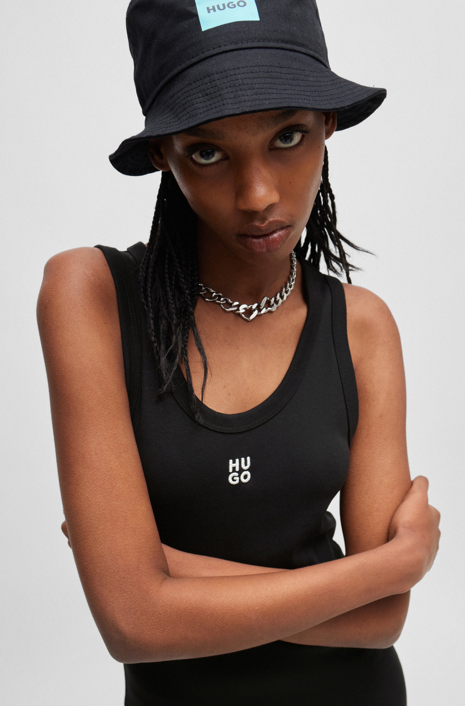 Довга, облягаюча сукня без рукавів від HUGO. Модель виготовлена з еластичного трикотажу. Сучасна сукня з розрізом збоку. Прикрашена невеликим логотипом бренду. Одяг, який можна носити окремо, та стилізувати, експериментуючи зі стилями.