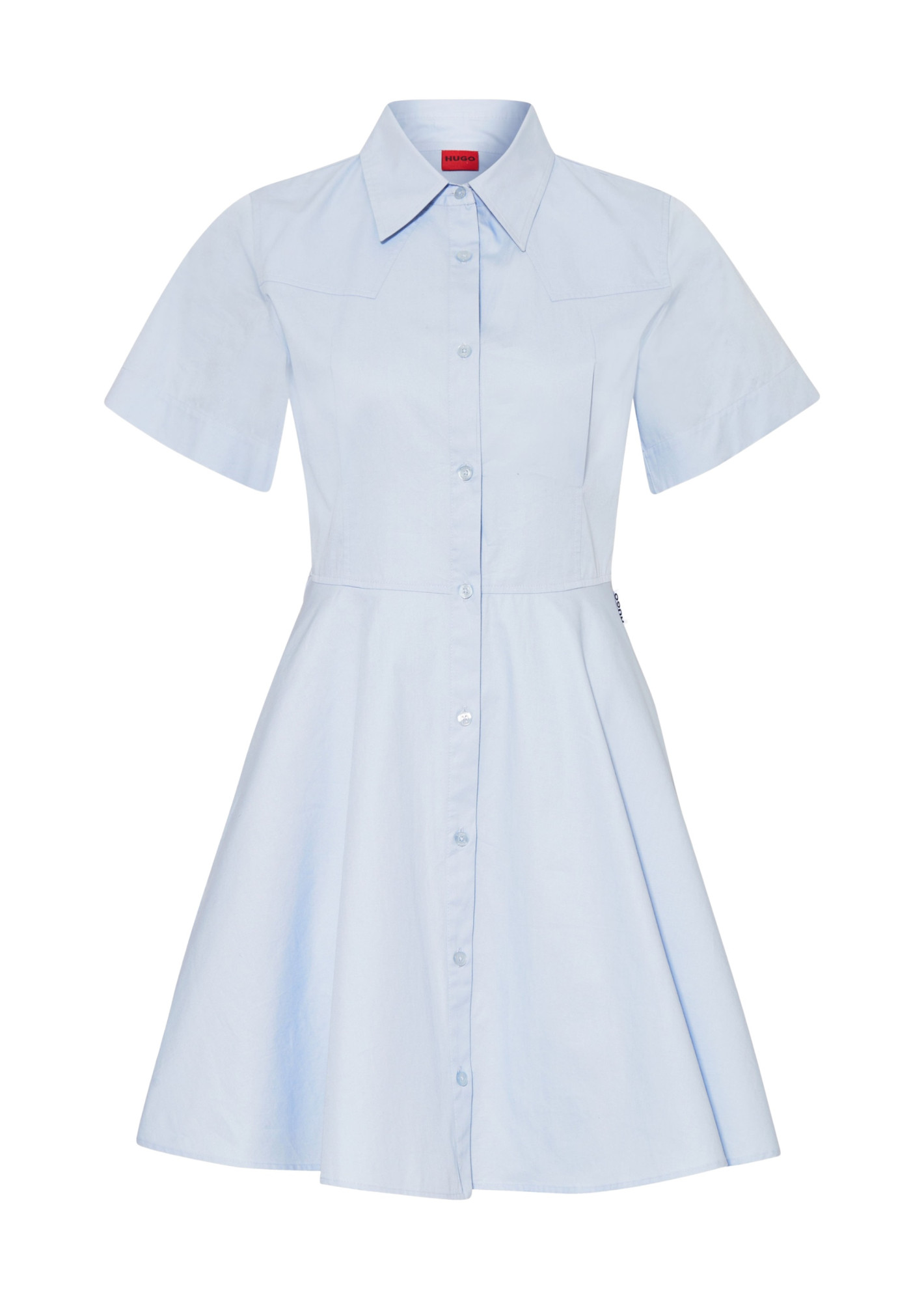 Сукня-сорочка HUGO в насиченому волошковому відтінку виконано з бавовняного попліну, що забезпечує комфорт і свободу рухів. Приталений силует підкреслює фігуру, а довжина міні додає динамічності образу. Ідеально поєднується з класичними човниками або лаконічними кедами. Підходить для створення невимушених, повсякденних Casual-образів, акцентуючи увагу на витонченості та сучасному стилі.