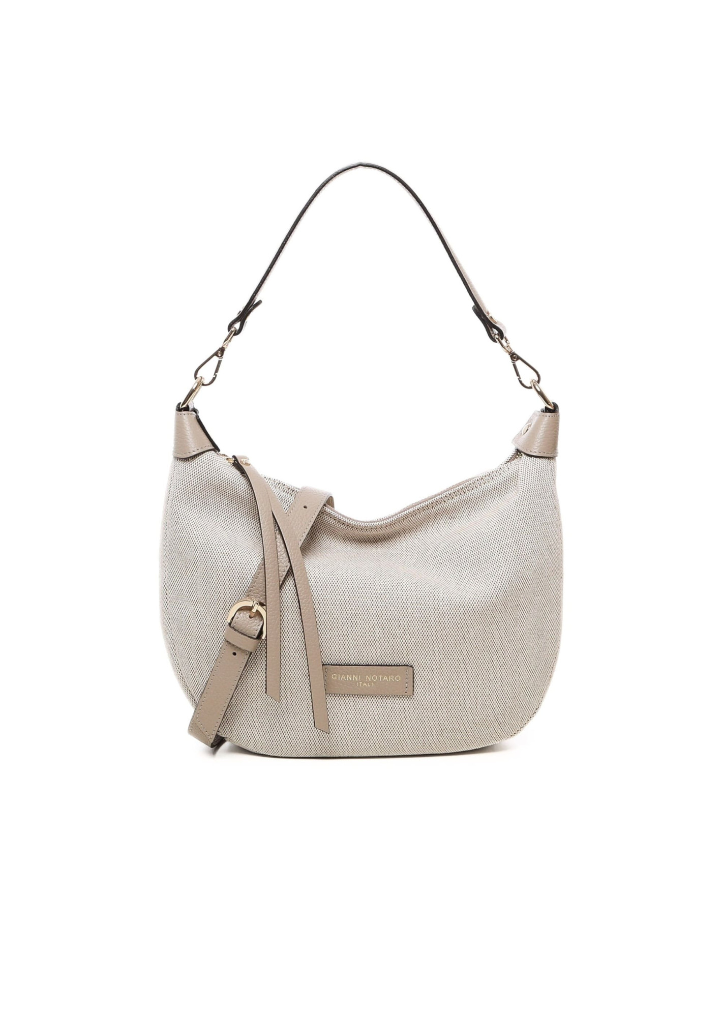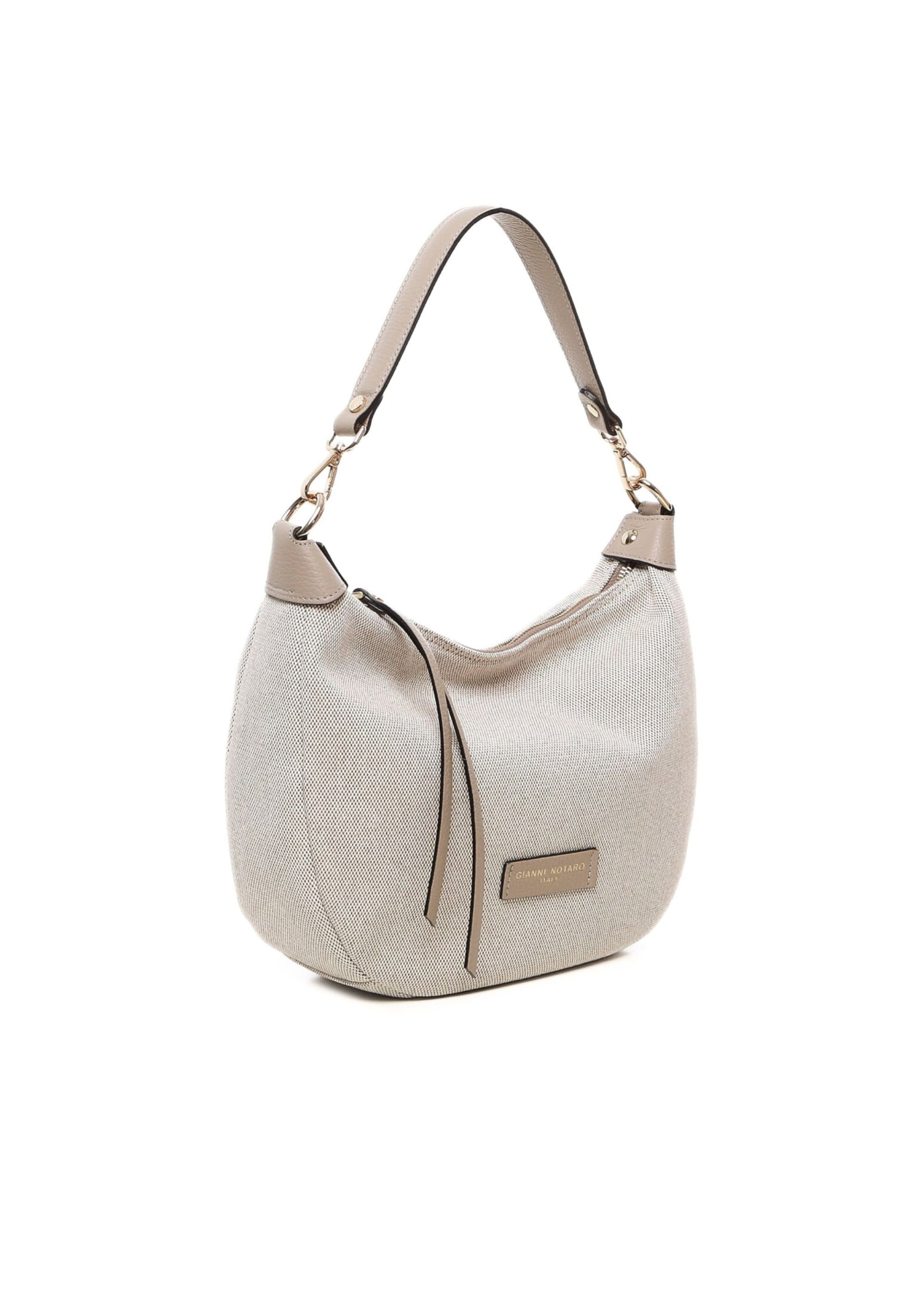 Сумка Penny від Gianni Notaro — вдале поєднання легкості, місткості та елегантного дизайну. Модель виготовлена з міцного канвасу з оздобленням із натуральної шкіри з текстурою «хаммерд» — ідеально пасує як до повсякденного стилю, так і до образів у стилі casual chic. Знімний регульований ремінець дозволяє носити сумку через плече або в руці. Всередині — нейлонова підкладка з логотипом бренду та зручна кишеня на блискавці. Золотиста фурнітура додає стриманої елегантності. Розміри 28×24×8 см — оптимальний формат на кожен день. Вироблено в Італії.