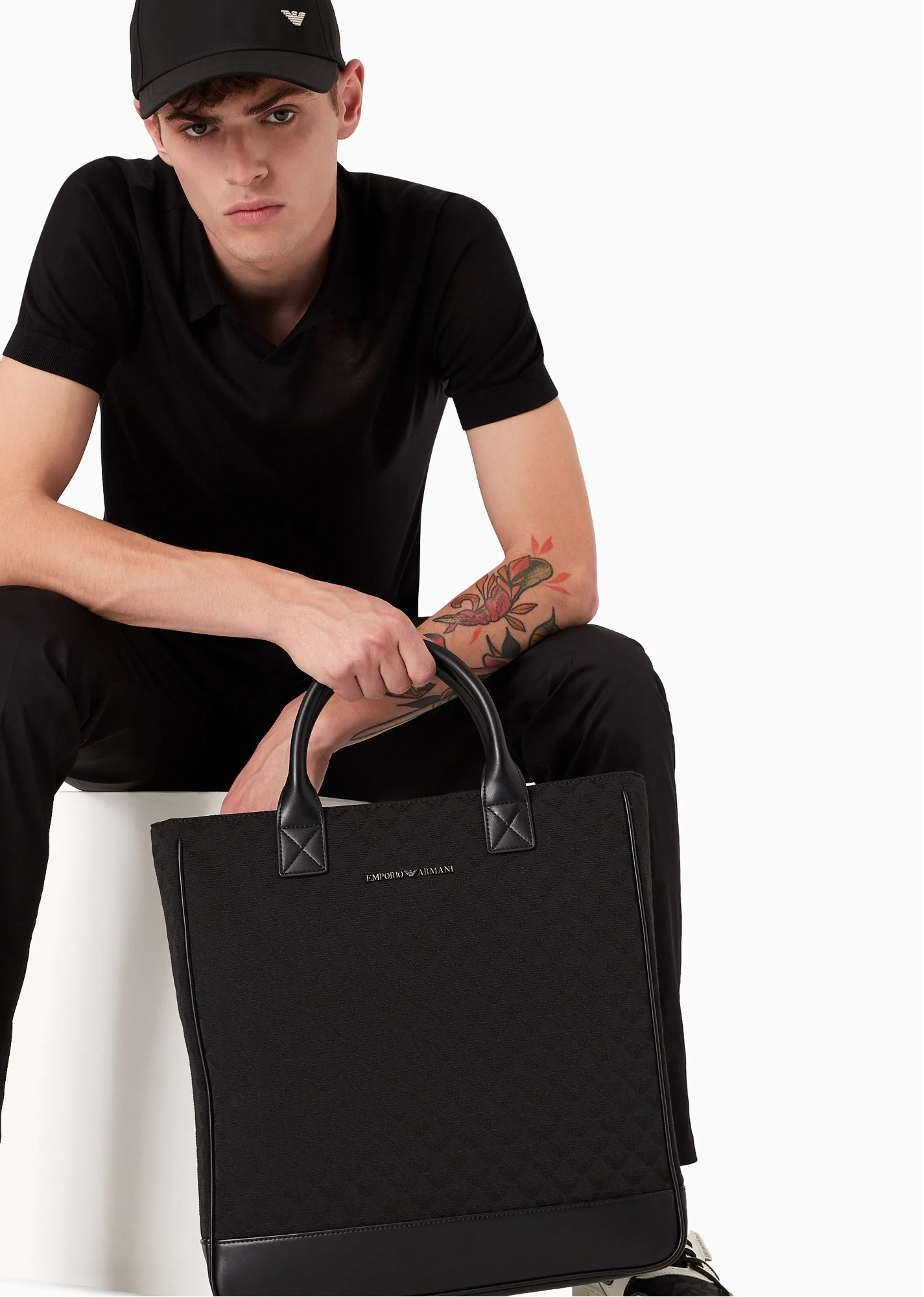 Практична та сучасна сумка з жакардовим принтом, із зображенням культового орла по всій поверхні створює характерну, впізнавану текстуру. Має ремінець, що знімається.