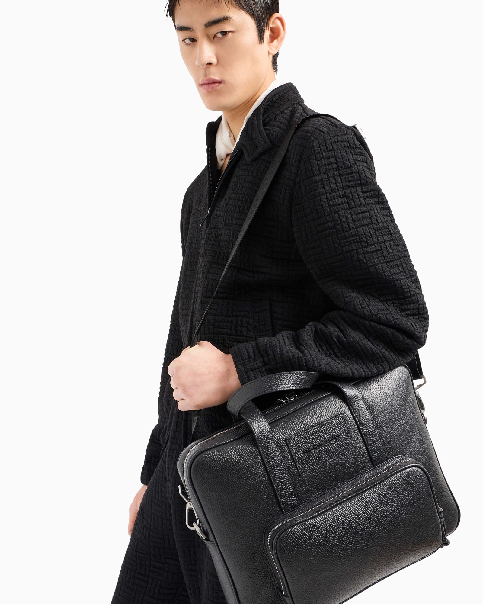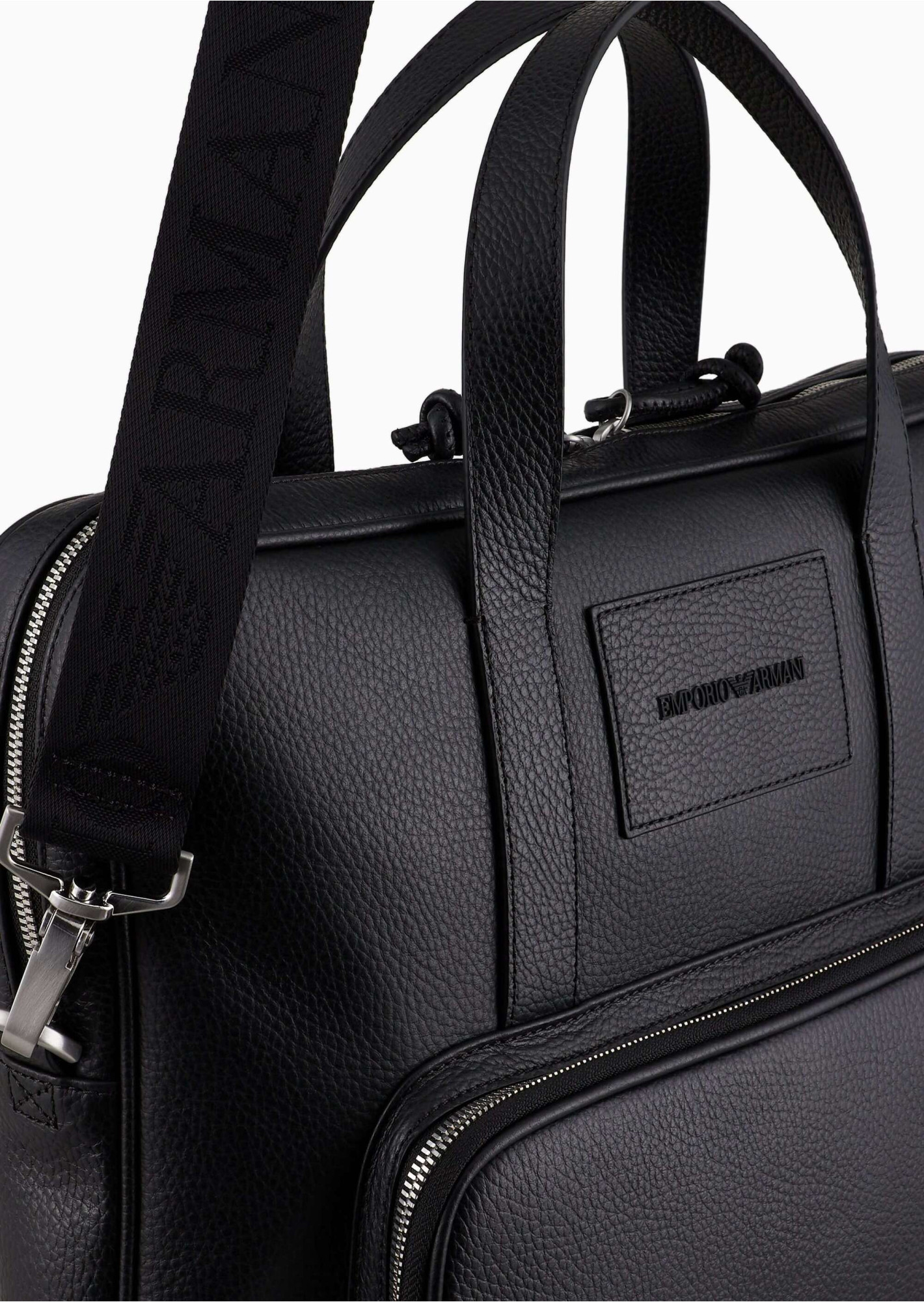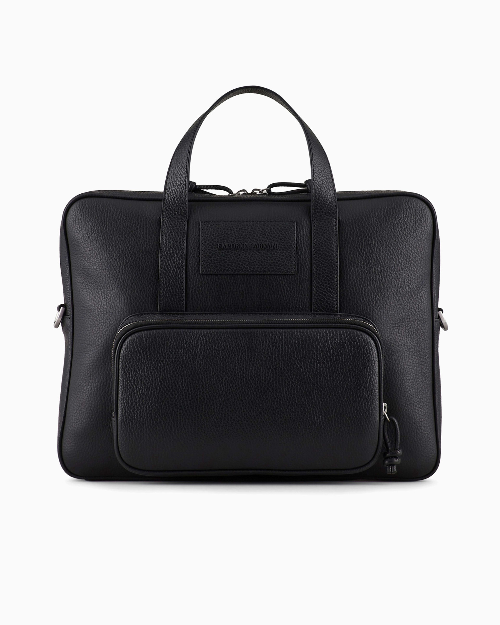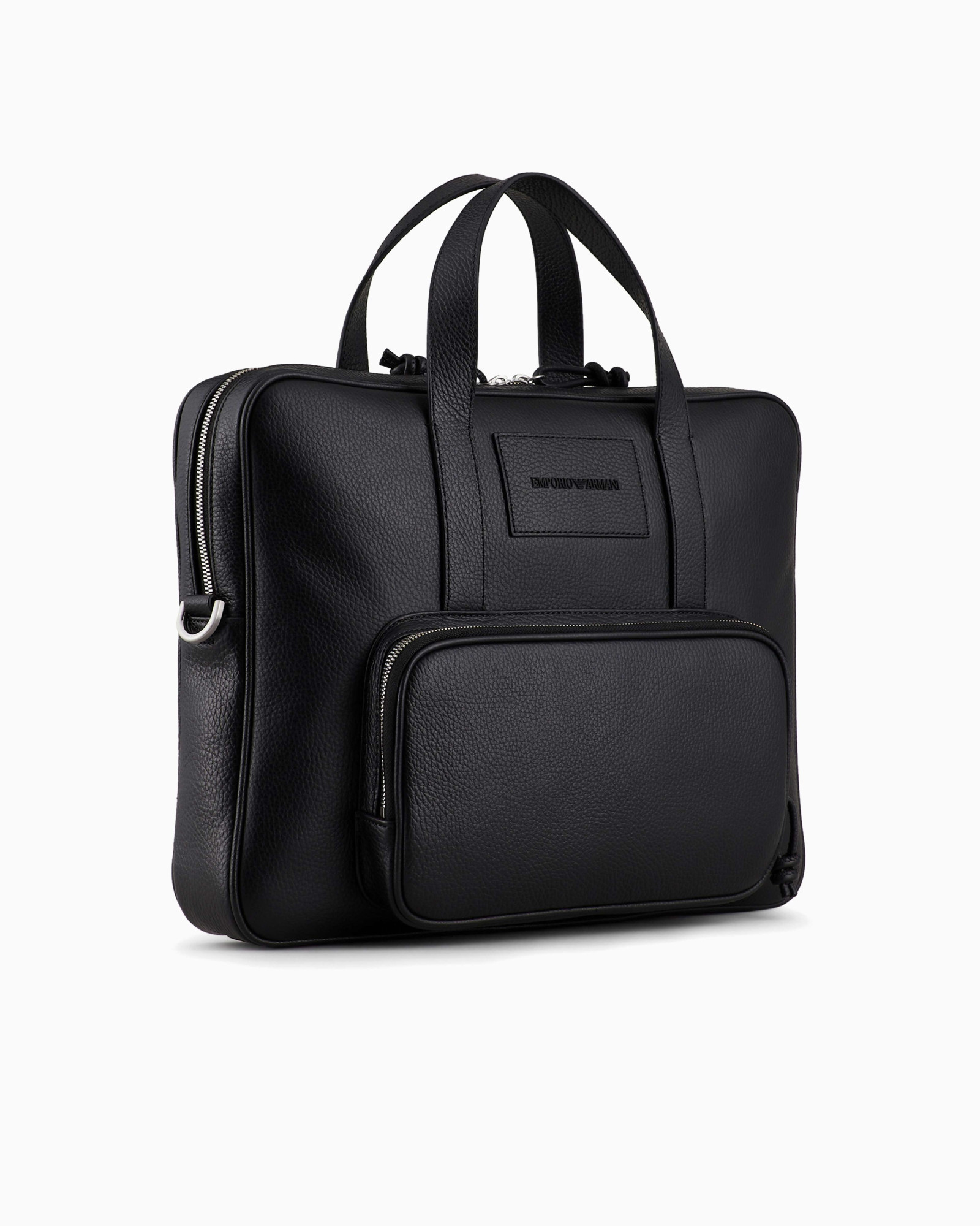 Діловий портфель із застібкою-блискавкою, зовнішньою кишенею та регульованим знімним плечовим ременем з логотипом. Виготовлений із мякої шкіри. Вишуканий, універсальний аксесуар характеризується правильними лініями та монохромною шкіряною нашивкою з 3D-логотипом. Цей аксесуар відноситься до капсульної колекції Emporio Armani Essentials, яка відрізняється продуманими формами та відповідає вимогам будь-якого сезону.
