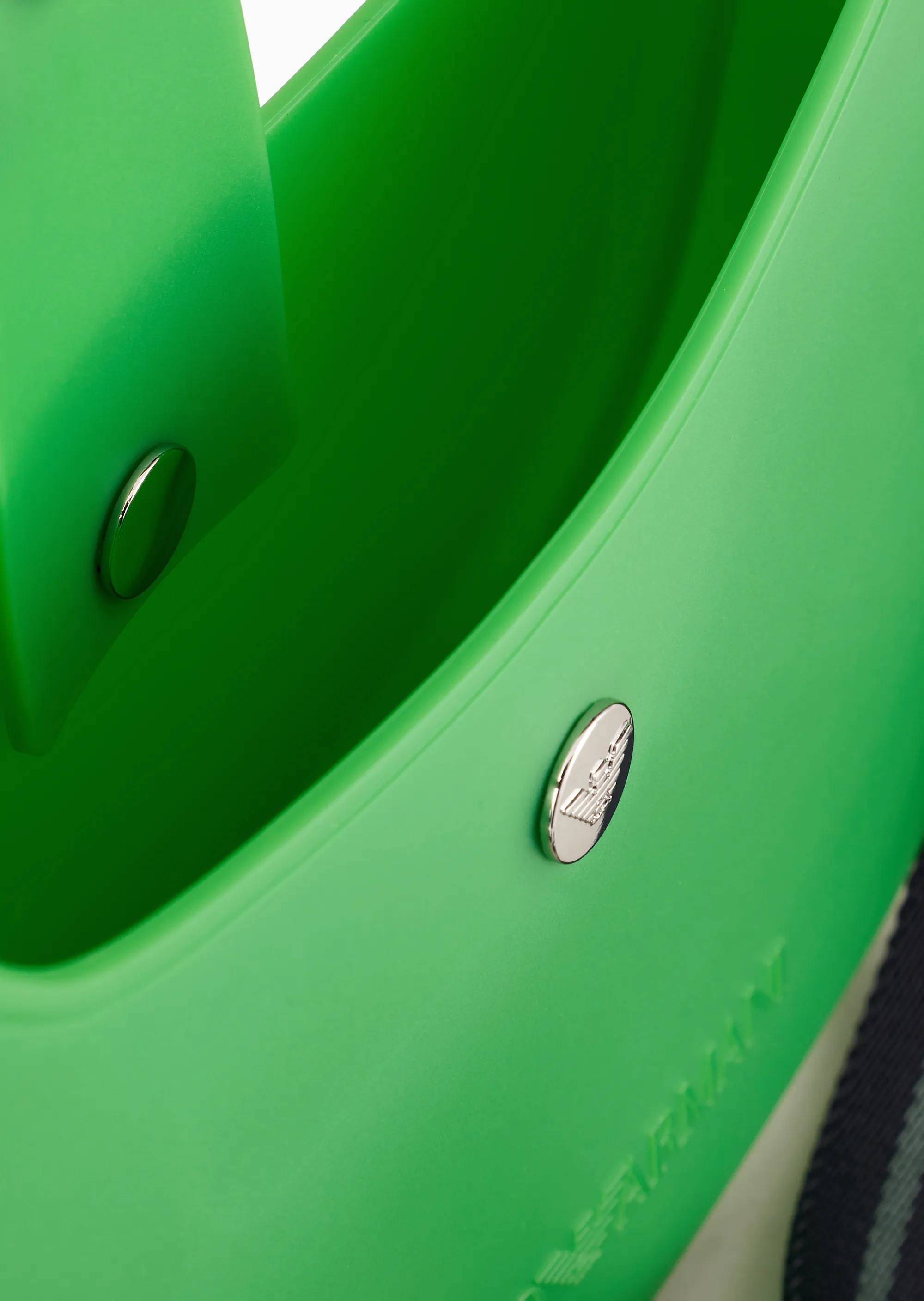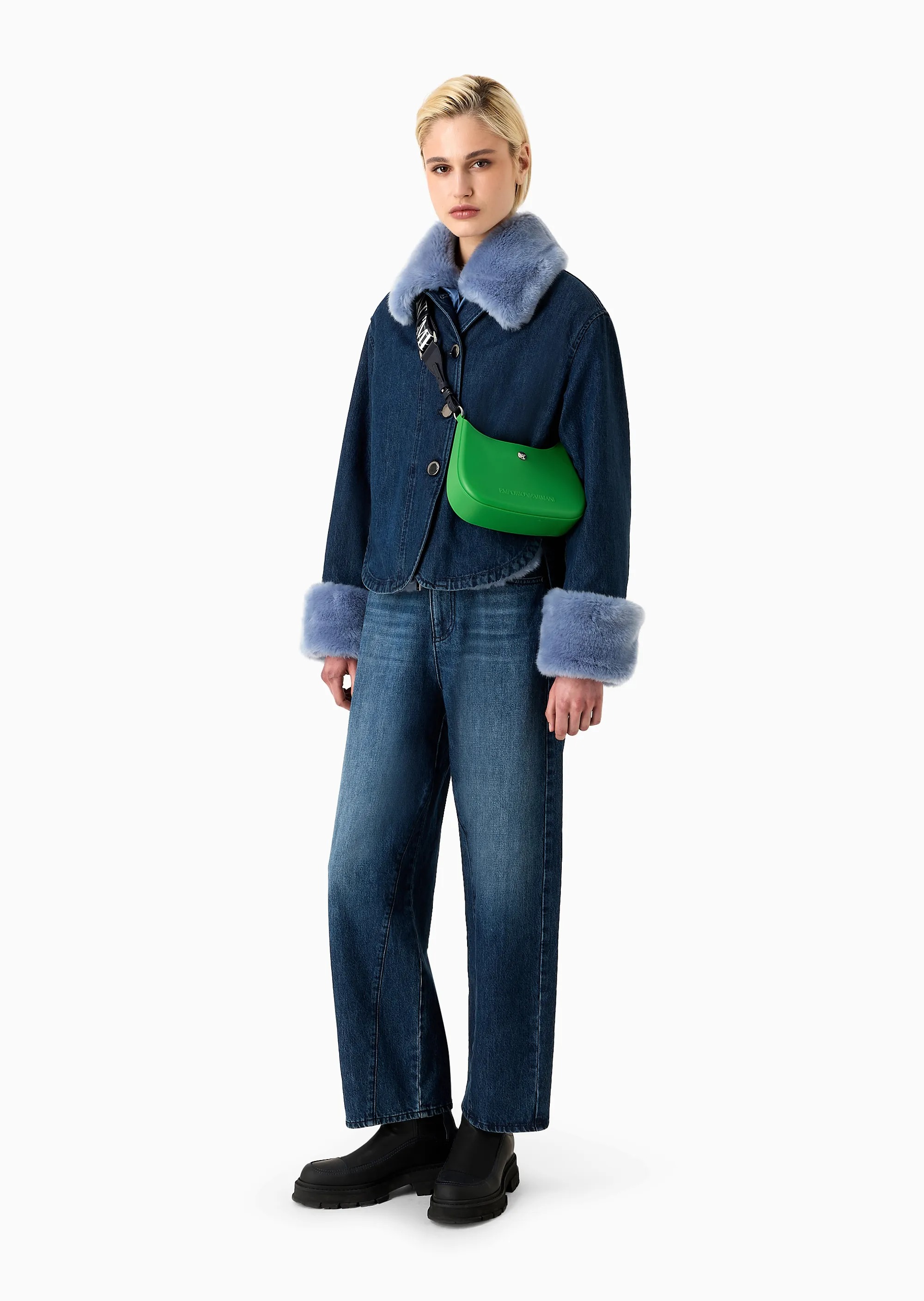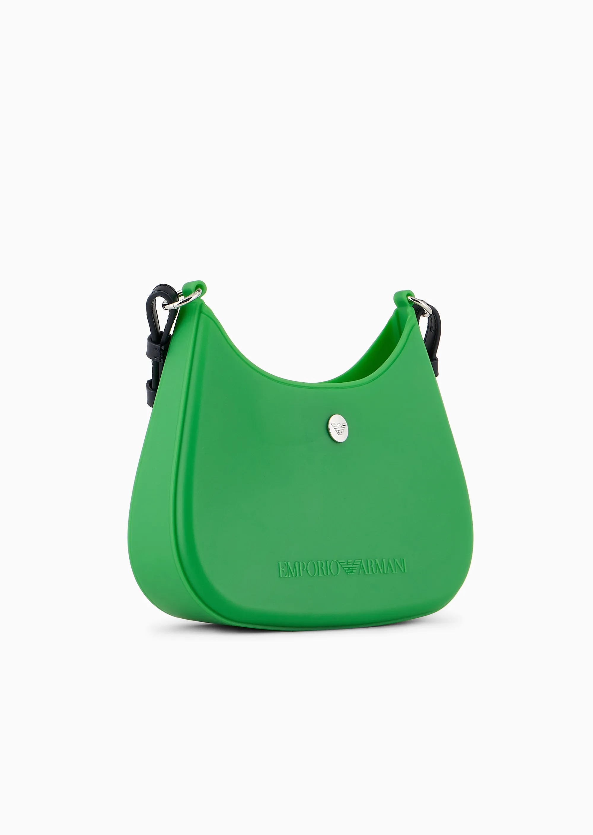 Міні-сумка, виконана в яскравих кольорах із сучасною атмосферою. Виразності додає плечовий ремінь із логотипом із переробленої технічної тканини. Магнітна застібка.