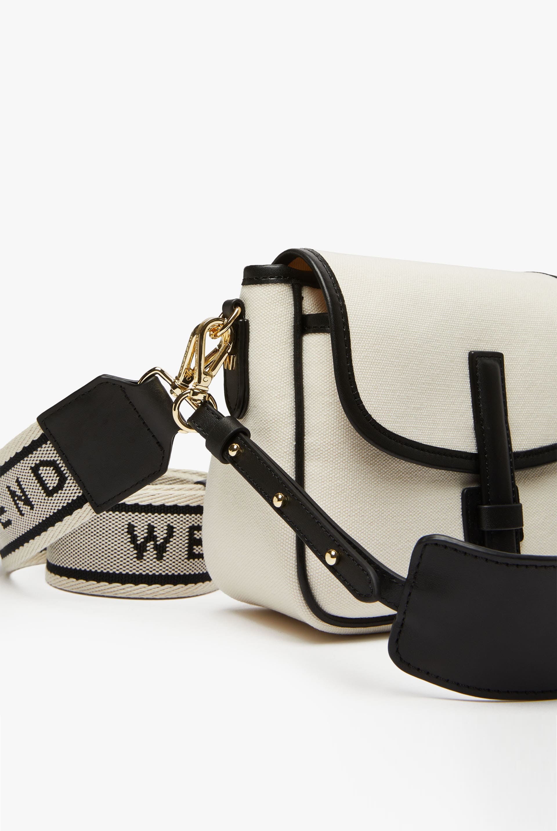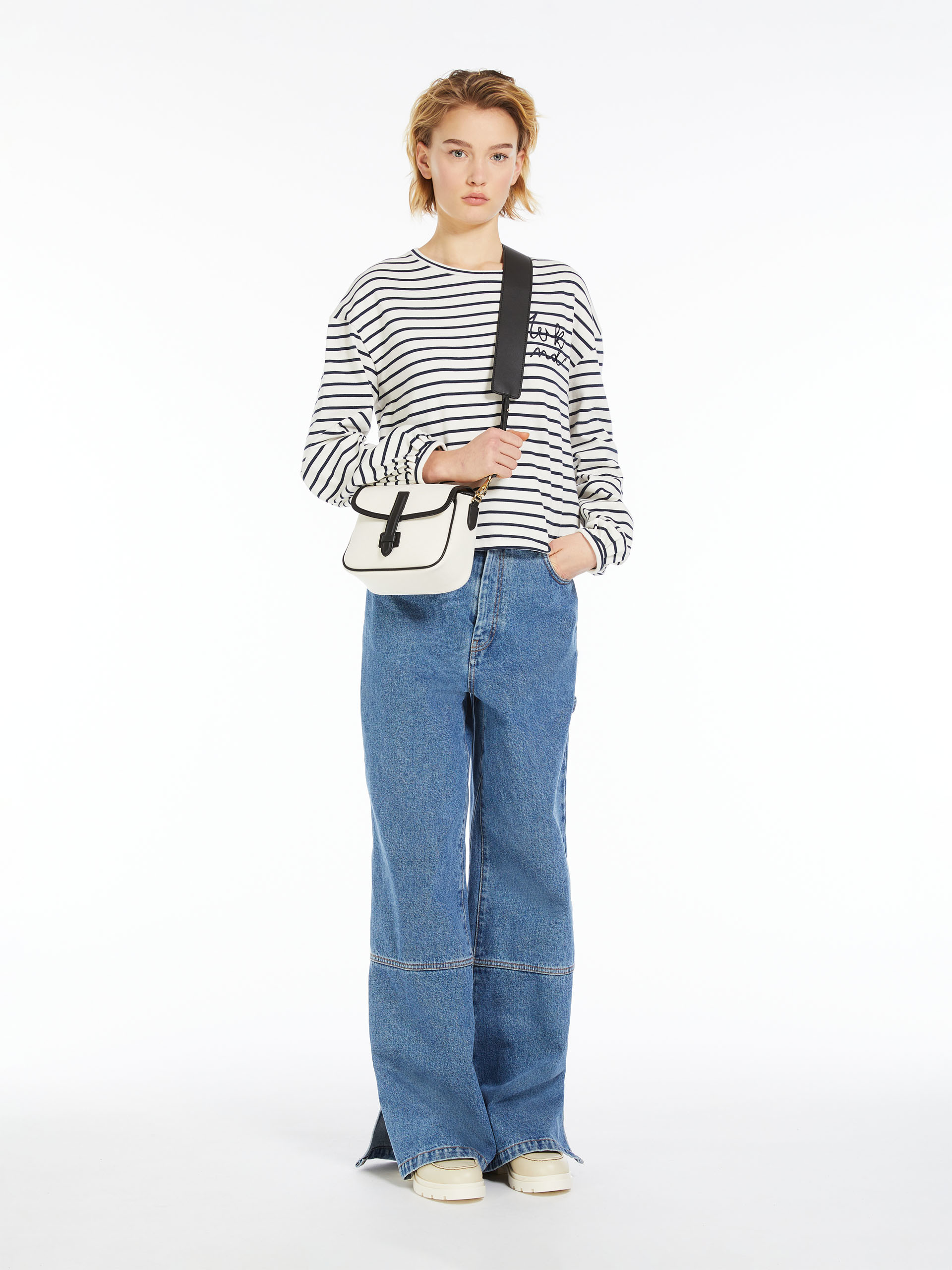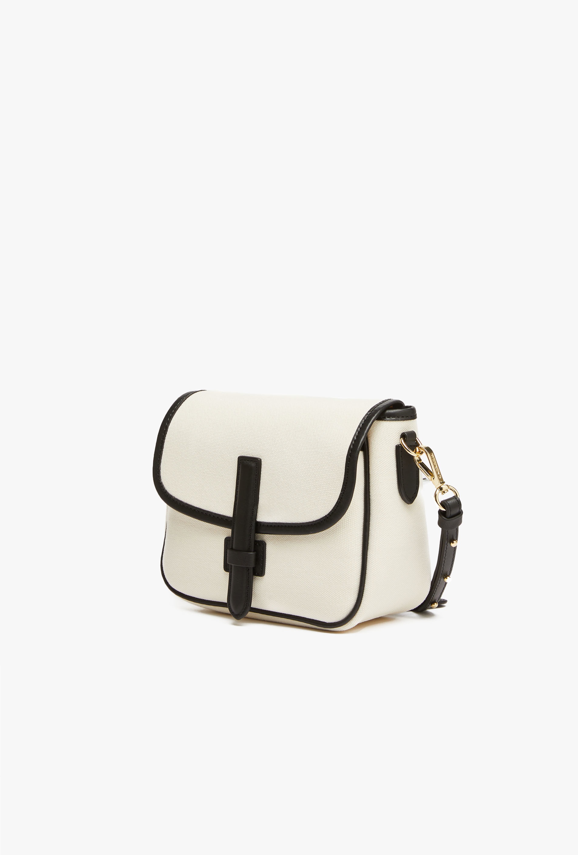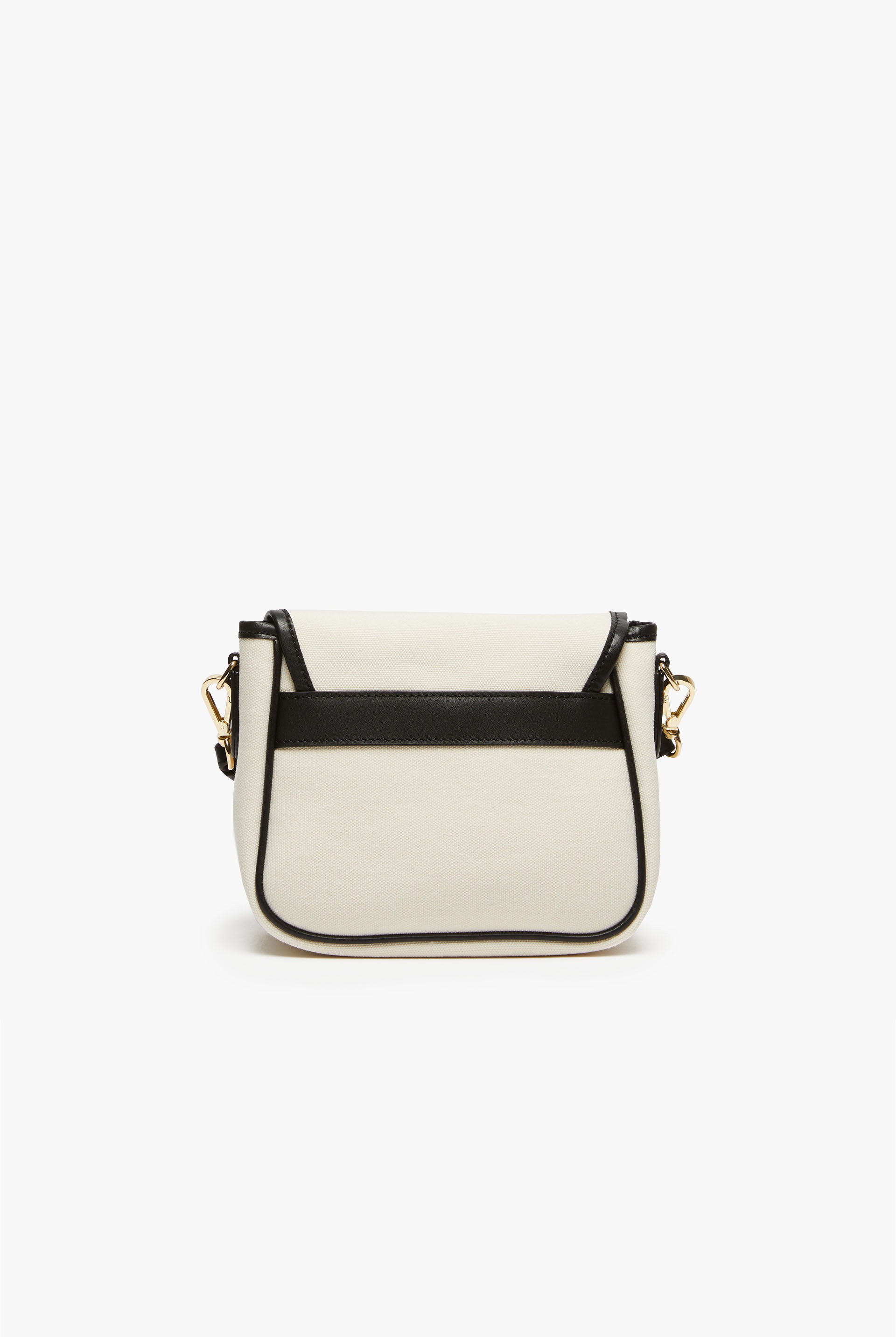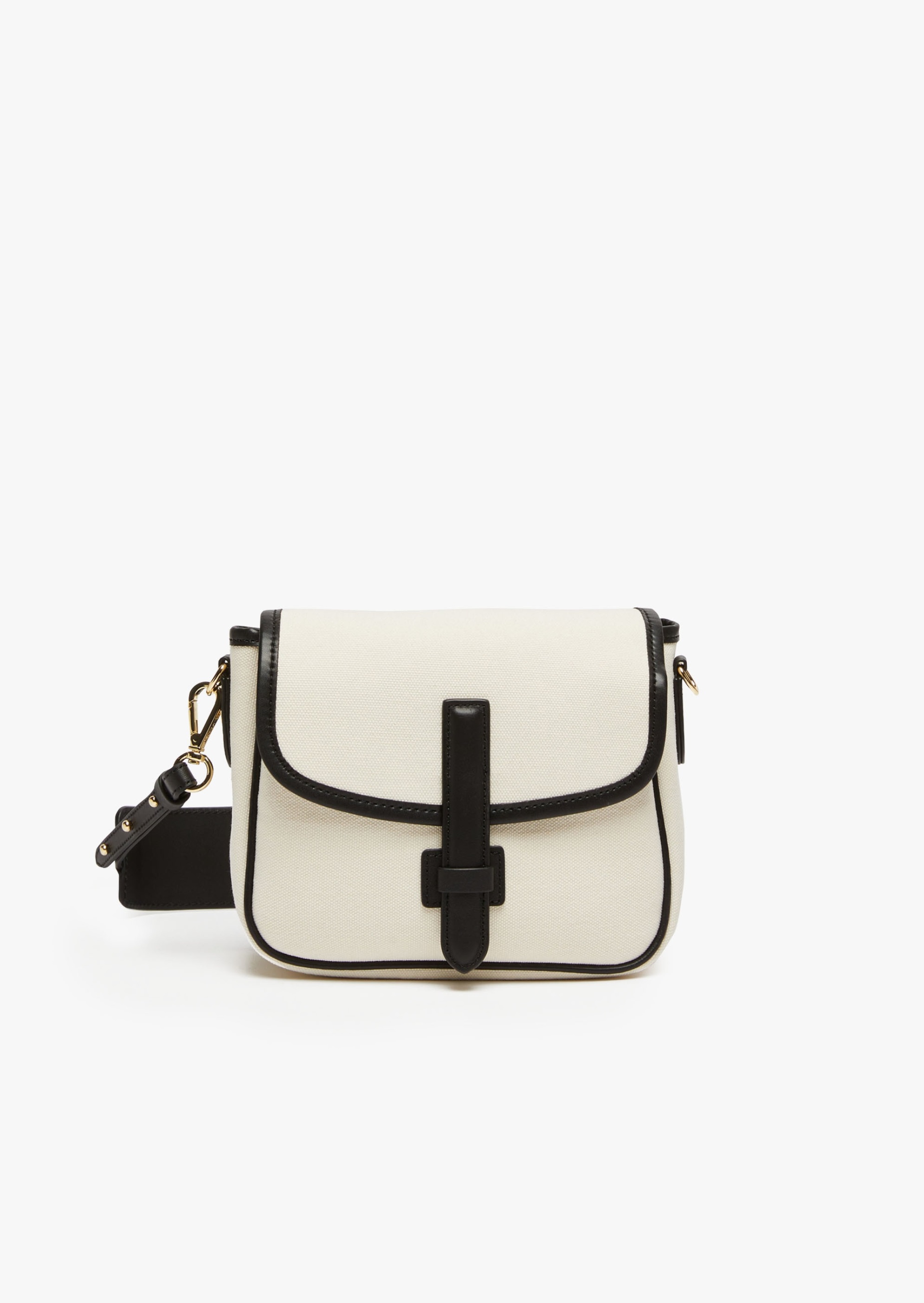 Невелика сумка через плече з лляного та бавовняного полотна, покритого смолою. Дизайн має велике центральне відділення та невелику передню кишеню, та підкреслюється вишуканими шкіряними деталями. Подвійний плечовий ремінь зі шкіри та лямки з жаккардовим написом Max Mara Weekend дозволяє носити його через плече. Внутрішня кишеня для зберігання із закритою застібкою на кнопки. Збоку прикрашена металевою деталлю мікроW. Застібка на клапан з ремінцем і передньою петлею.