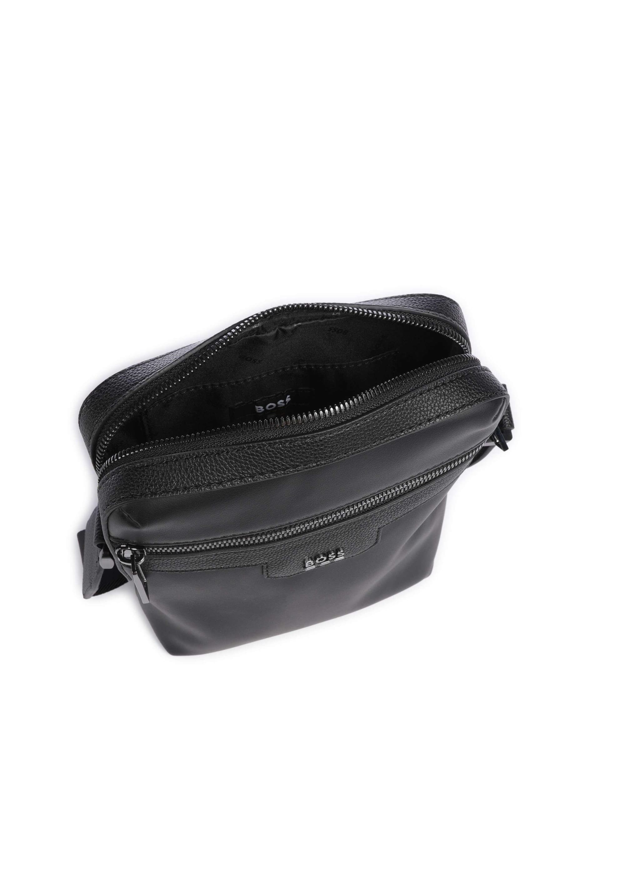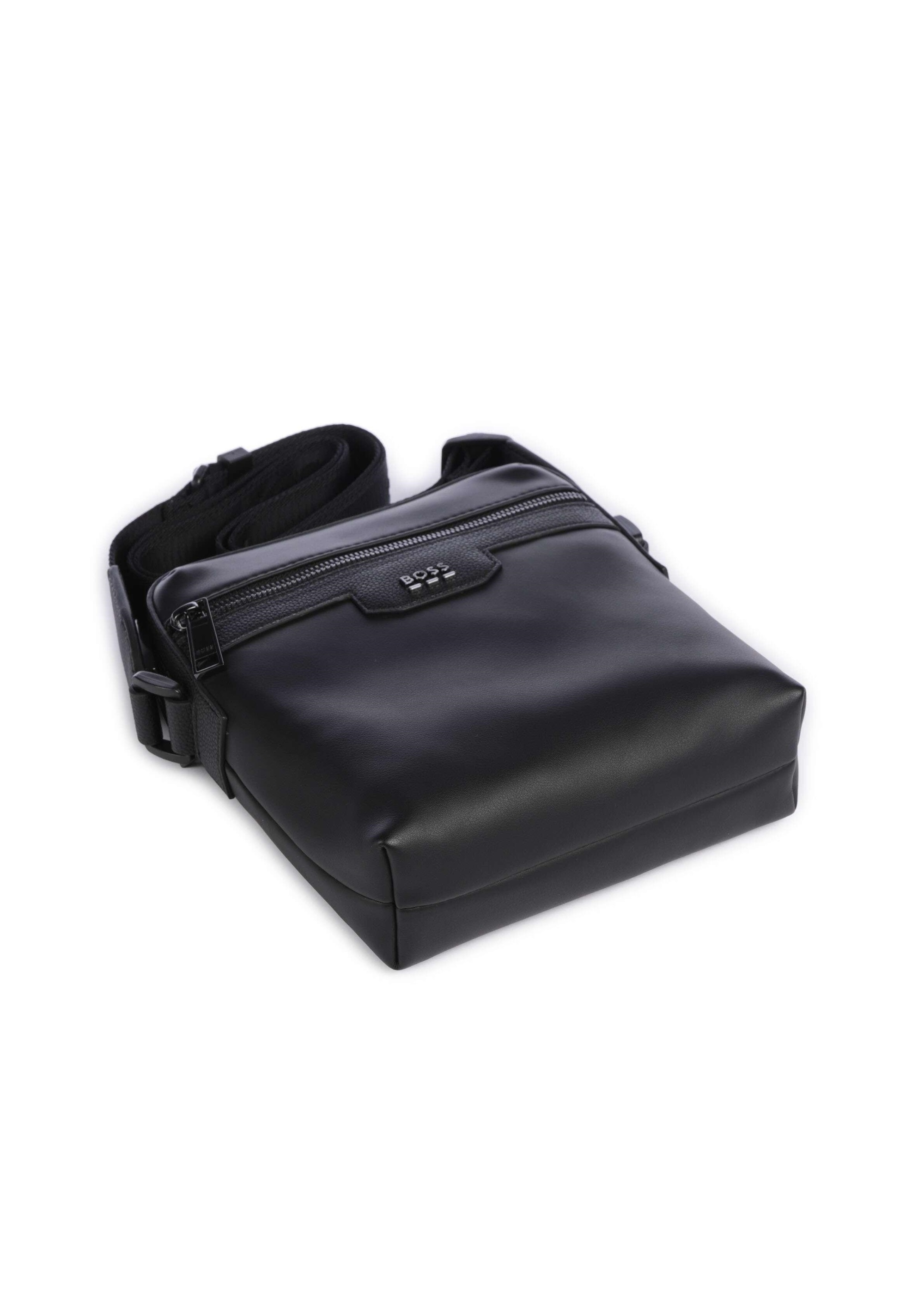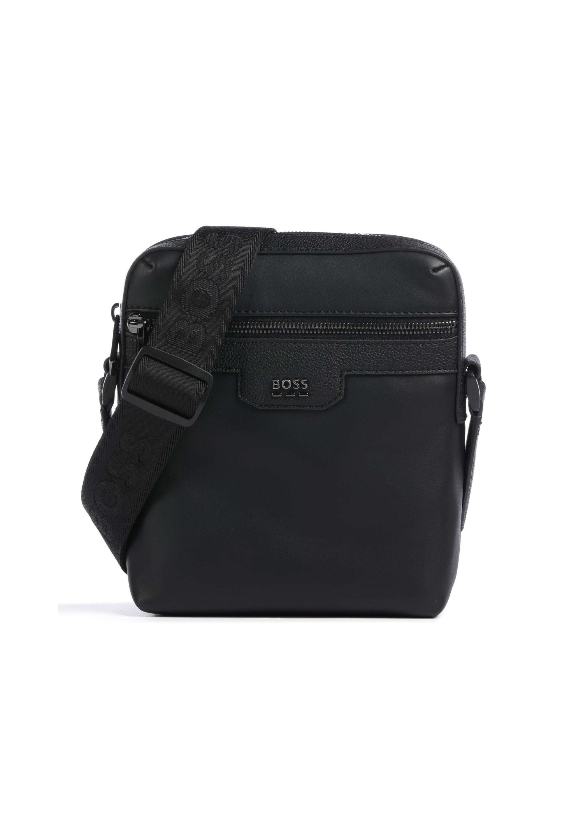 Маленька сумка через плече. Оснащена регульованим плечовим ременем, прикрашена великим логотипом BOSS і просторою передньою кишенею на блискавці.