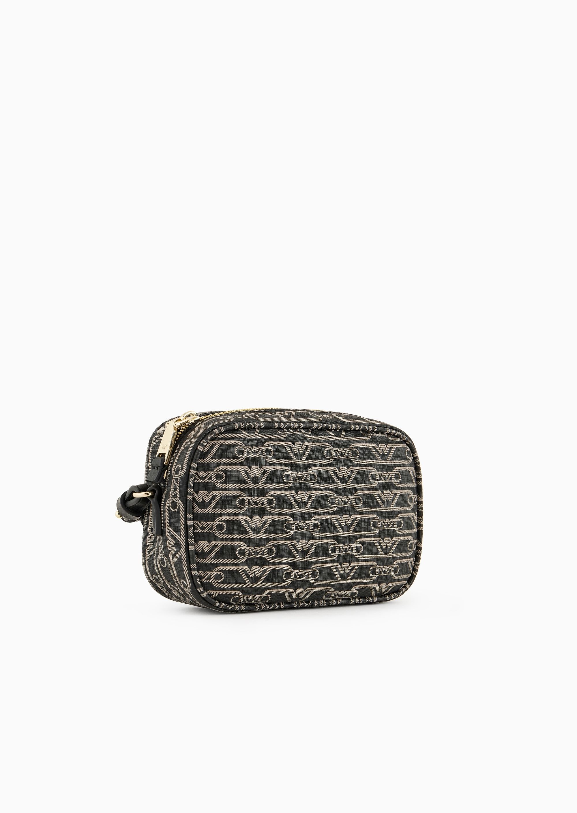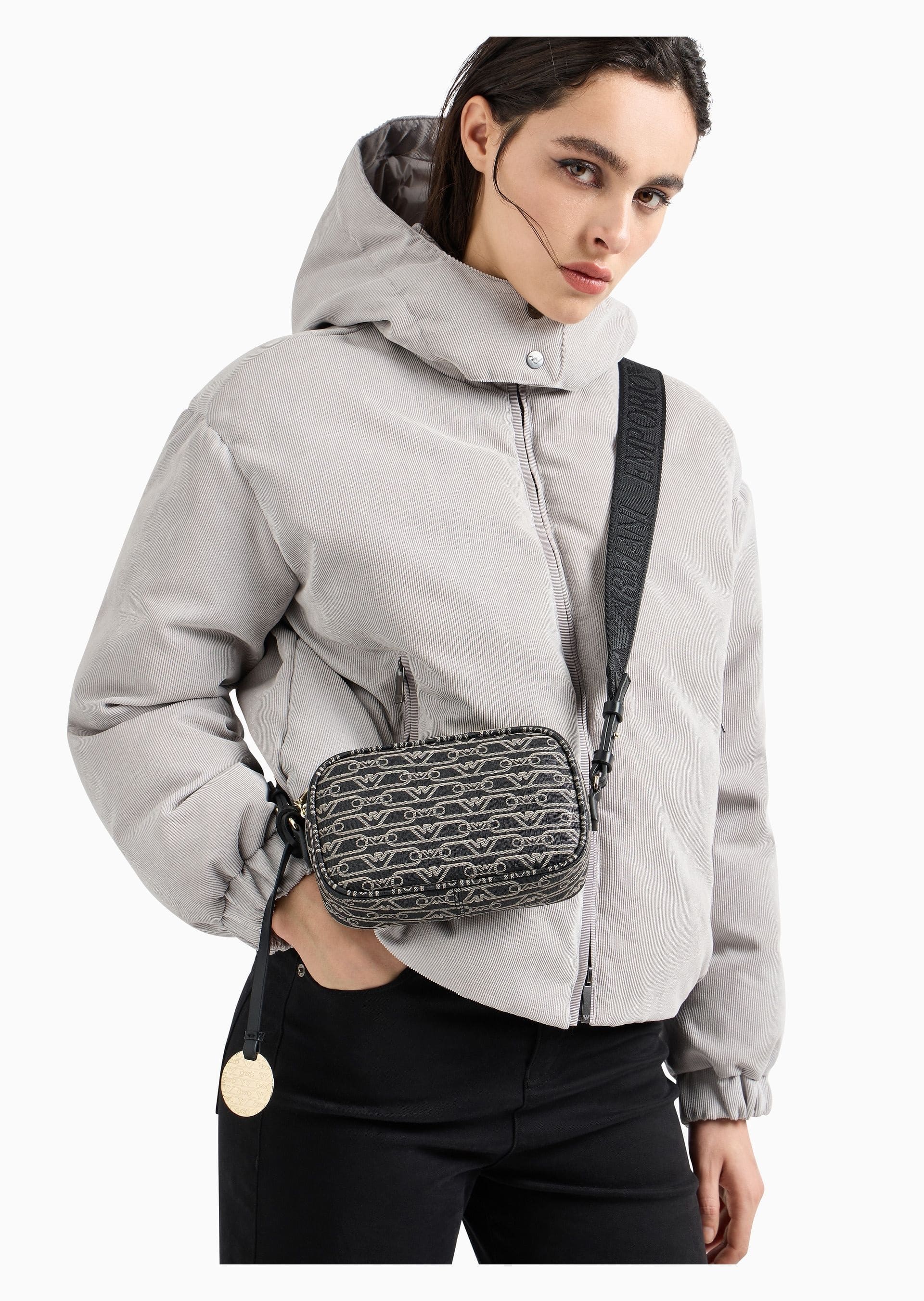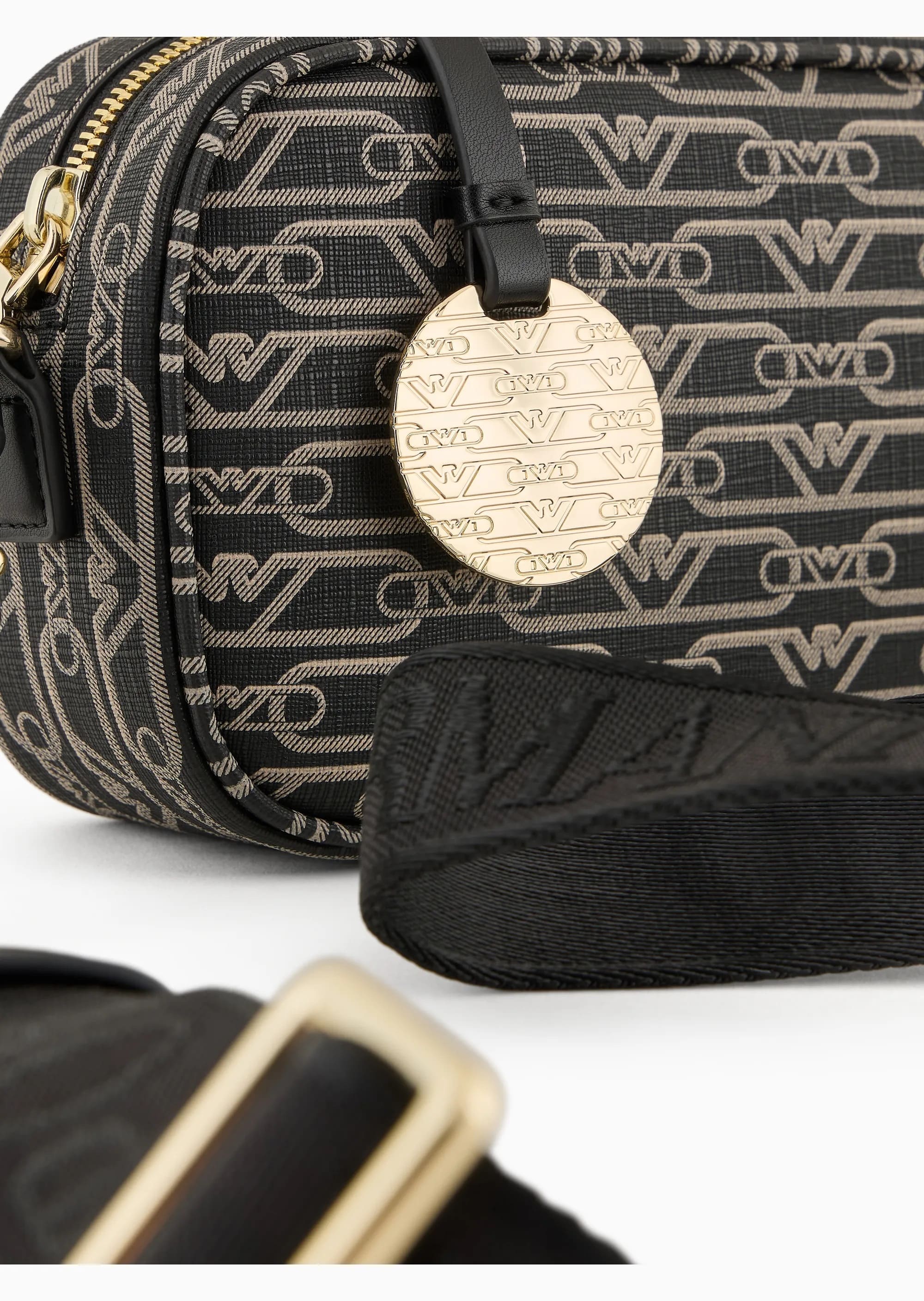 Міні-сумка на плече з практичним ременем, що регулюється, з логотипом Emporio Armani, і підвіскою з логотипом. Серія аксесуарів із щільним монограмним принтом по всій поверхні доступна у функціональних стилях, розроблених для жінки Emporio Armani, яка завжди в русі.
