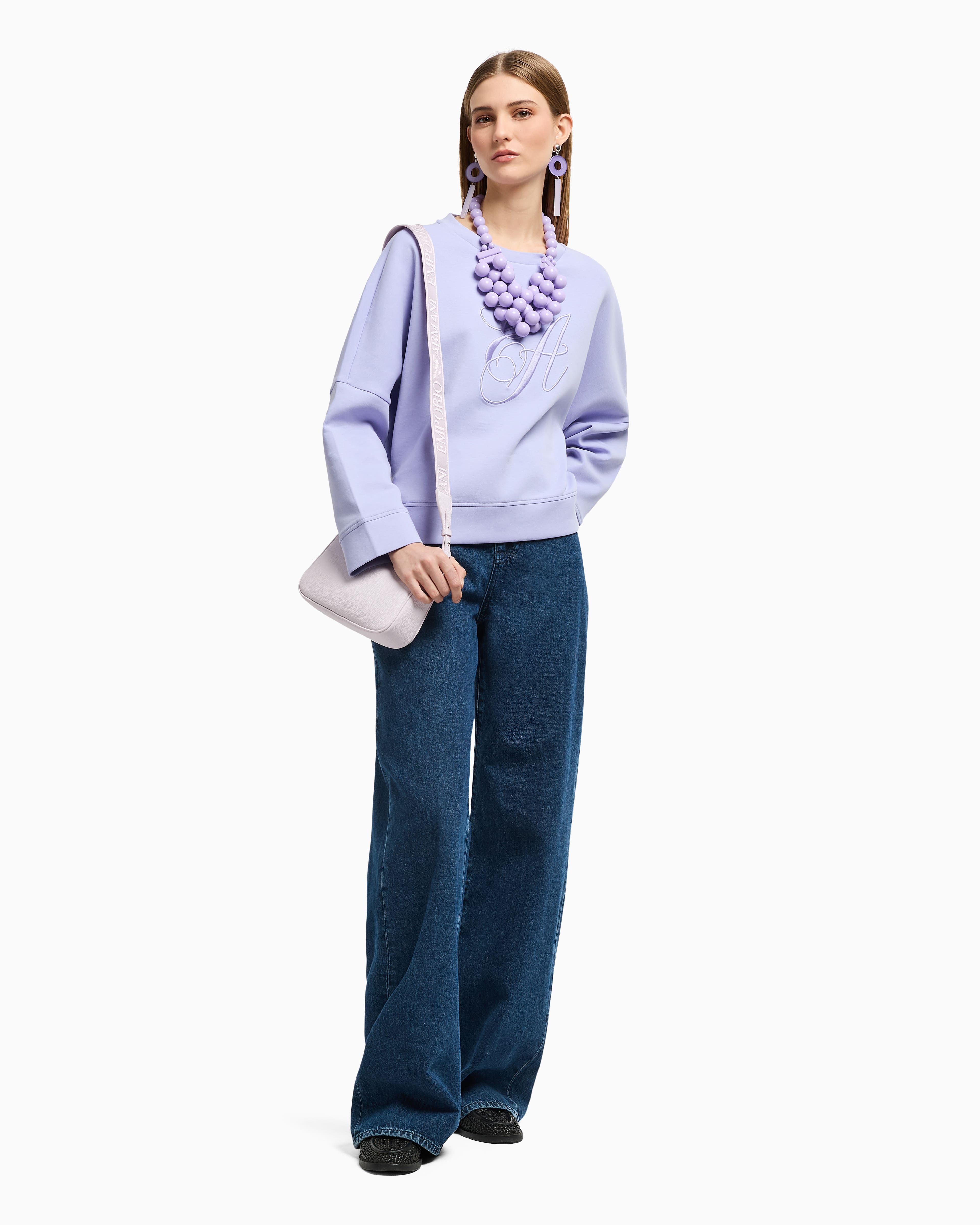 Сумка-багет від Emporio Armani. Вишуканий аксесуар з практичним регульованим ременем. Модель прикрашена логотипом, нанесеним шовкографією. Комфортна сумка через плече дозволить мати під рукою все необхідне, не жертвуючи стильним дизайном.