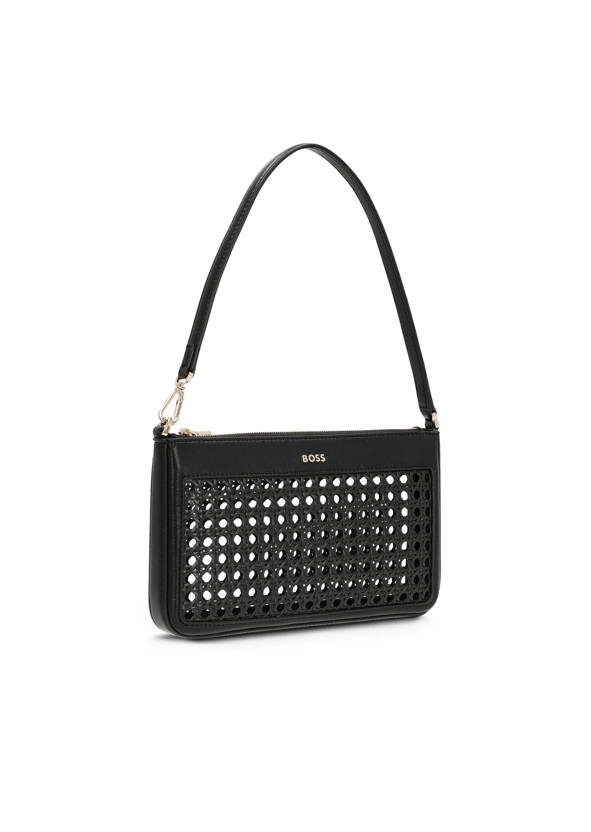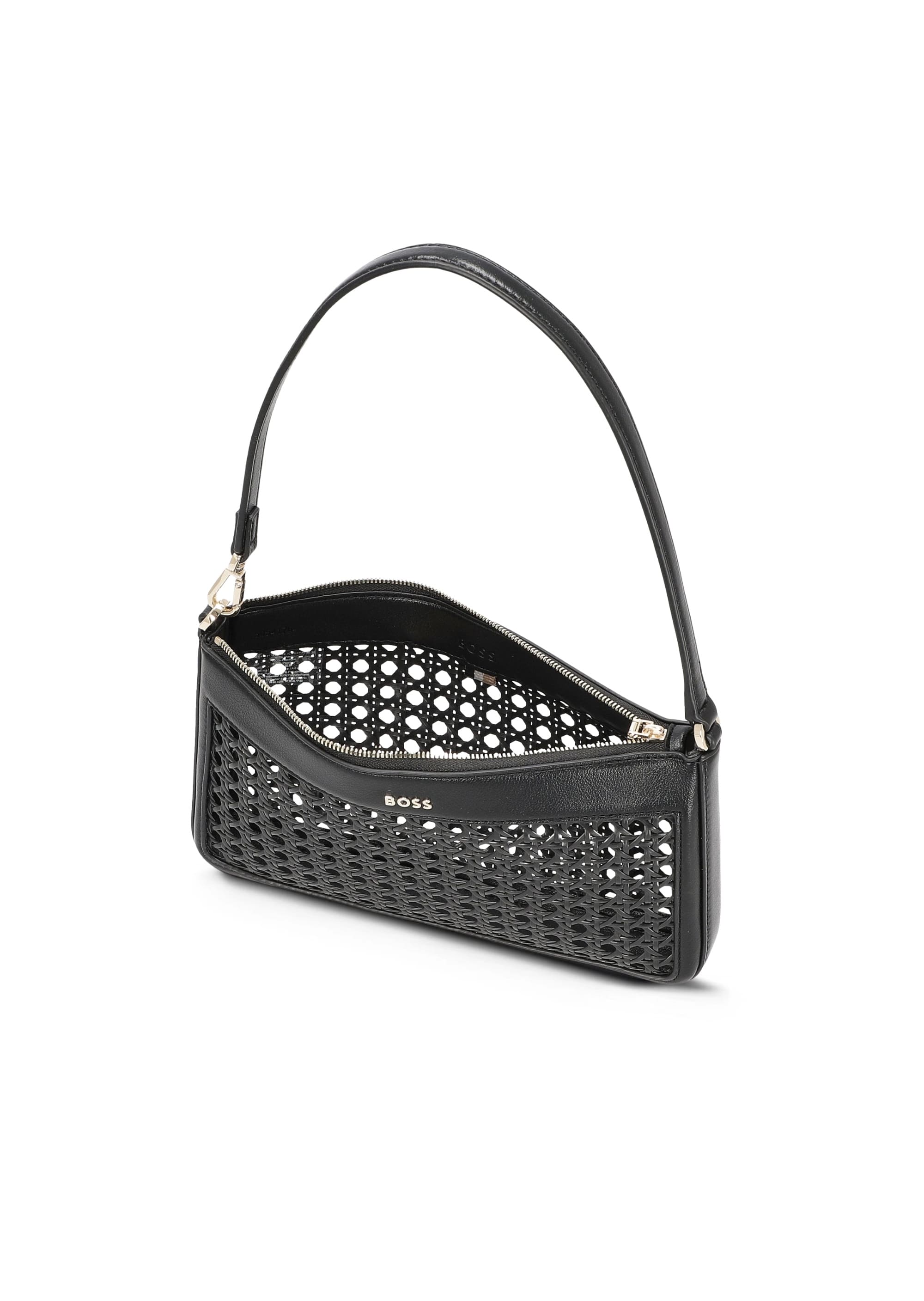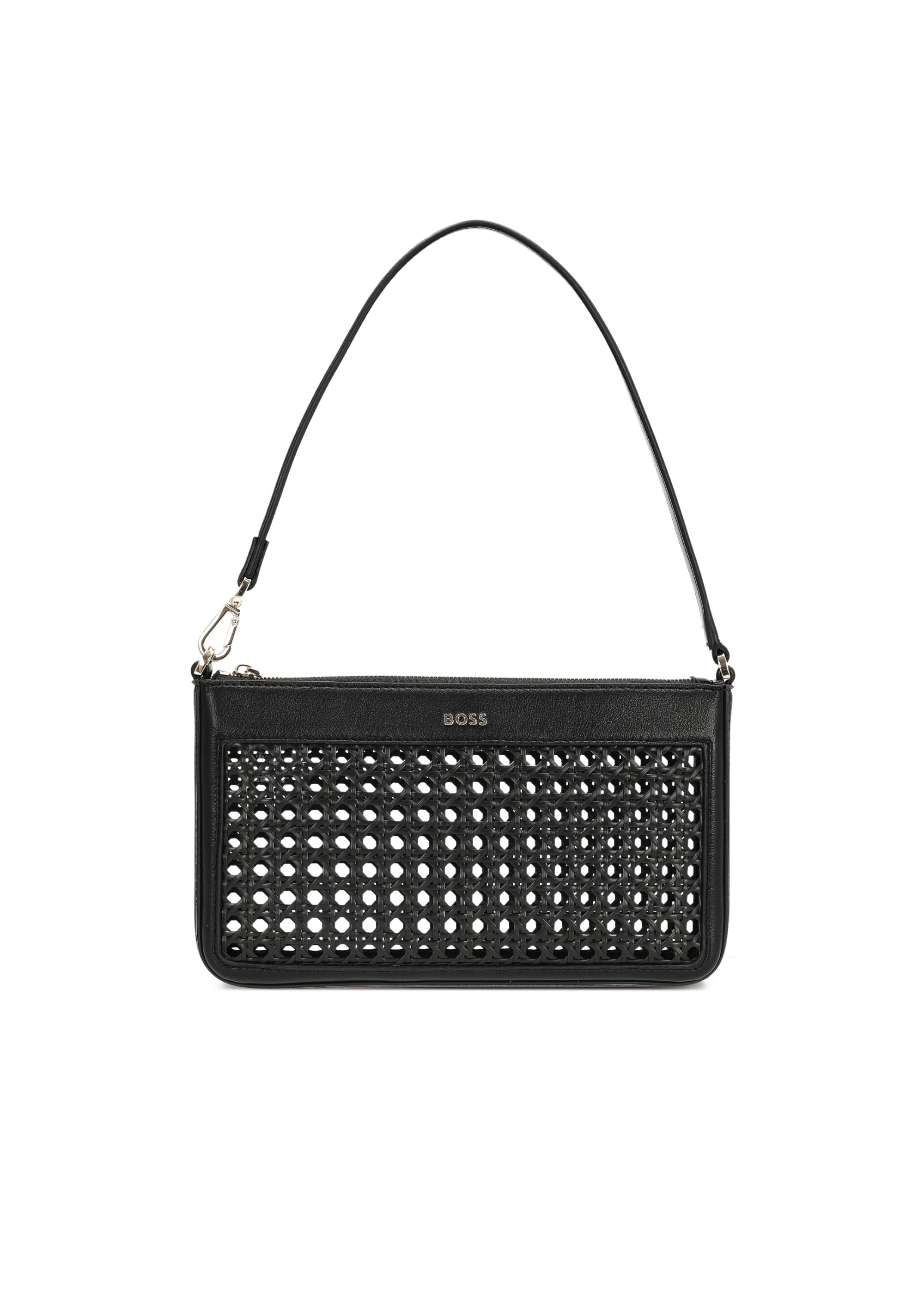 Сумка BOSS чорного кольору зі штучної шкіри поєднує лаконічний дизайн та практичність. Гладка матова поверхня доповнена акуратною строчкою та металевими деталями, що надають виробу сучасний характер. Основне відділення закривається на блискавку, всередині розташовані кишені для зручного зберігання дрібниць. Логотип бренду на передній панелі підкреслює статус аксесуару. Універсальний чорний відтінок робить сумку відповідним доповненням до ділових та повсякденних образів, поєднуючи функціональність та стиль.